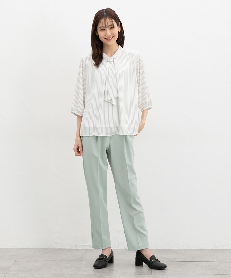 ジャケットにも合うサイズ感で、テーパードパンツやフレアスカートと合わせた通勤きれいめスタイルはもちろん、入学・卒業式などのセレモニーシーンにも活躍。