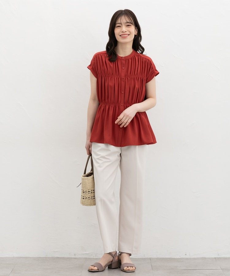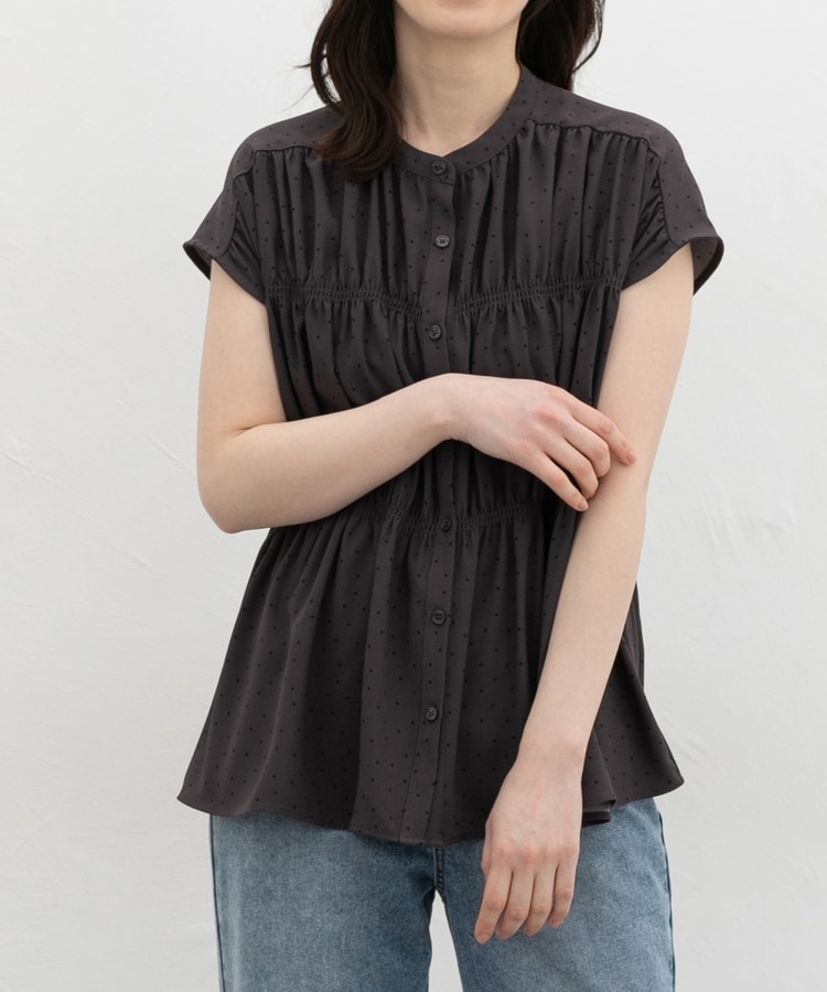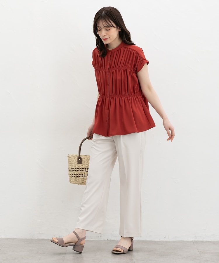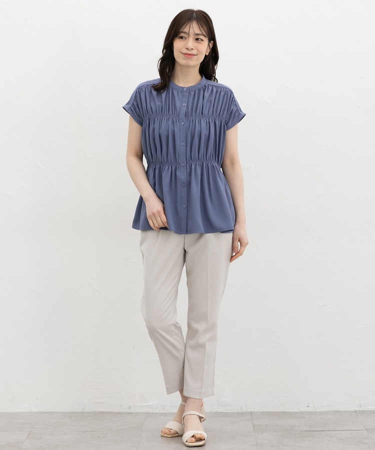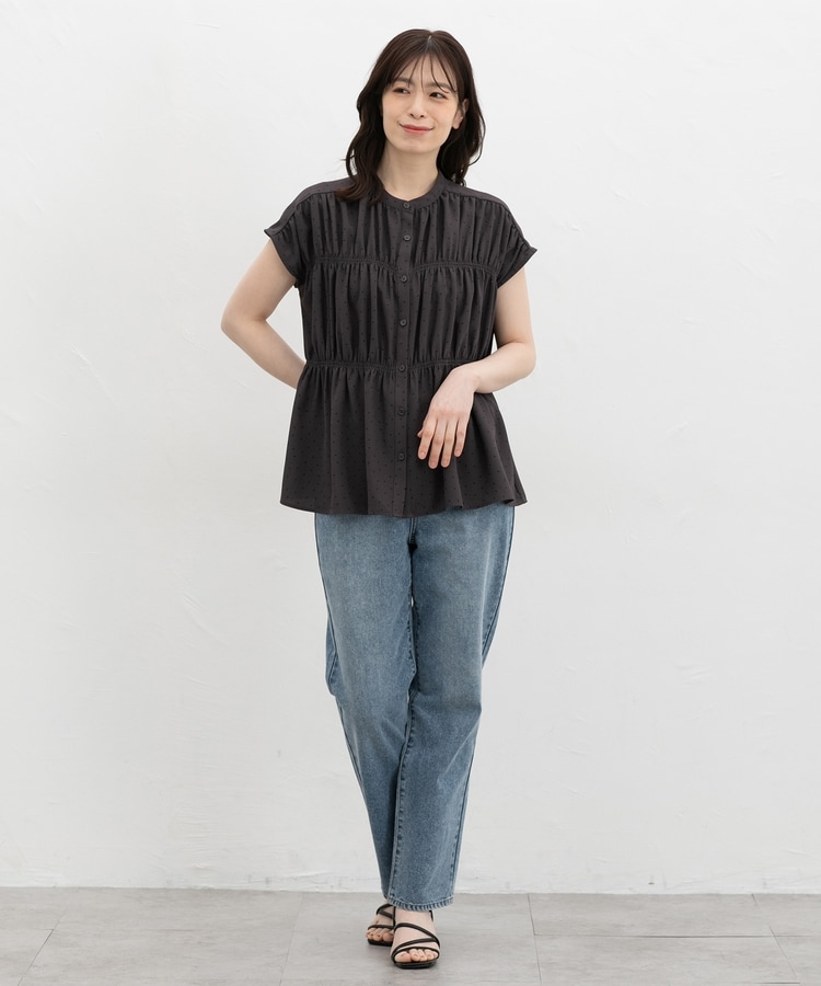 ブラウスとしてはもちろん、ボタンを開けてラフに羽織るのも◎