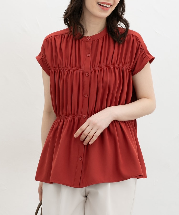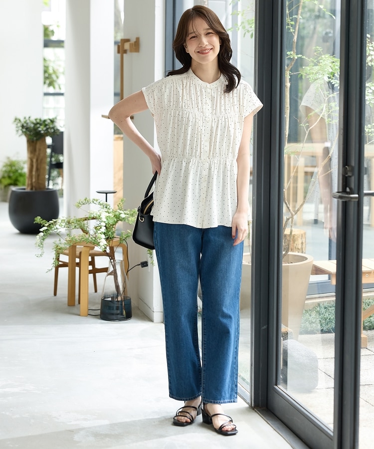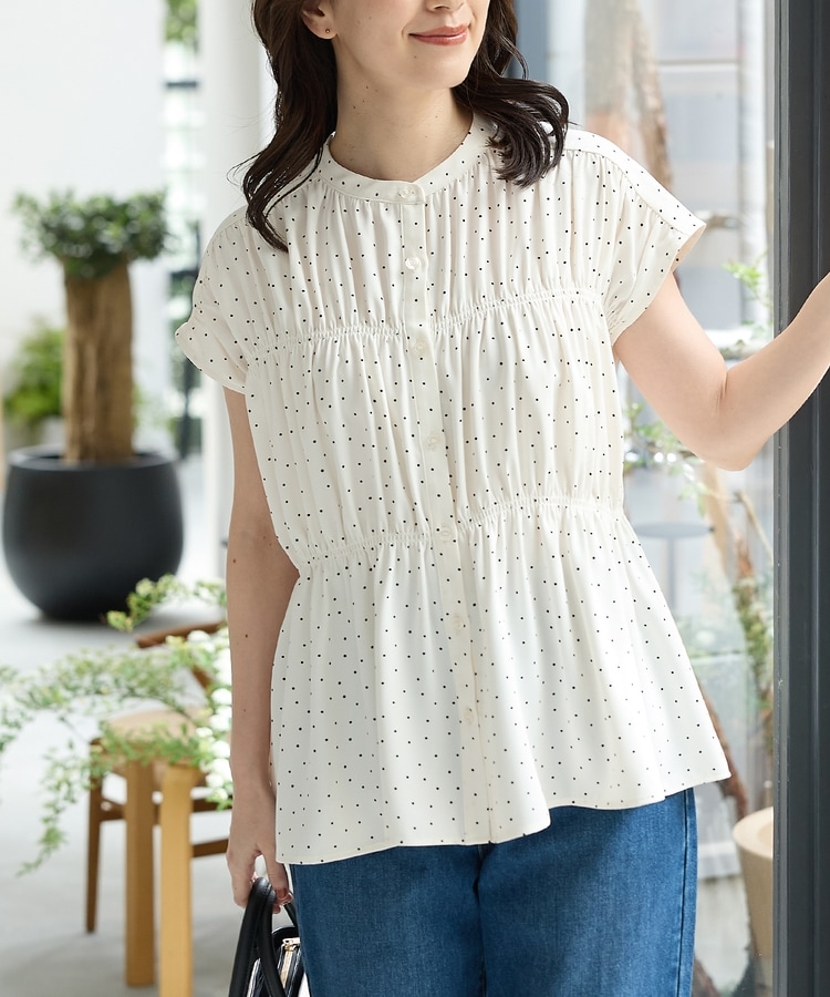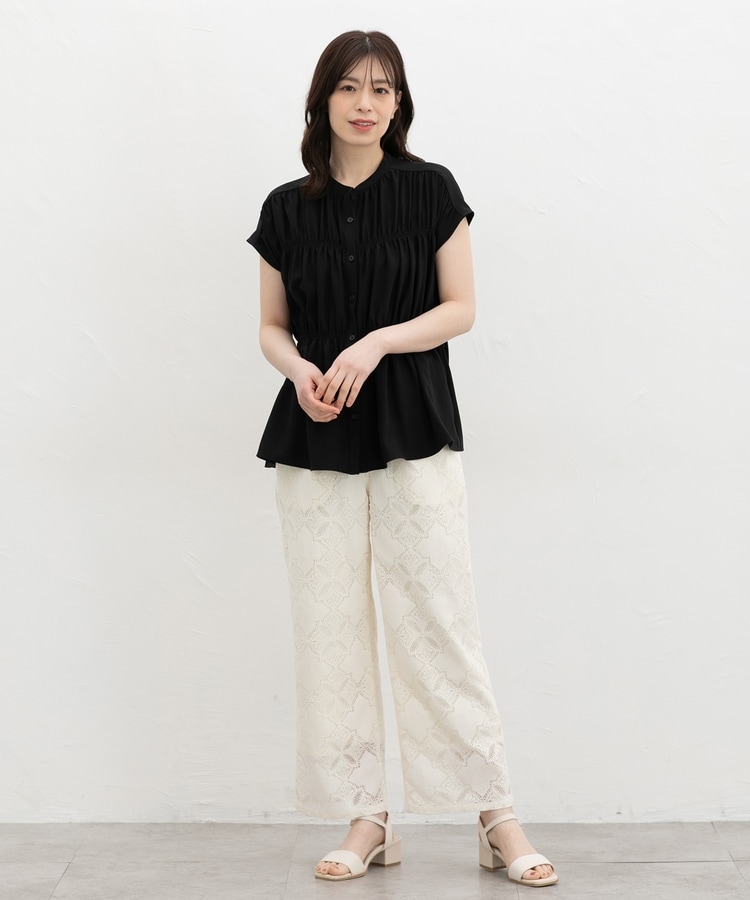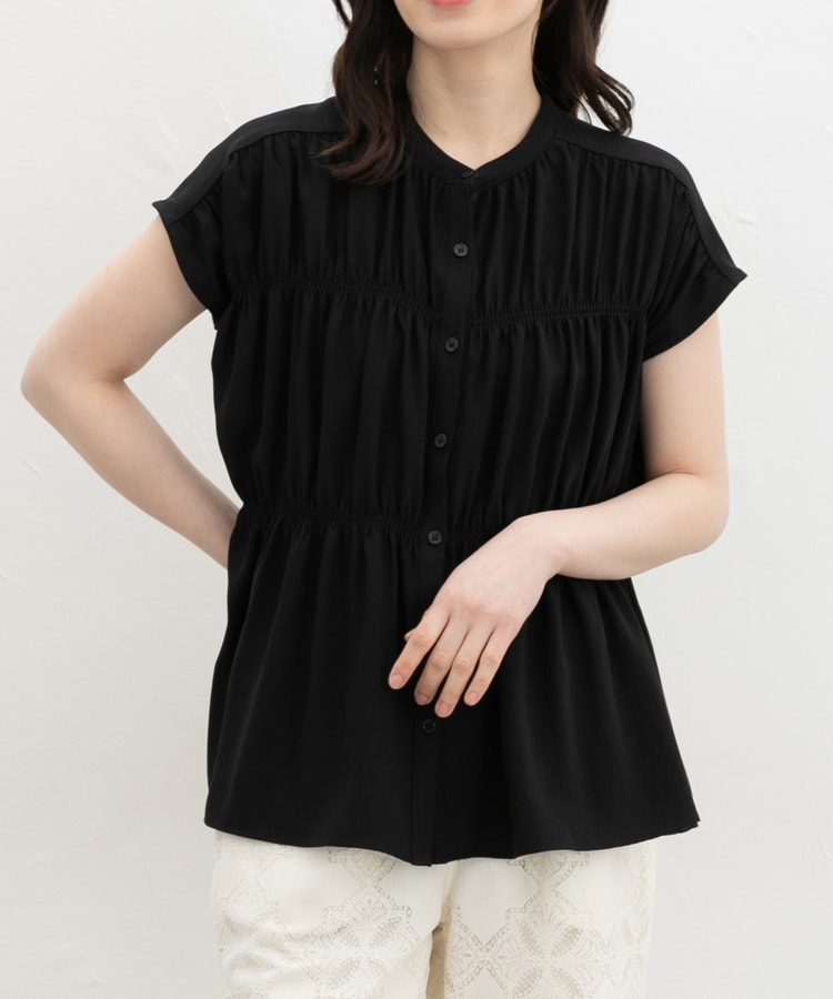 ブラウスとしてはもちろん、ボタンを開けてラフに羽織るのも◎