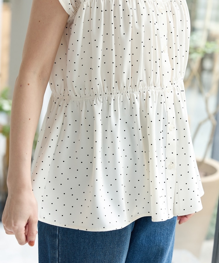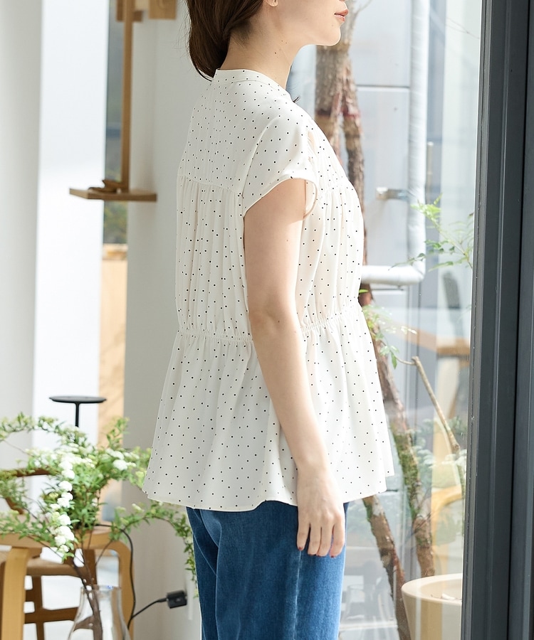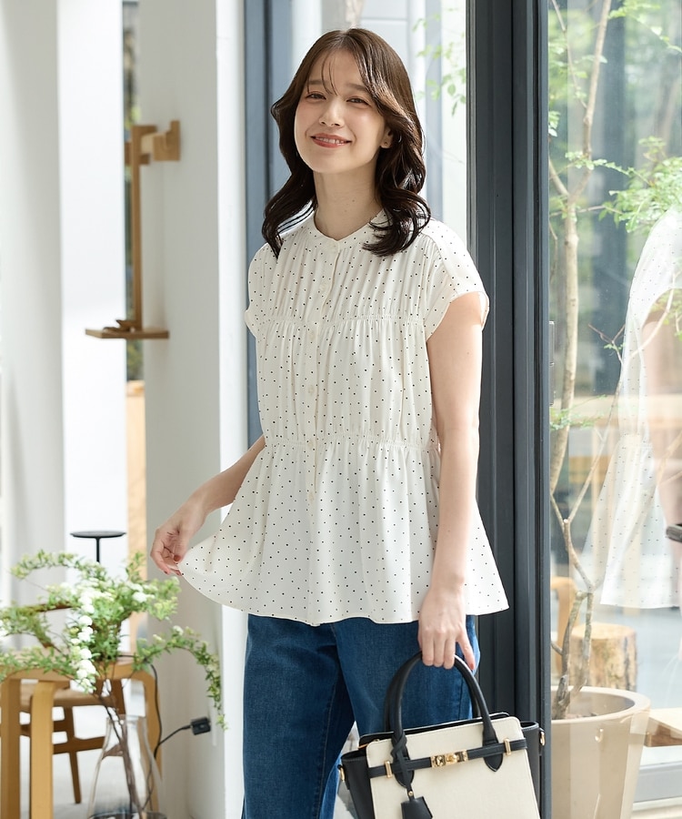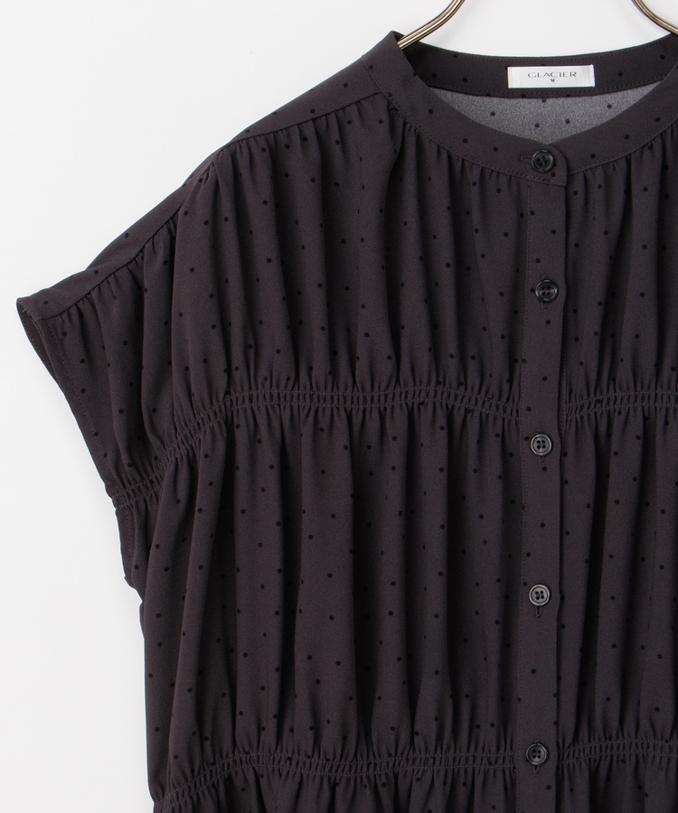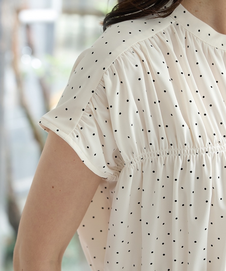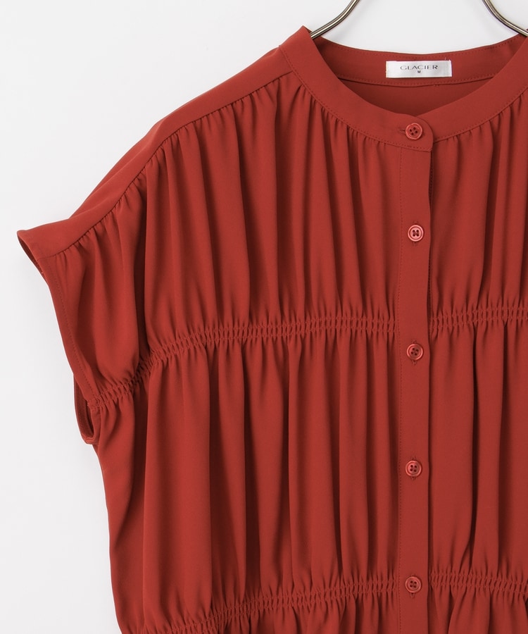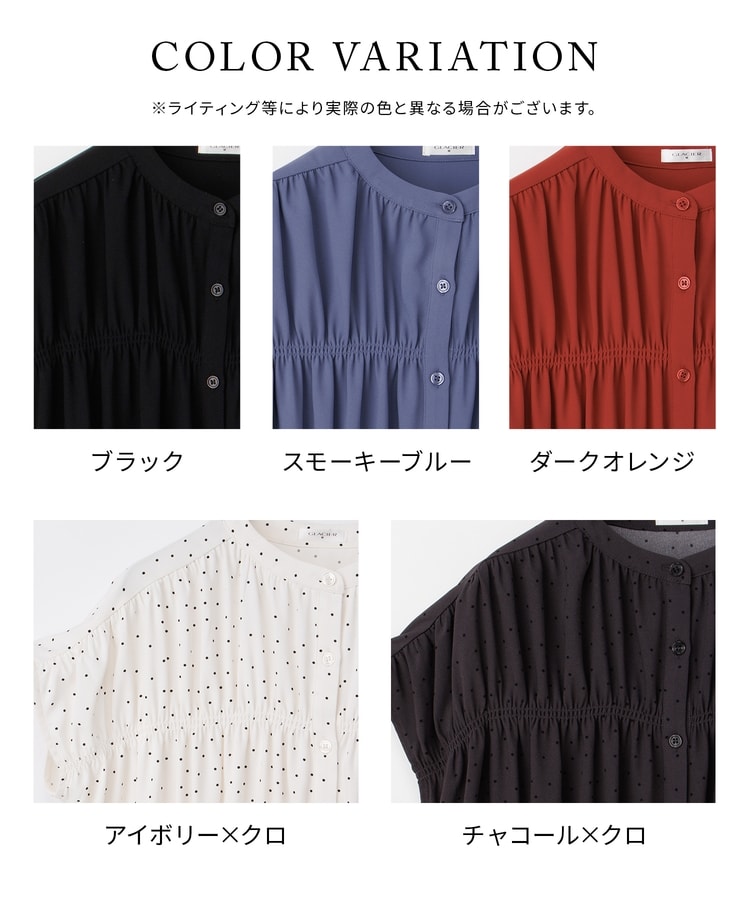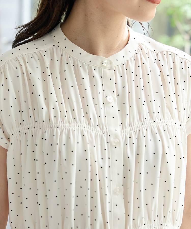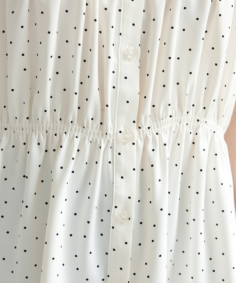 胸元とウエストのシャーリングで程よいボリュームを出した、1枚でスタイリングがぐっと華やかに着映える上品デザイン。