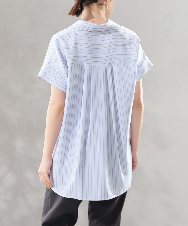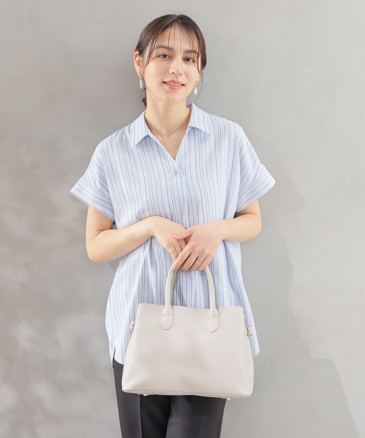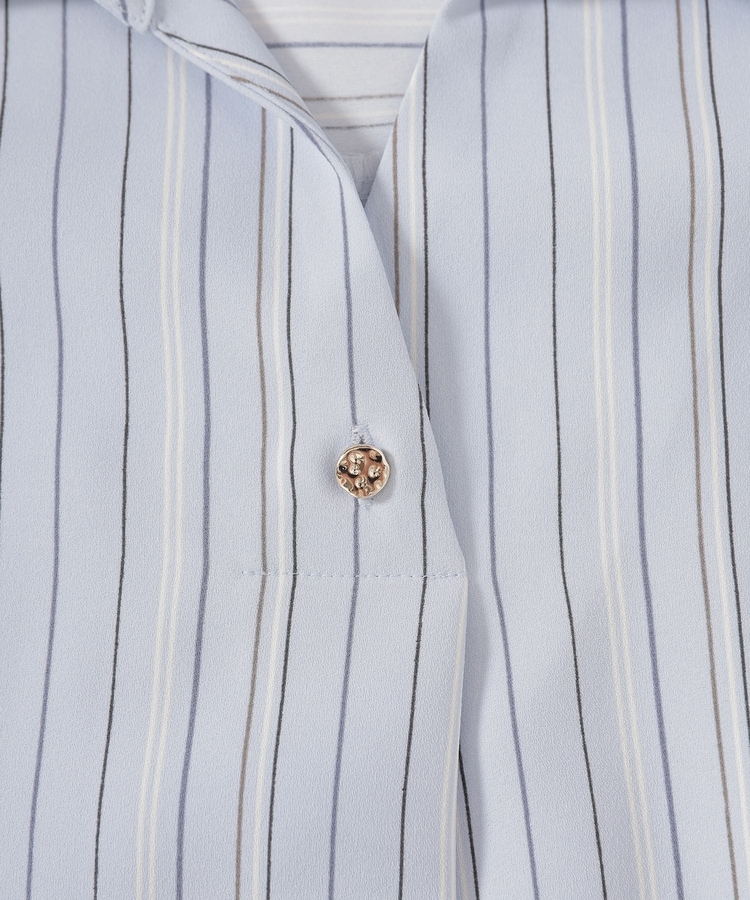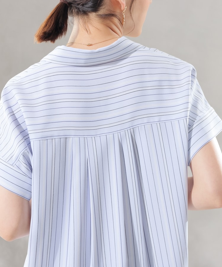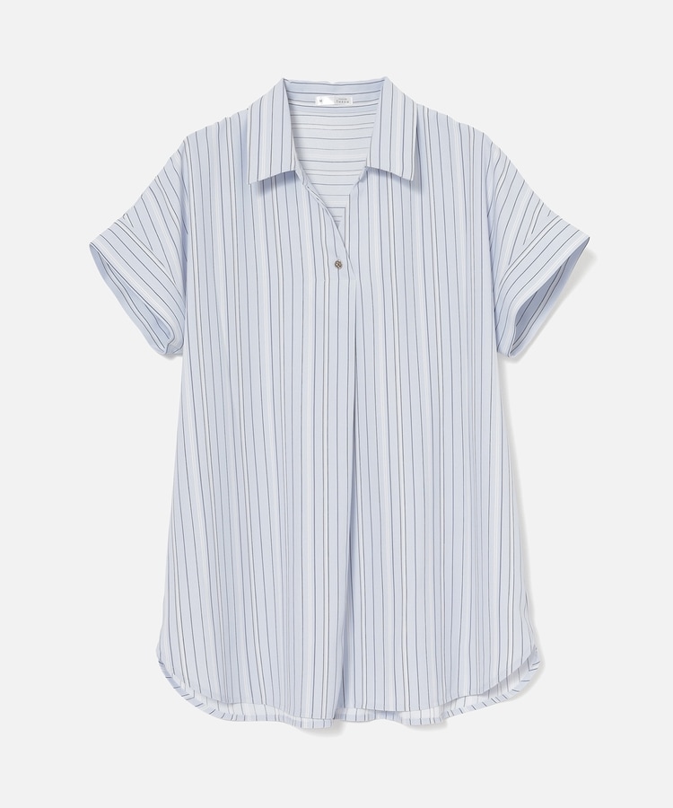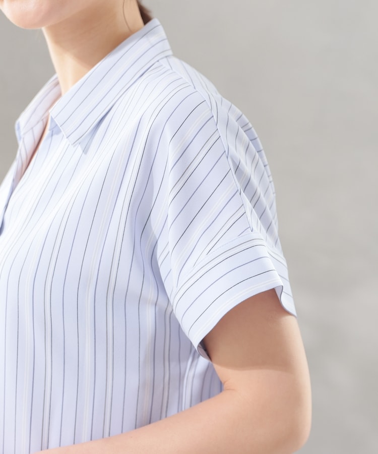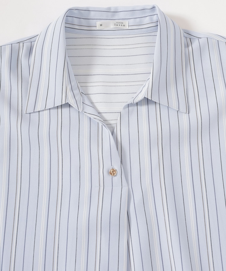 首元をすっきり見せるスキッパー衿が程よい抜け感を演出してくれる大人なデザイン。
