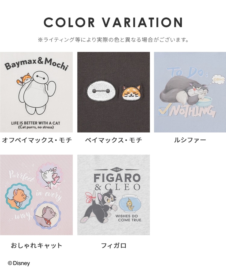 ディズニーアニメに登場するネコキャラクターたちのプリントや刺繍がキュートなデザイン。