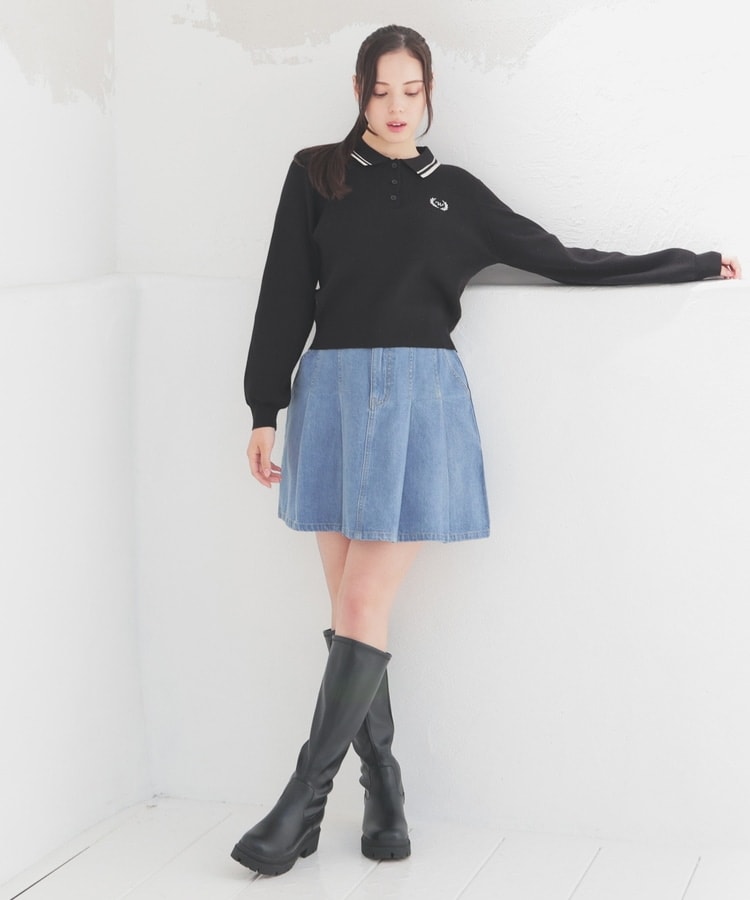 カジュアルに着られるデニム素材で甘くなりすぎないのがポイント♪