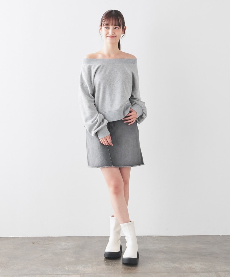 Tシャツやスウェット合わせはもちろん、コンパクトトップスと合わせて後ろのデザインを見せるのがおすすめ。