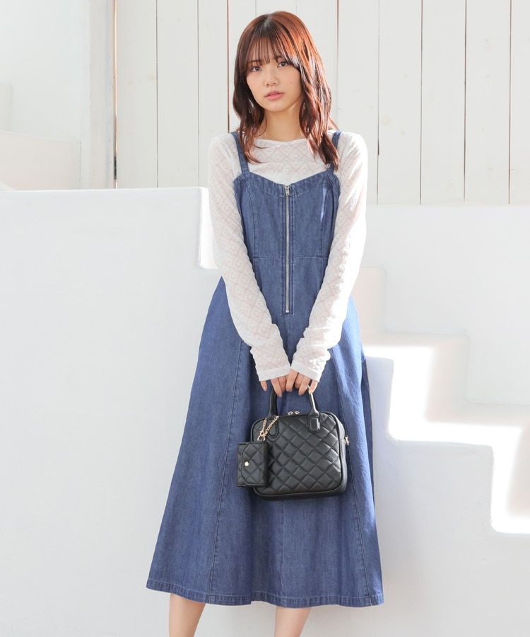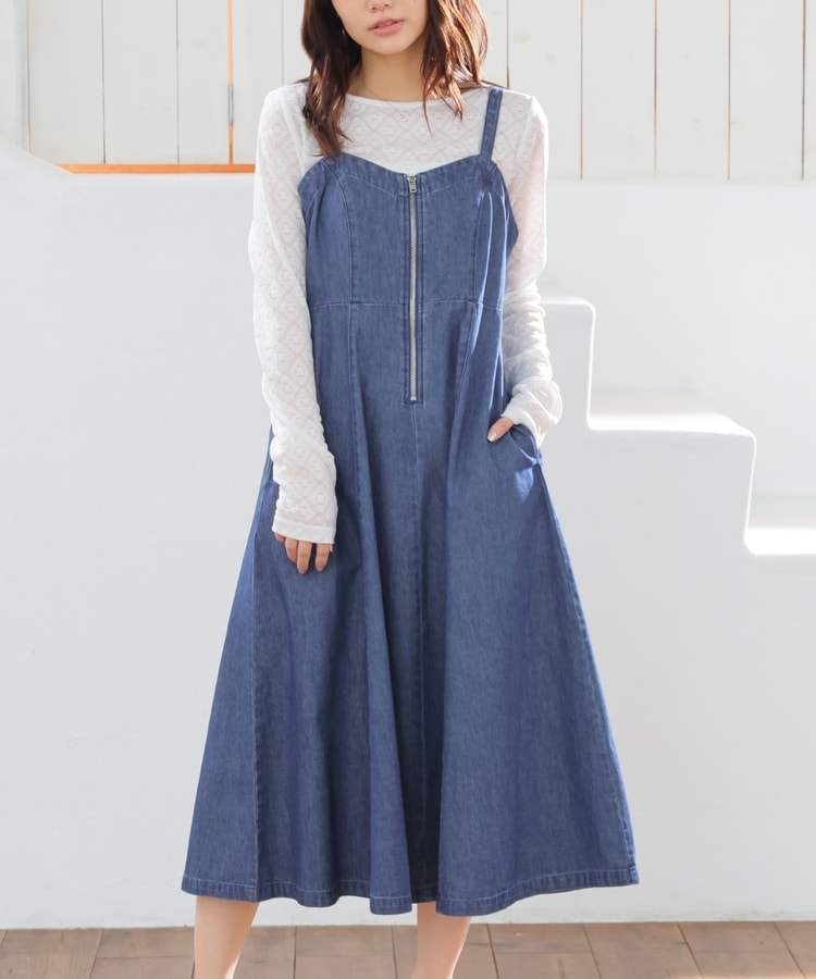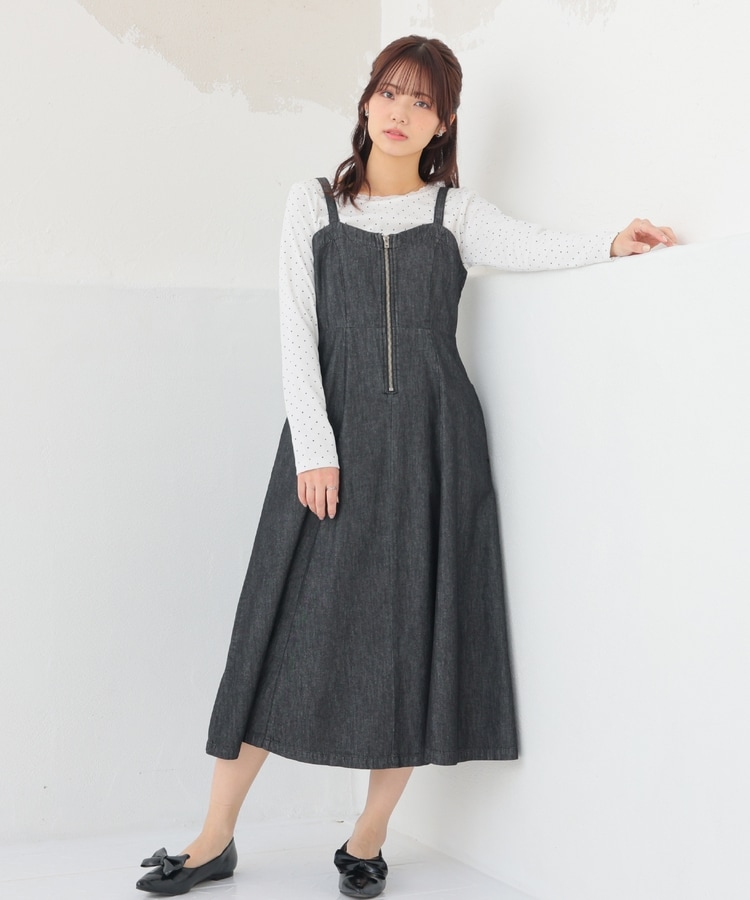 高めの切り替え位置から広がるAラインシルエットとロング丈で、スタイルアップ効果もあり大人っぽい雰囲気に。