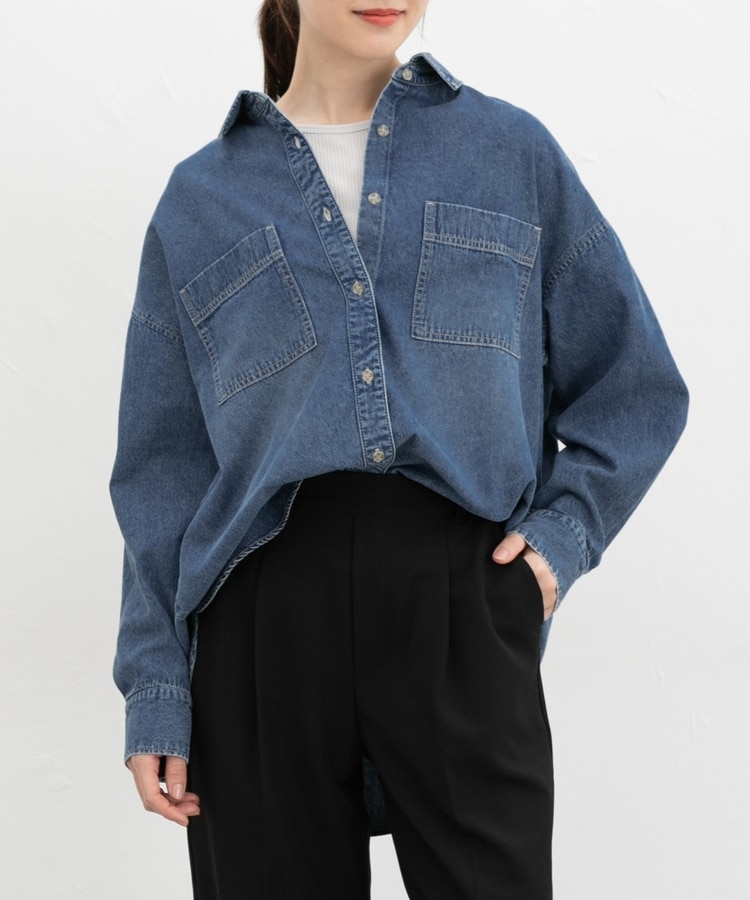 レギュラーカラーに両胸ポケットがアクセントのベーシックなデザイン。