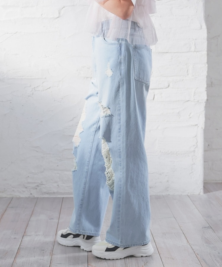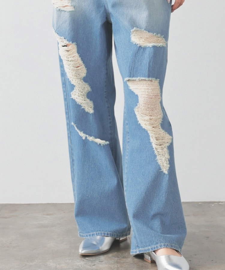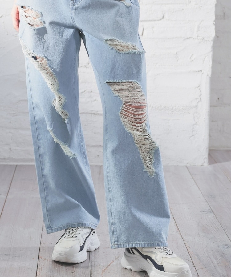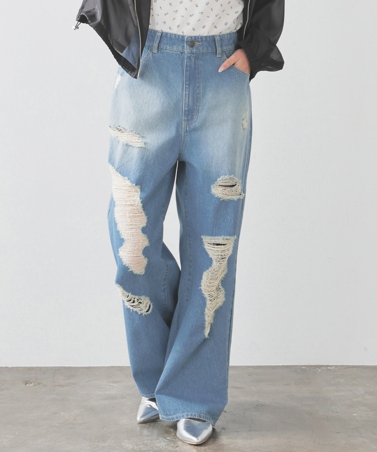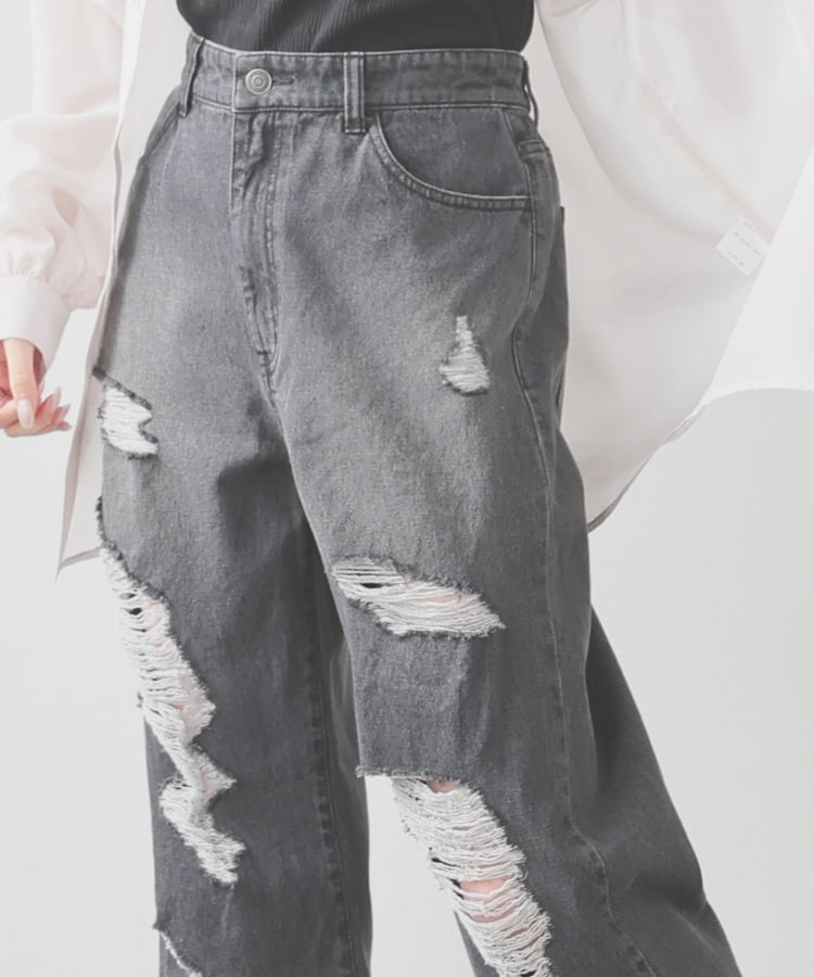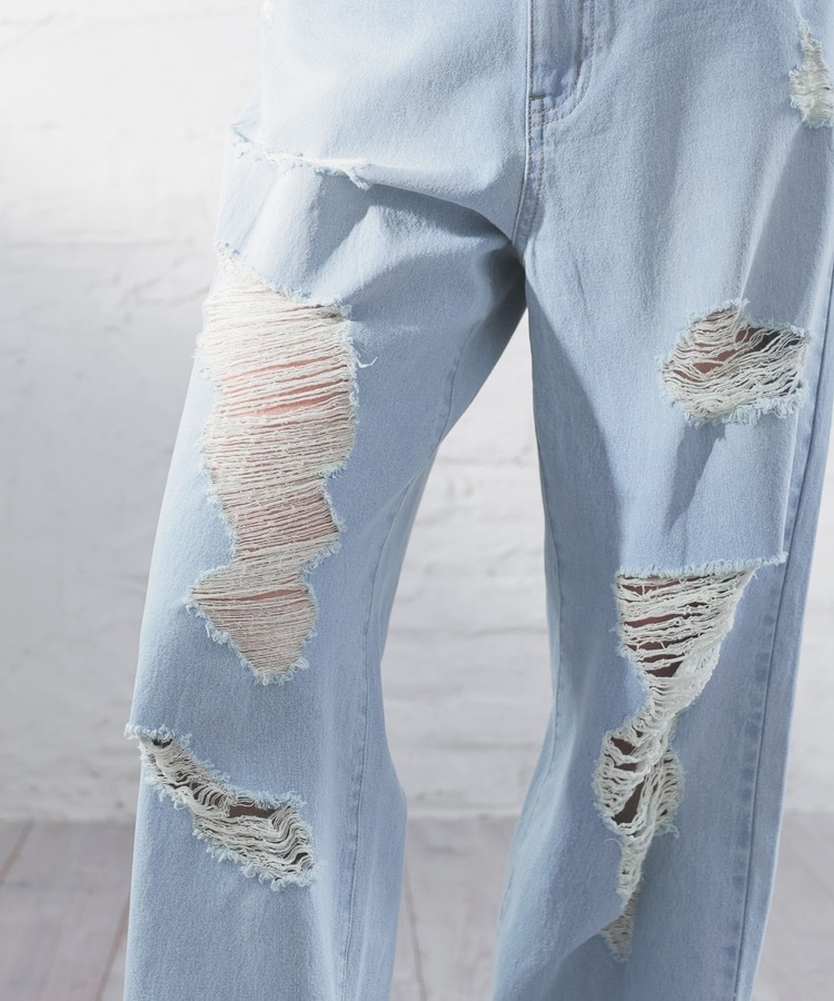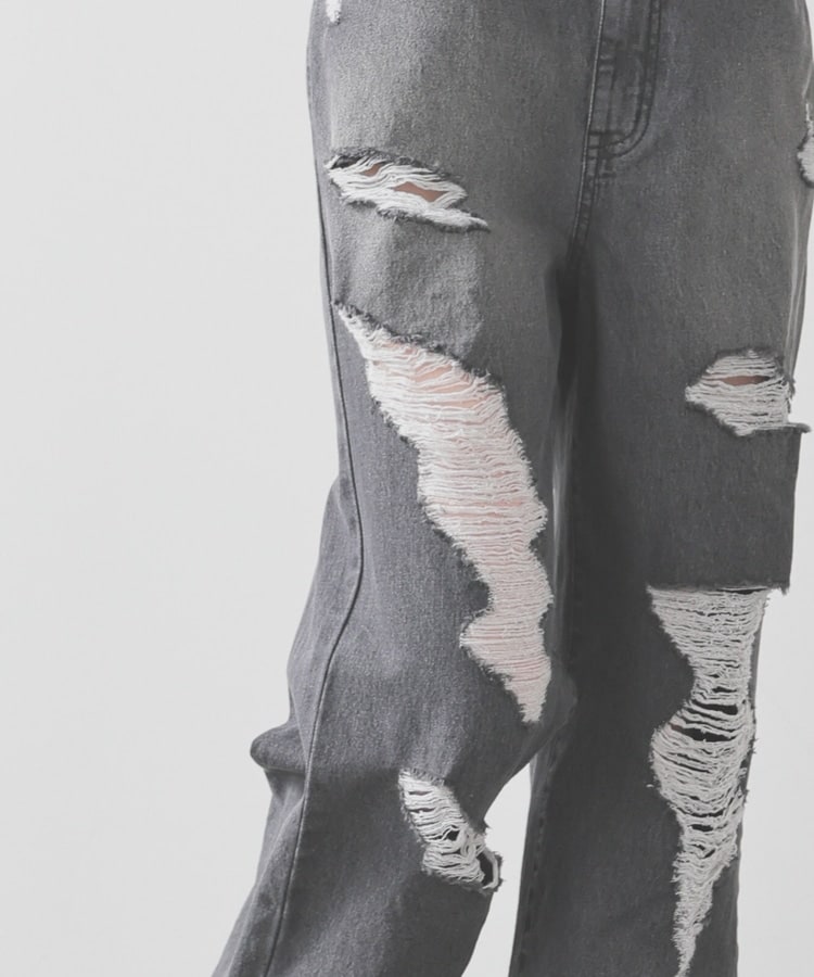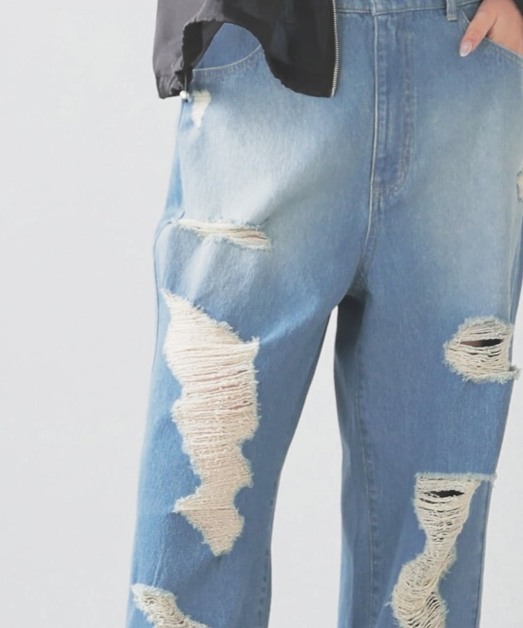 大胆なダメージ加工が目を引くデザイン。