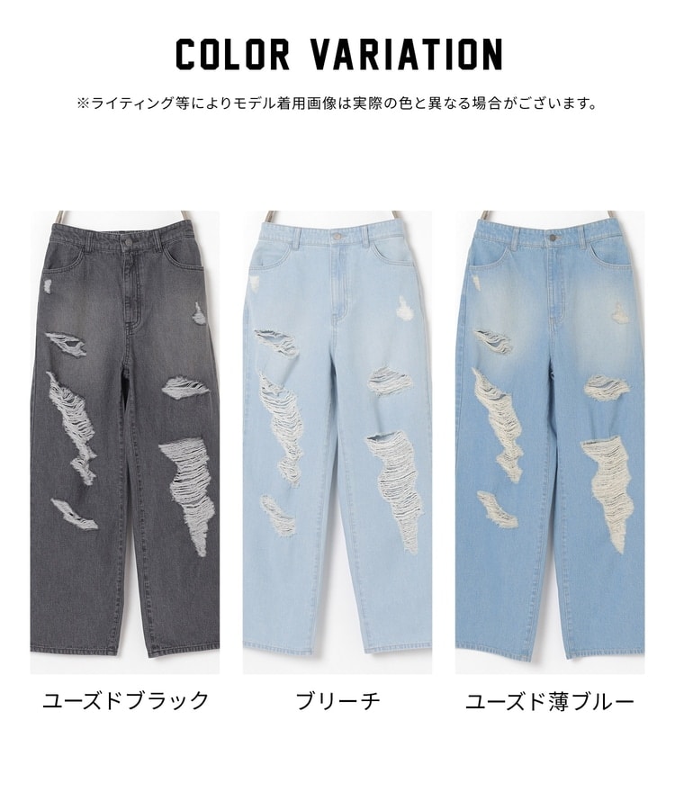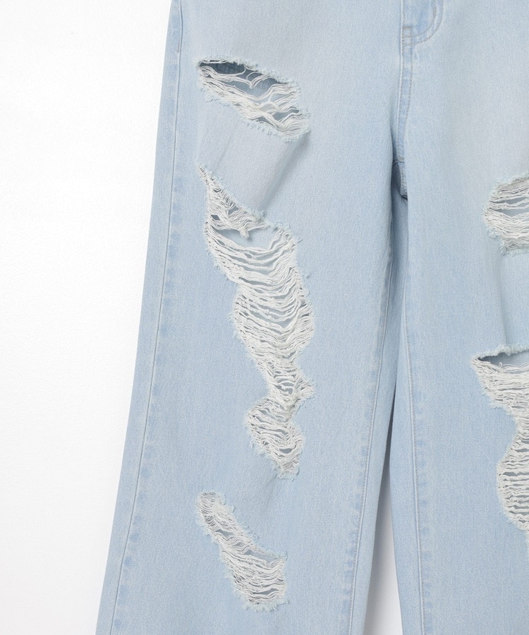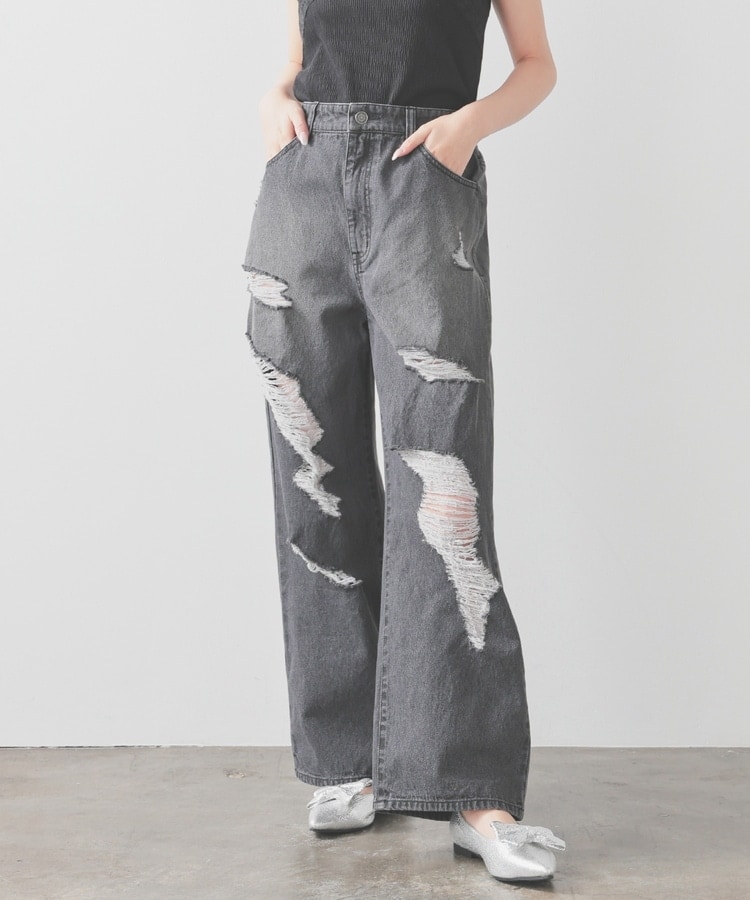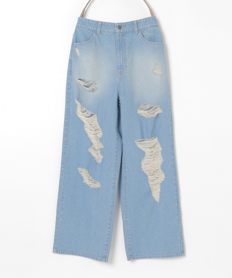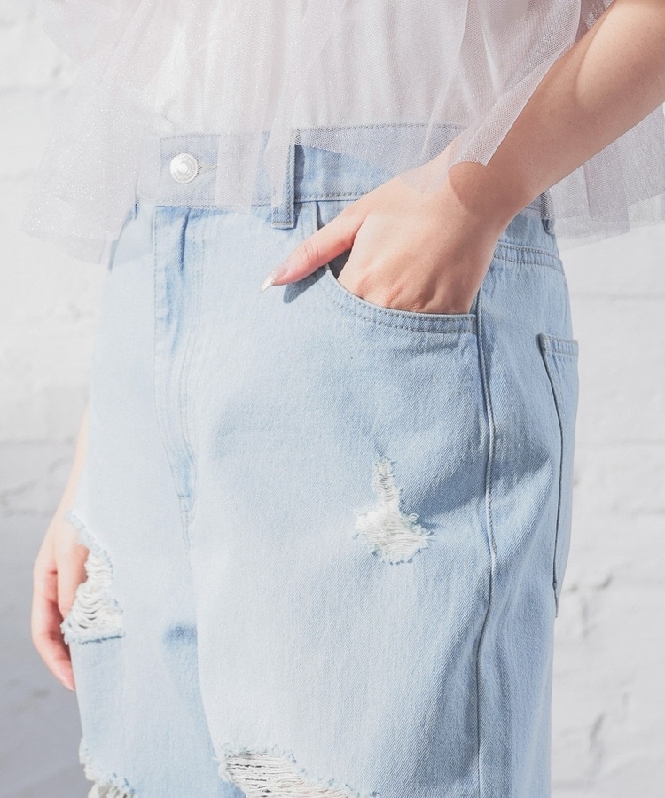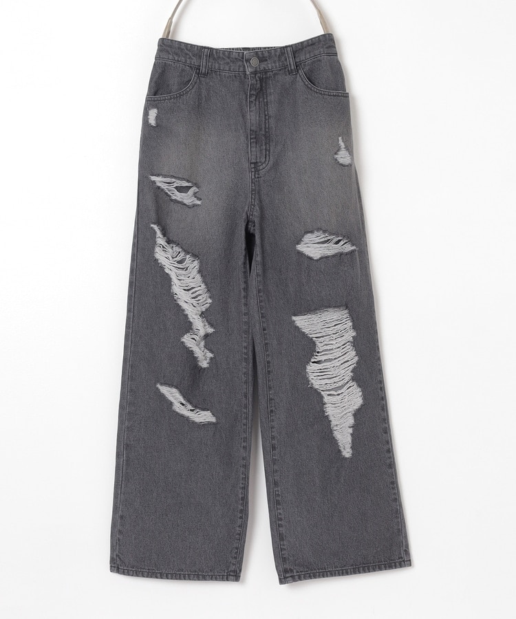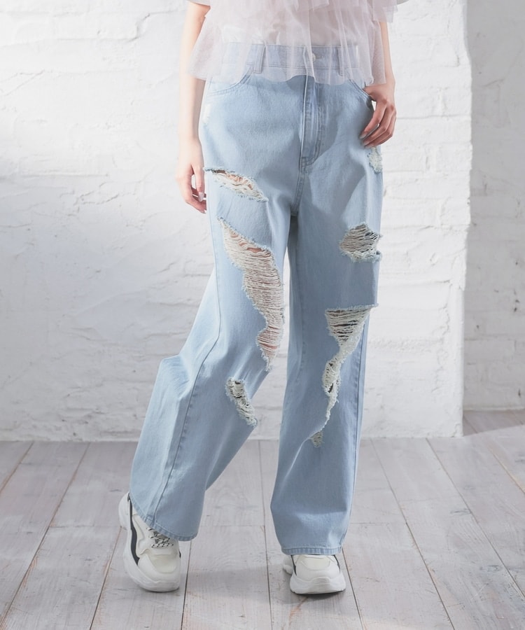大胆なダメージ加工が目を引くデザイン。