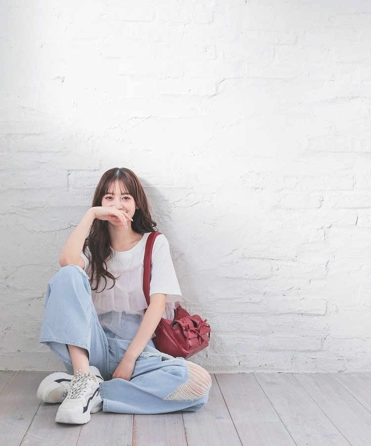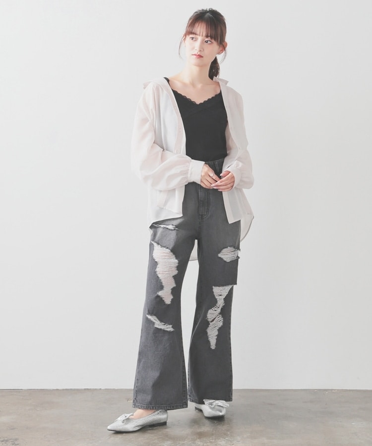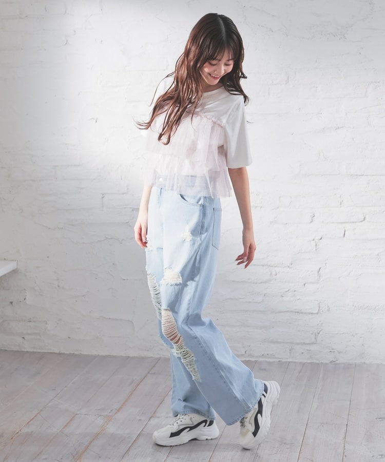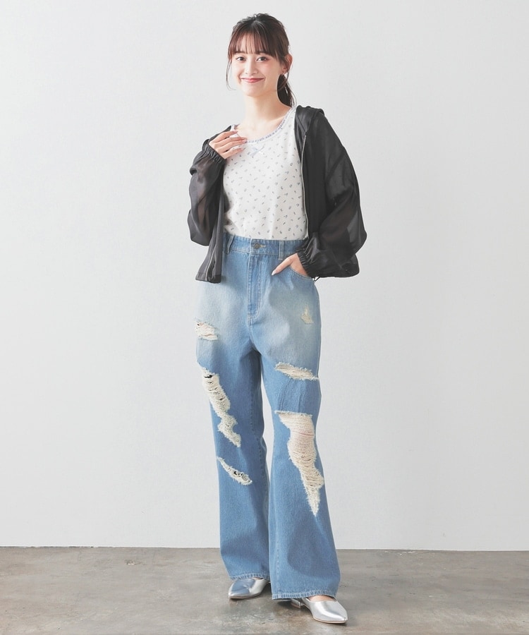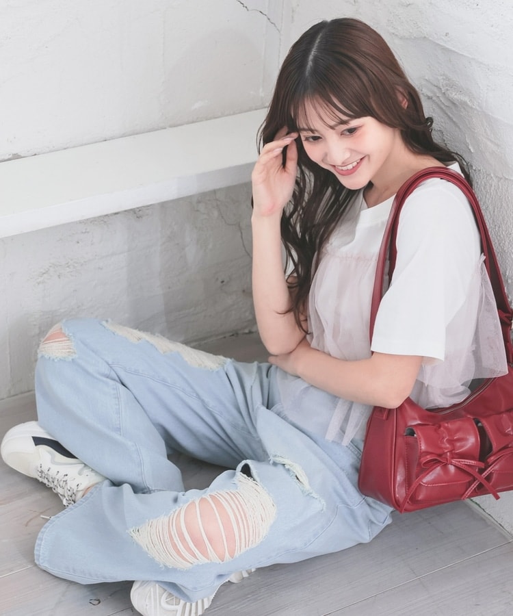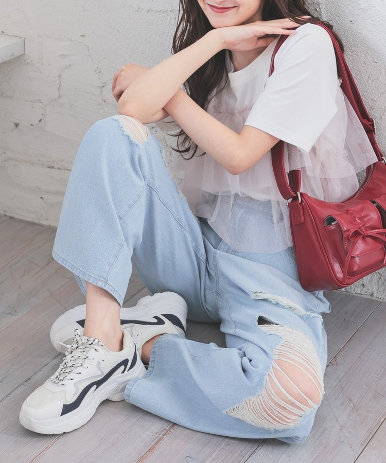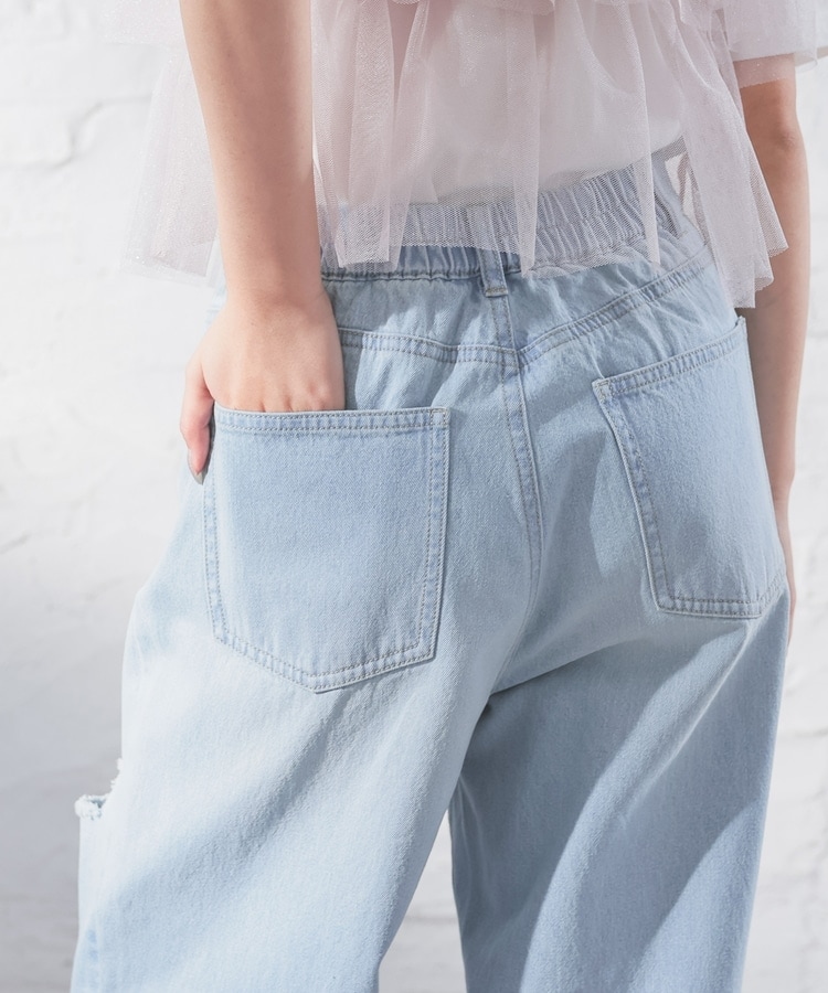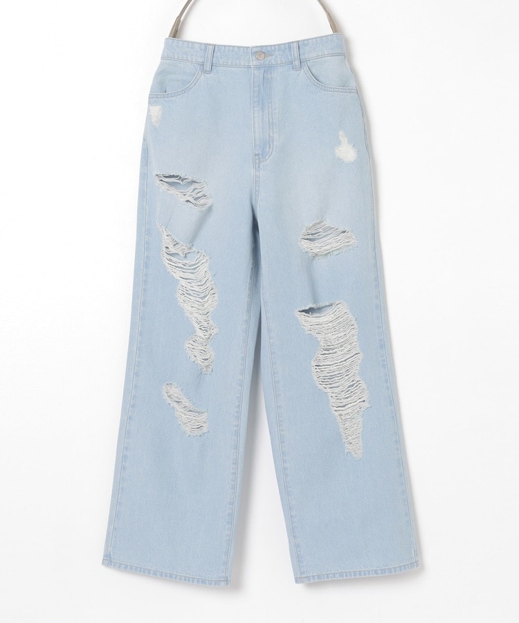 大胆なダメージ加工が目を引くデザイン。