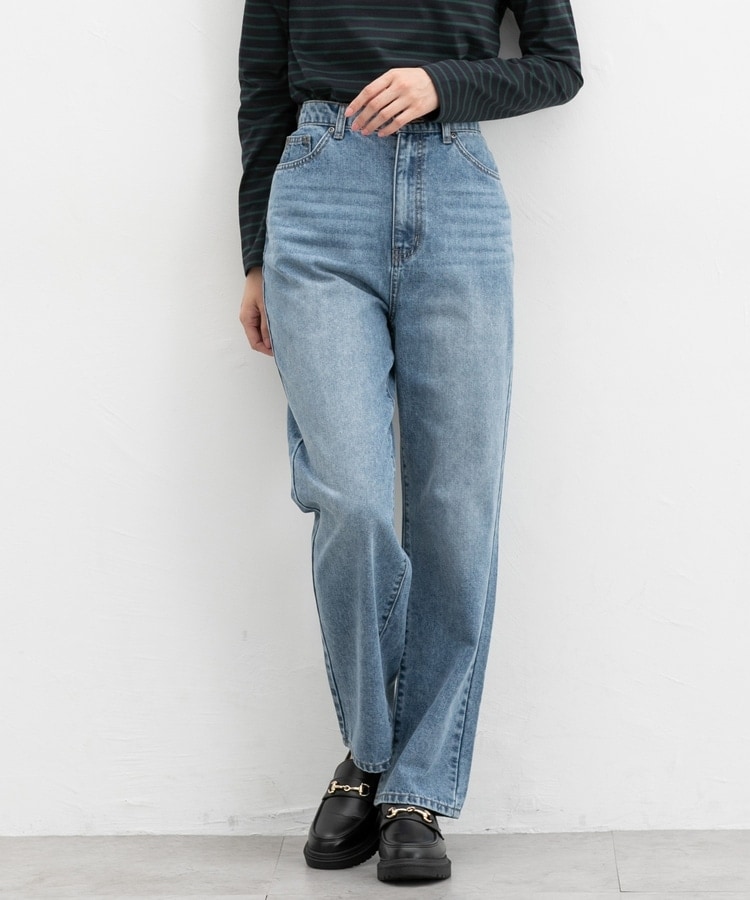 太すぎないシルエットのデニムストレート、股下66cmタイプ。
