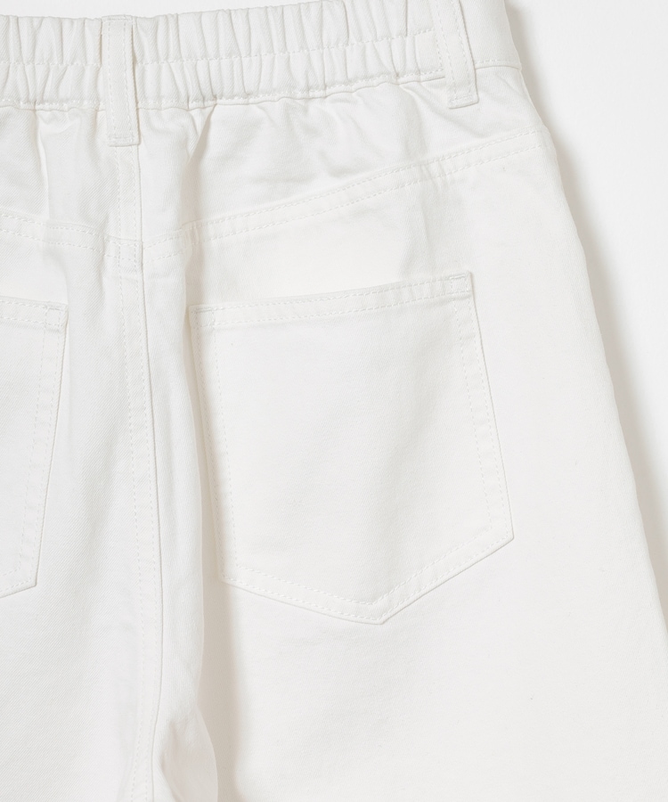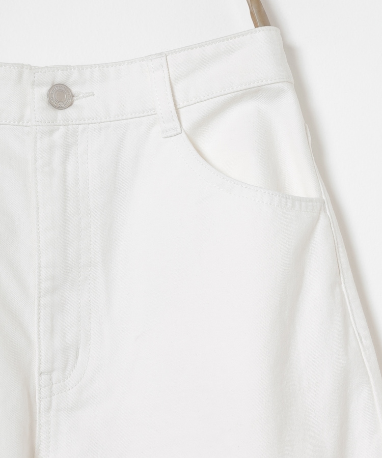 ひざの内側にダーツを入れた、ゆったりしたもも周りから裾に向かって緩くカーブするシルエットのトレンドライクなデザイン。