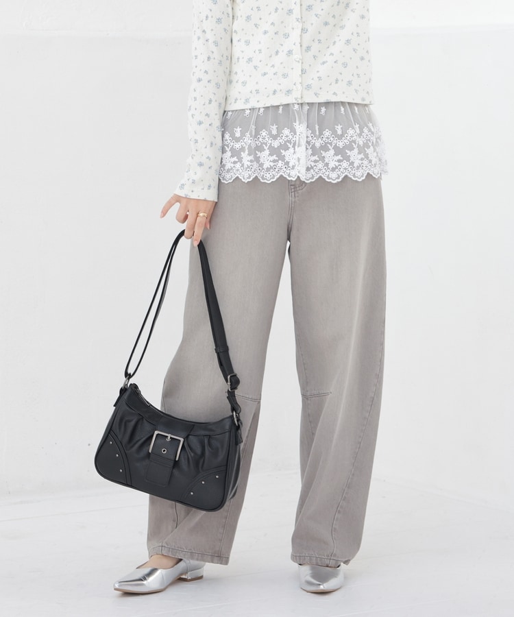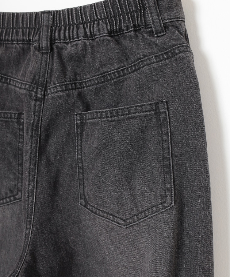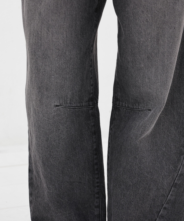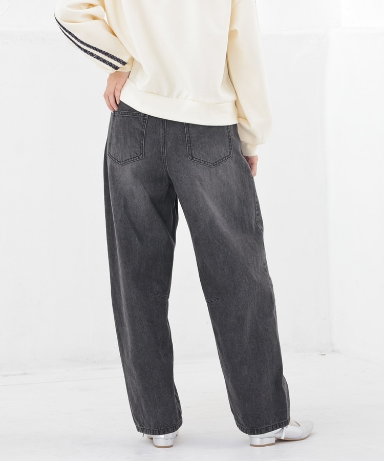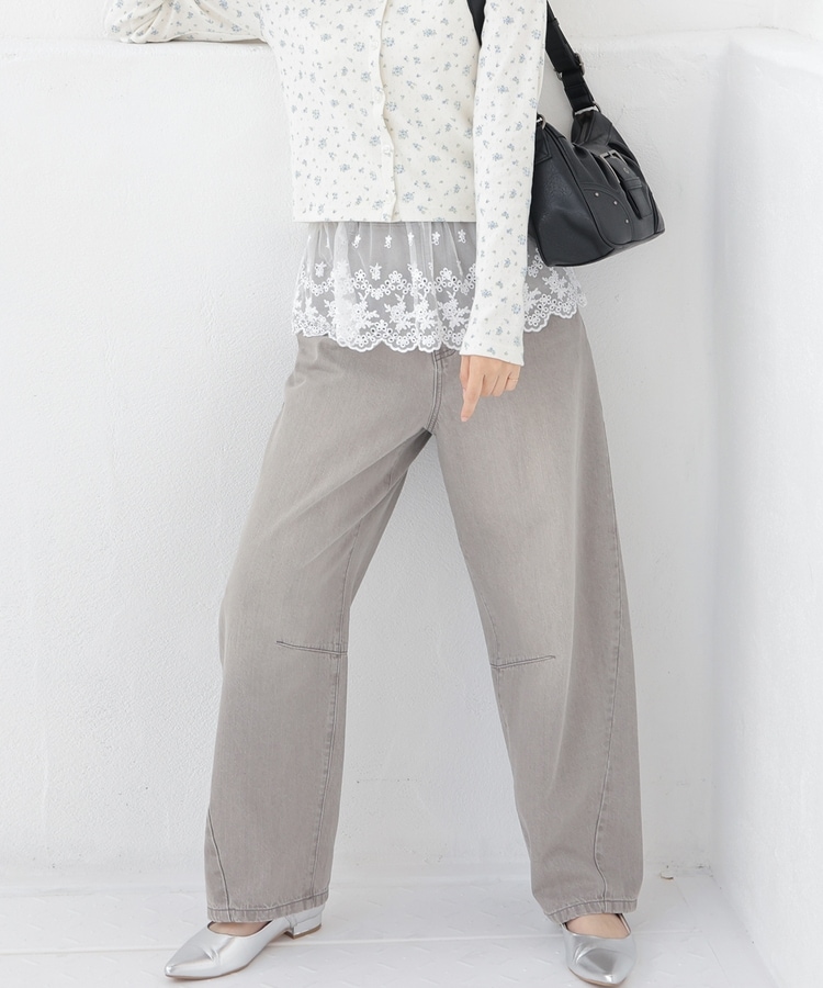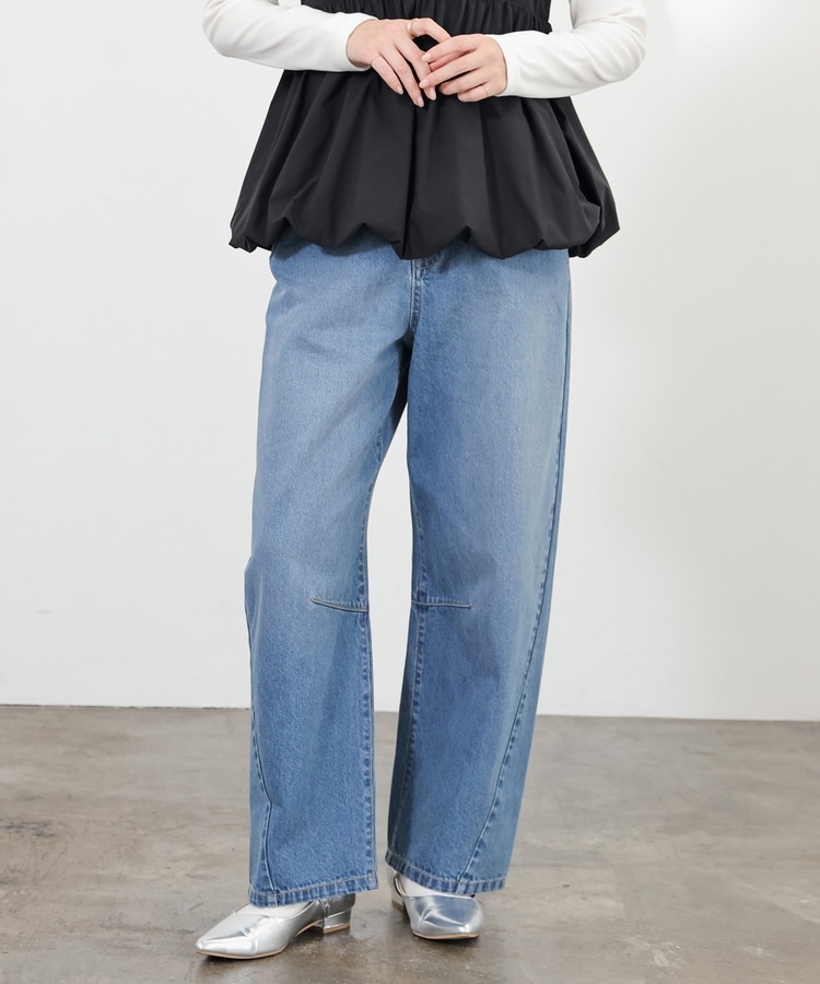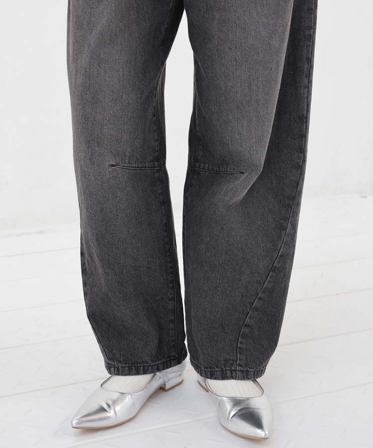 ひざの内側にダーツを入れた、ゆったりしたもも周りから裾に向かって緩くカーブするシルエットのトレンドライクなデザイン。