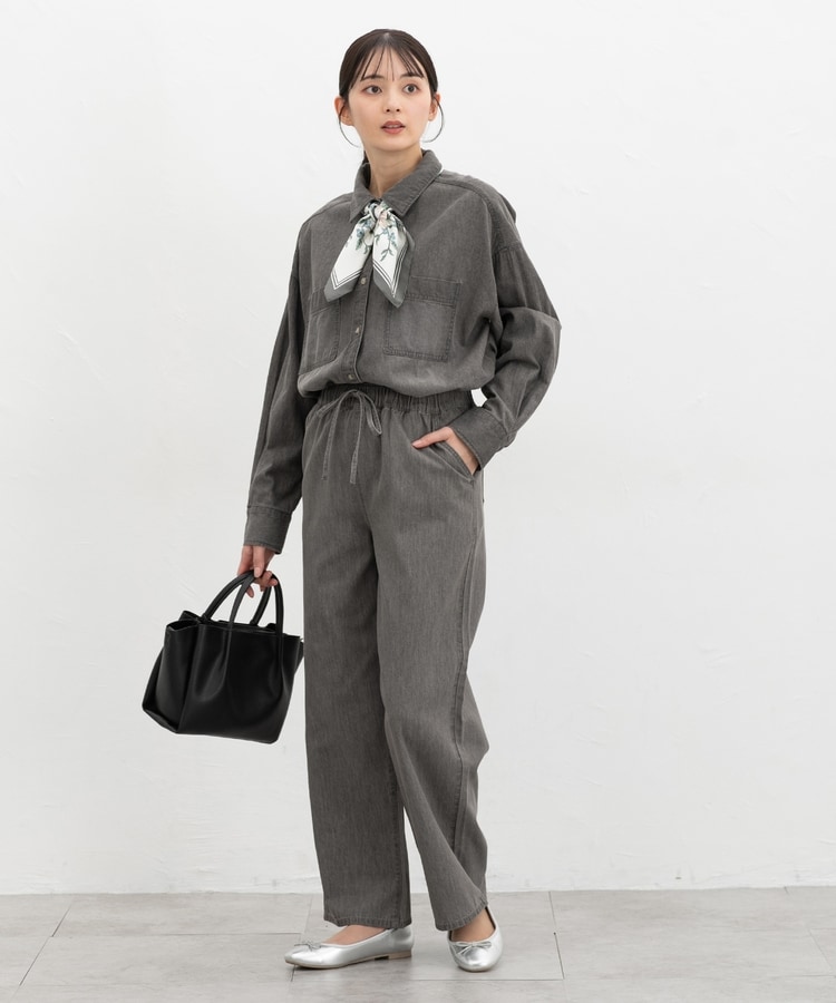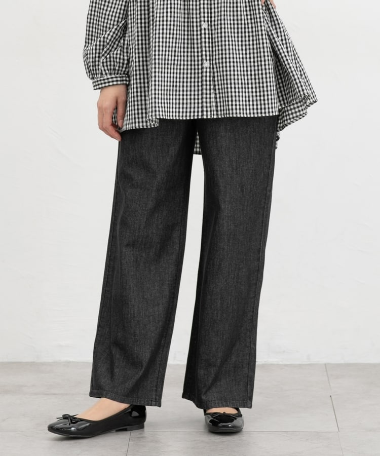 脚のラインを拾わないゆったりシルエットながら、すらっとストレートでスタイルアップも叶うデザインの股下69cmタイプ。