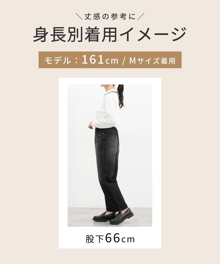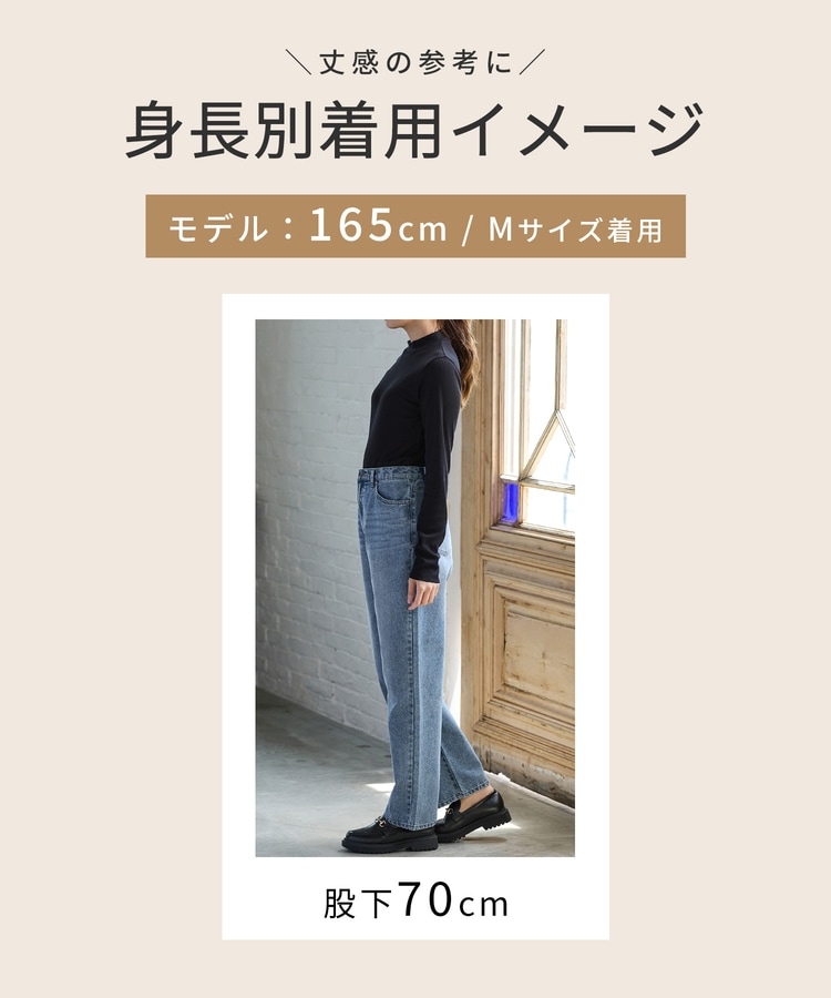 太すぎないシルエットのデニムストレート、股下63cmタイプ。