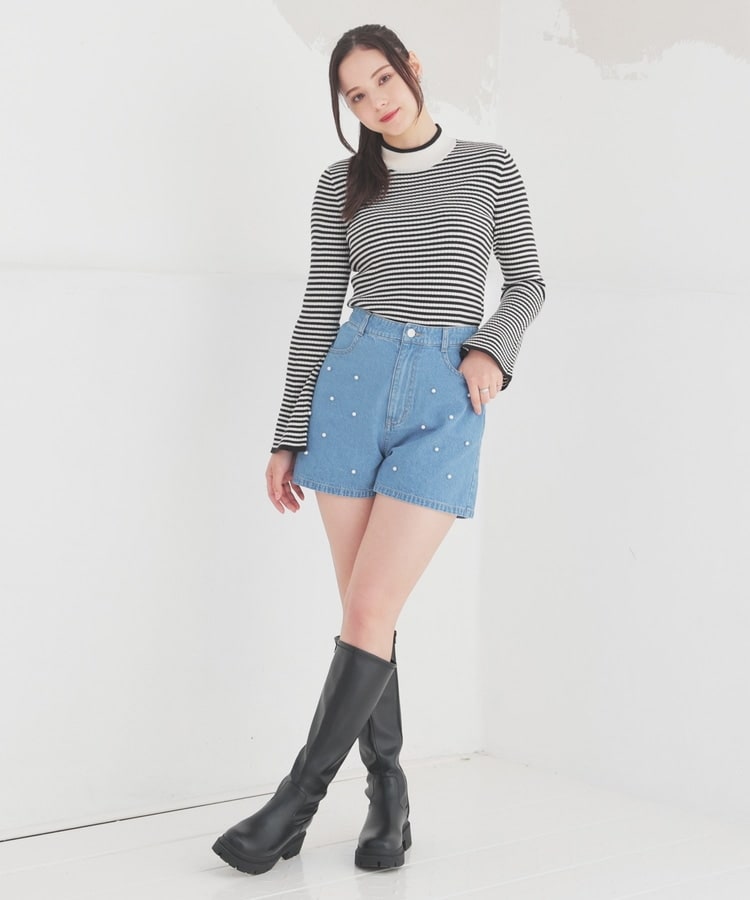 ショート丈トップス合わせやコンパクトトップスのタックインで、パールを見せる着こなしがおすすめ♪