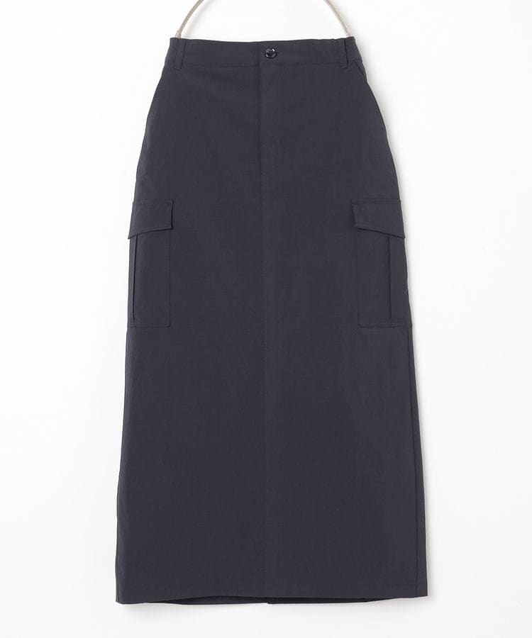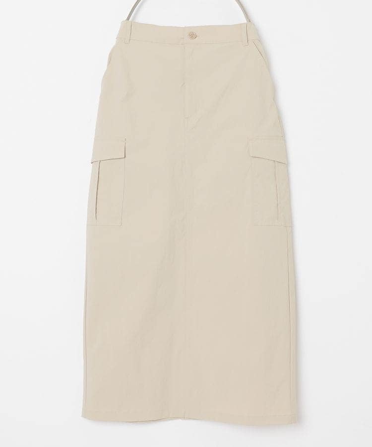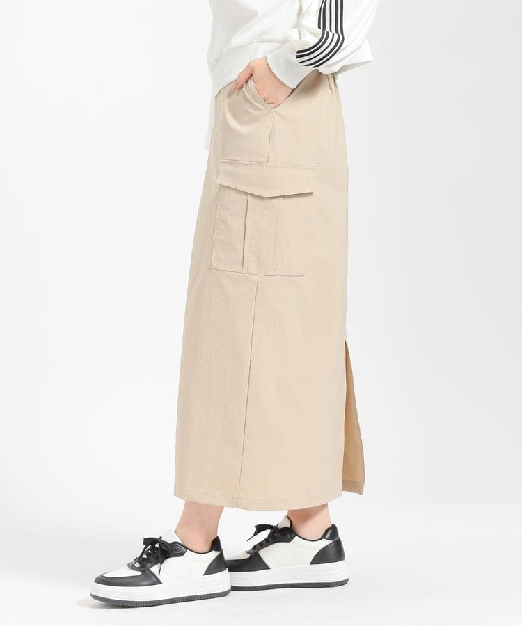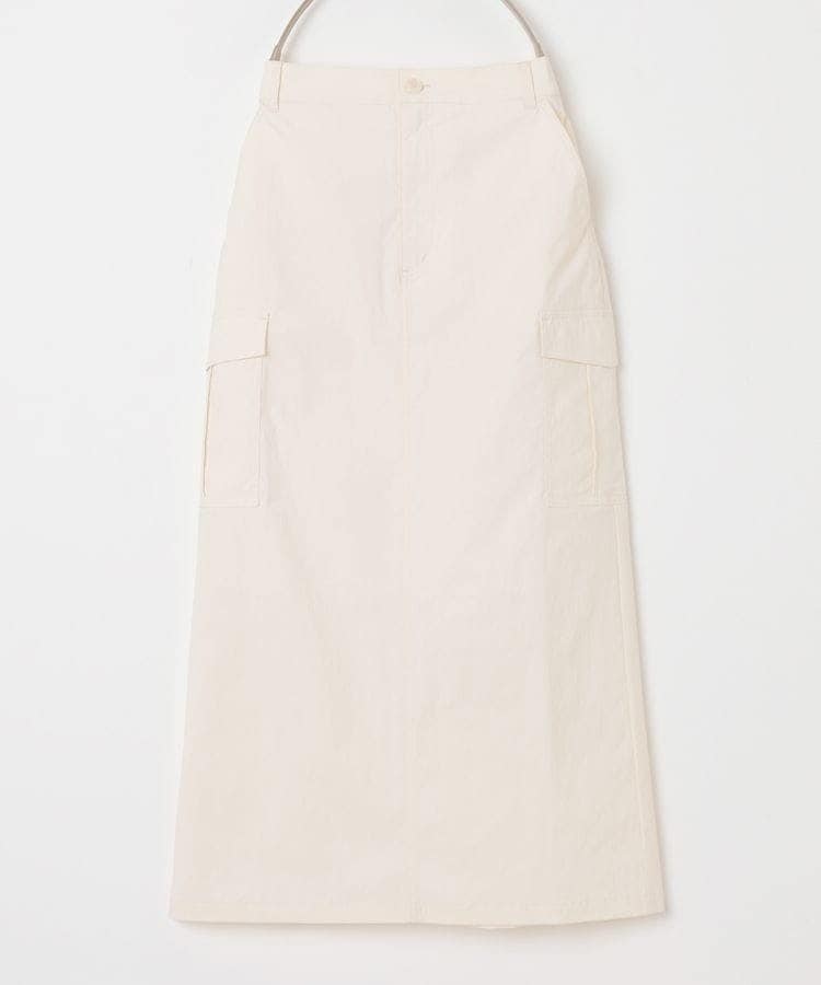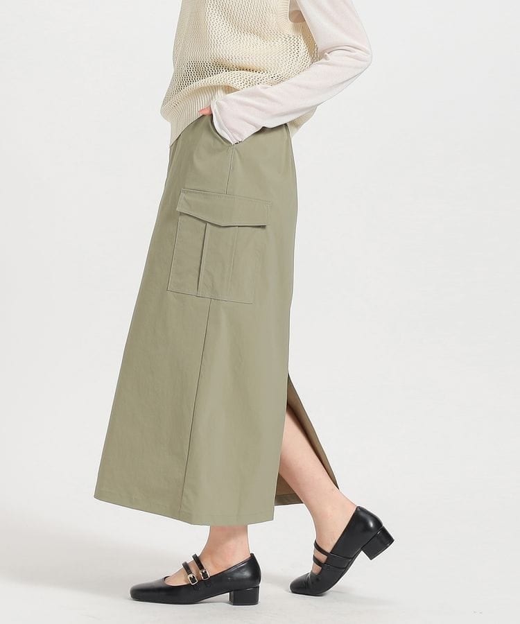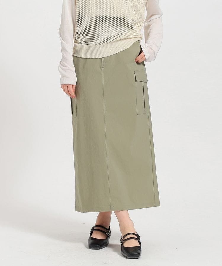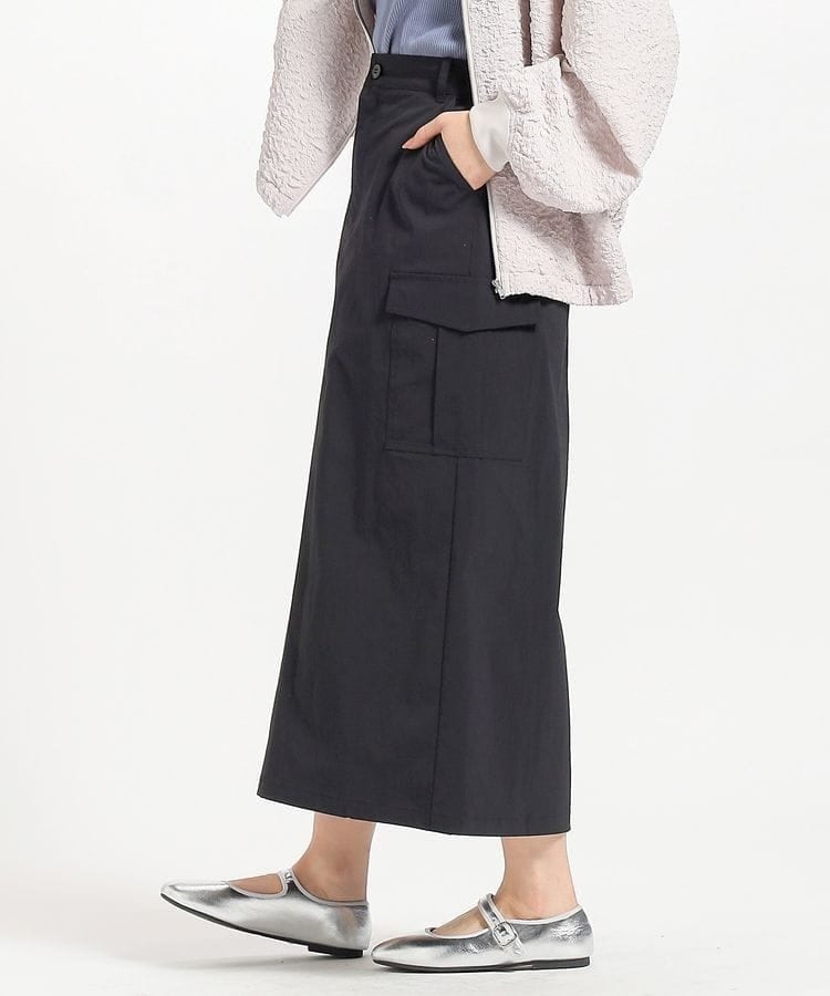 カジュアルになりがちなカーゴスカートに、Iラインシルエットでフェミニンな印象をプラス。