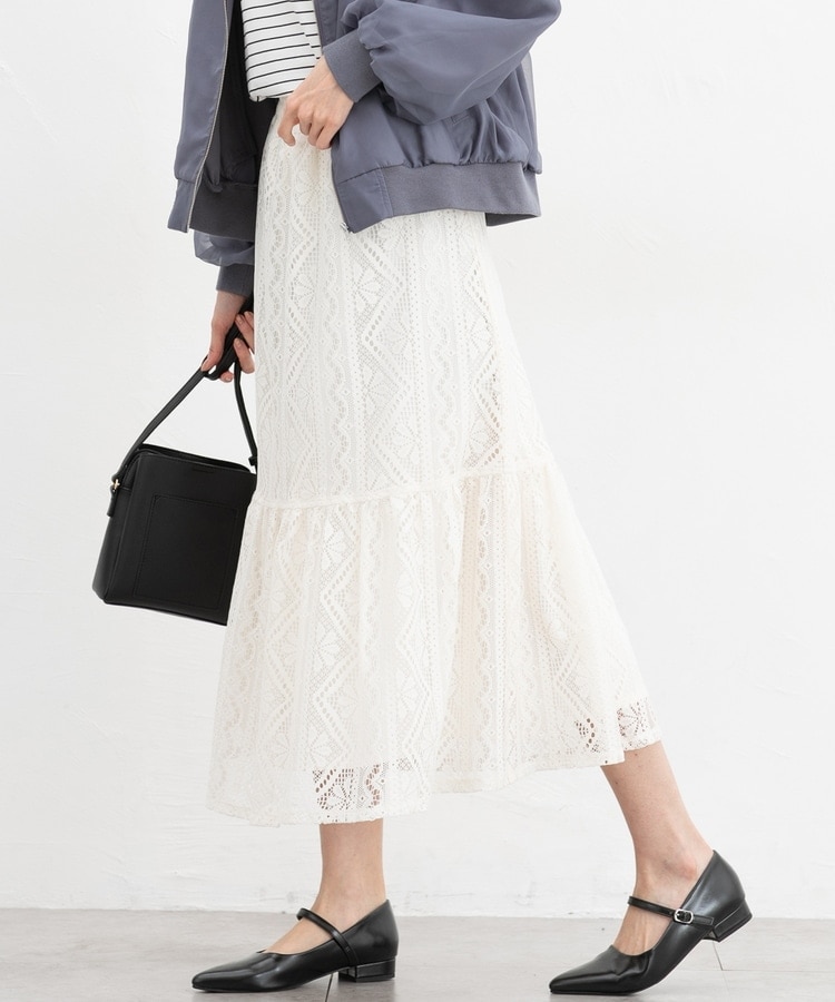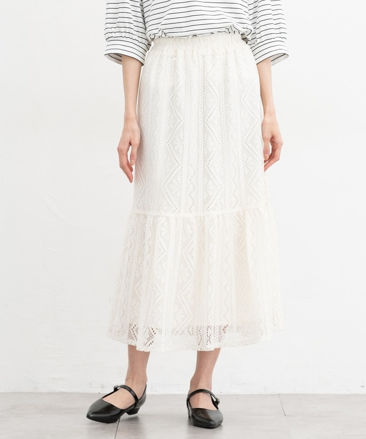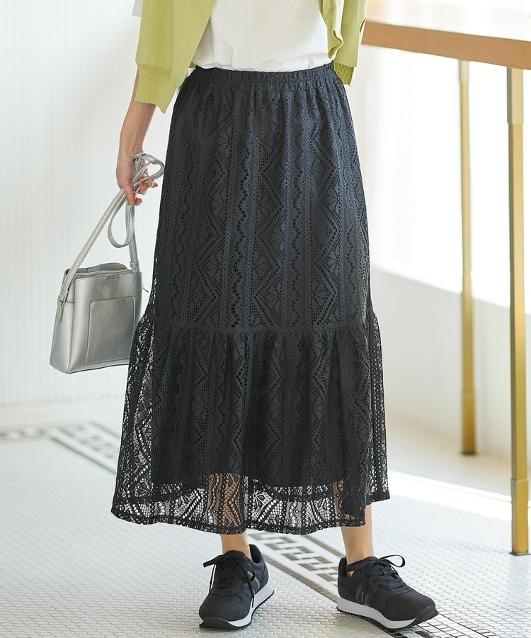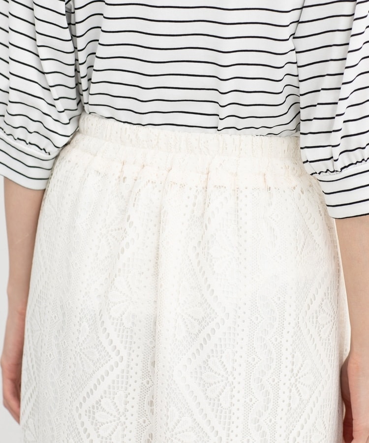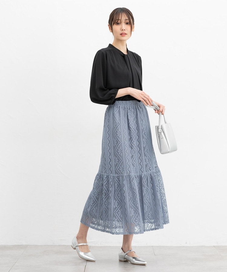 腰回りすっきりでスタイルアップを叶えながら裾に向かって広がる、フェミニンなシルエット。