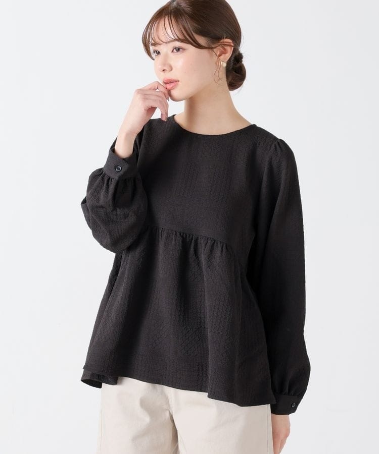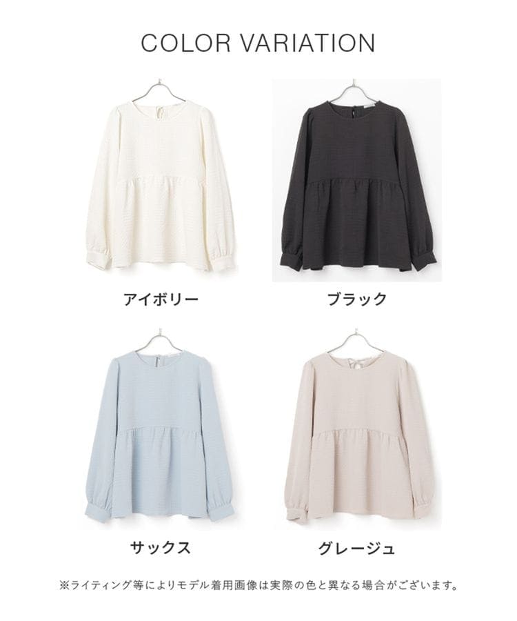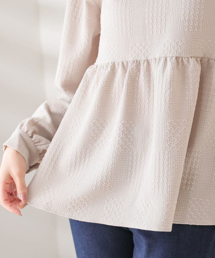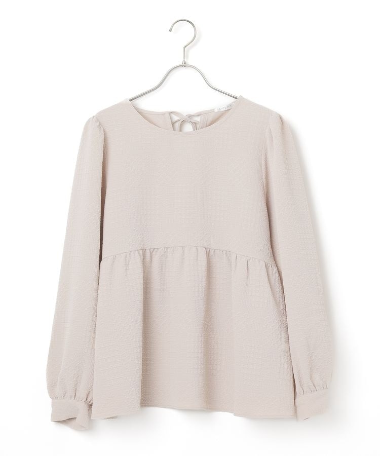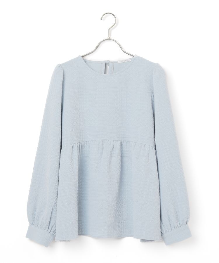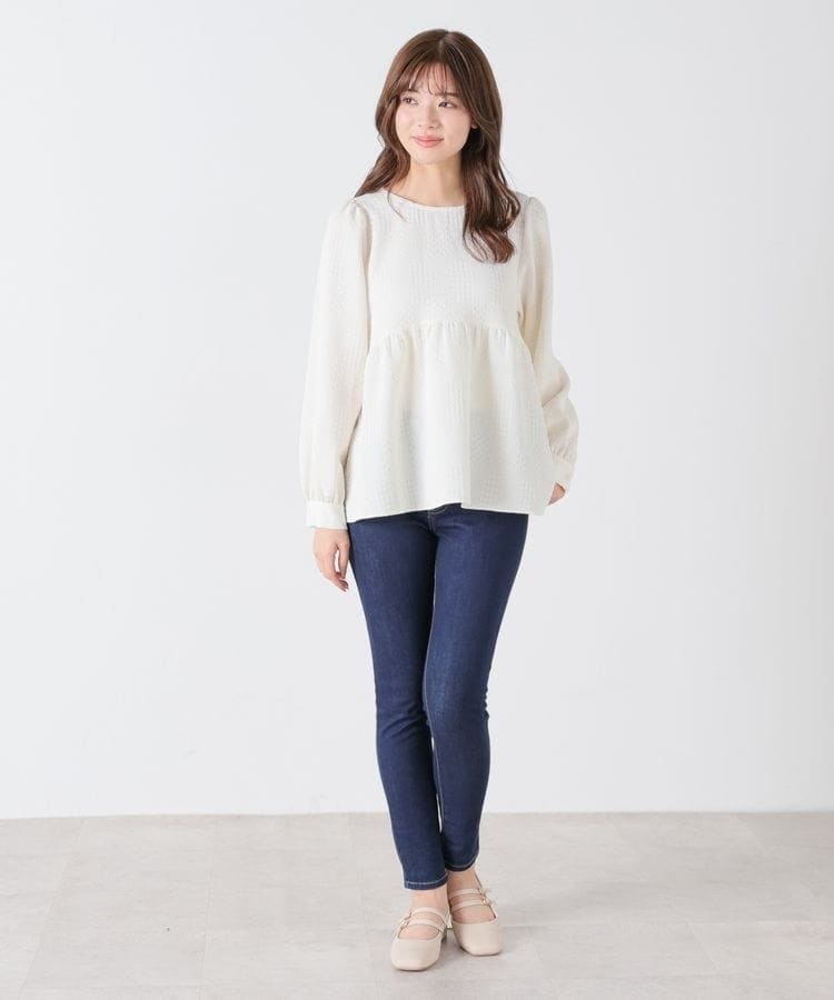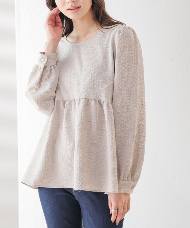 高めの切り替え位置からふんわり広がるペプラムシルエットで、体型カバーも叶うデザイン。