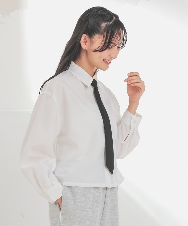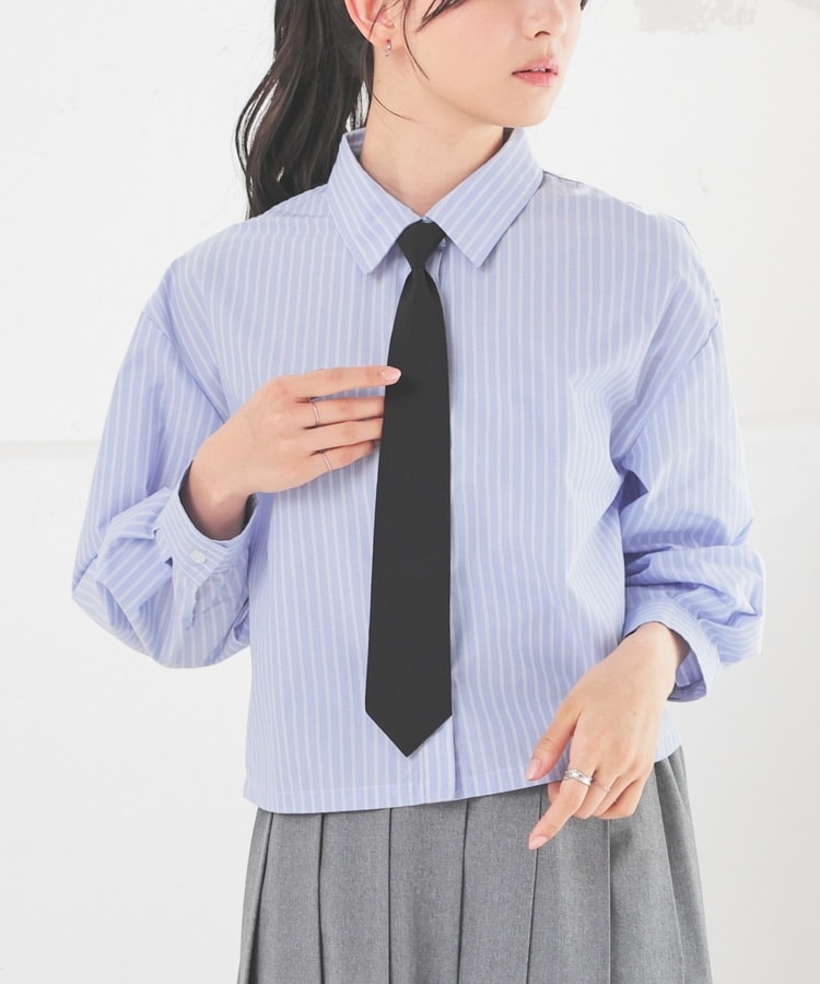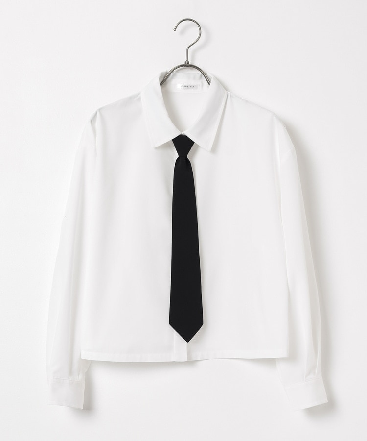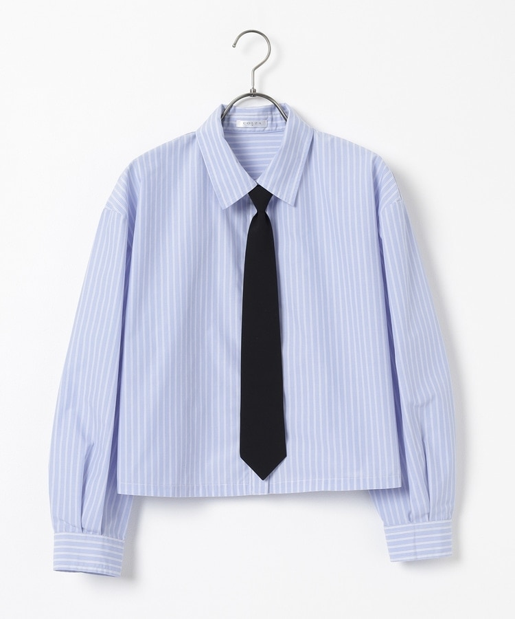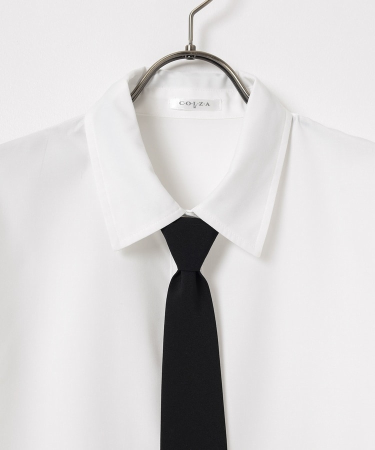 取り外して着こなしのアレンジが楽しめる、共布のネクタイ付き。