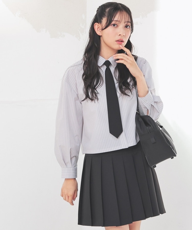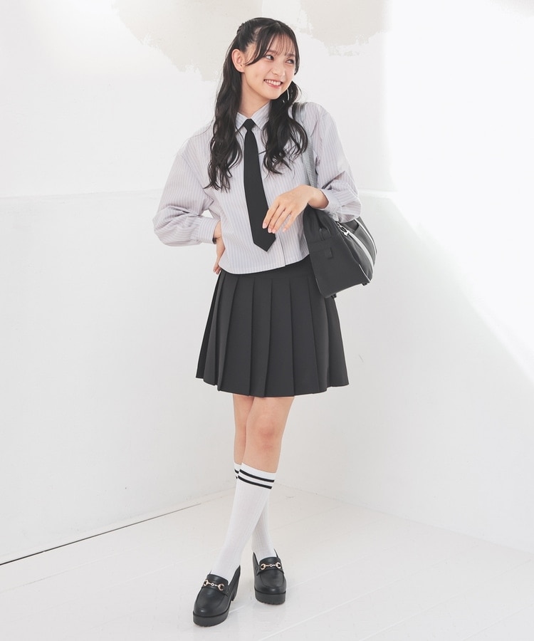 ミニプリーツスカートを合わせたスクールガール風のスタイリングにも活躍。