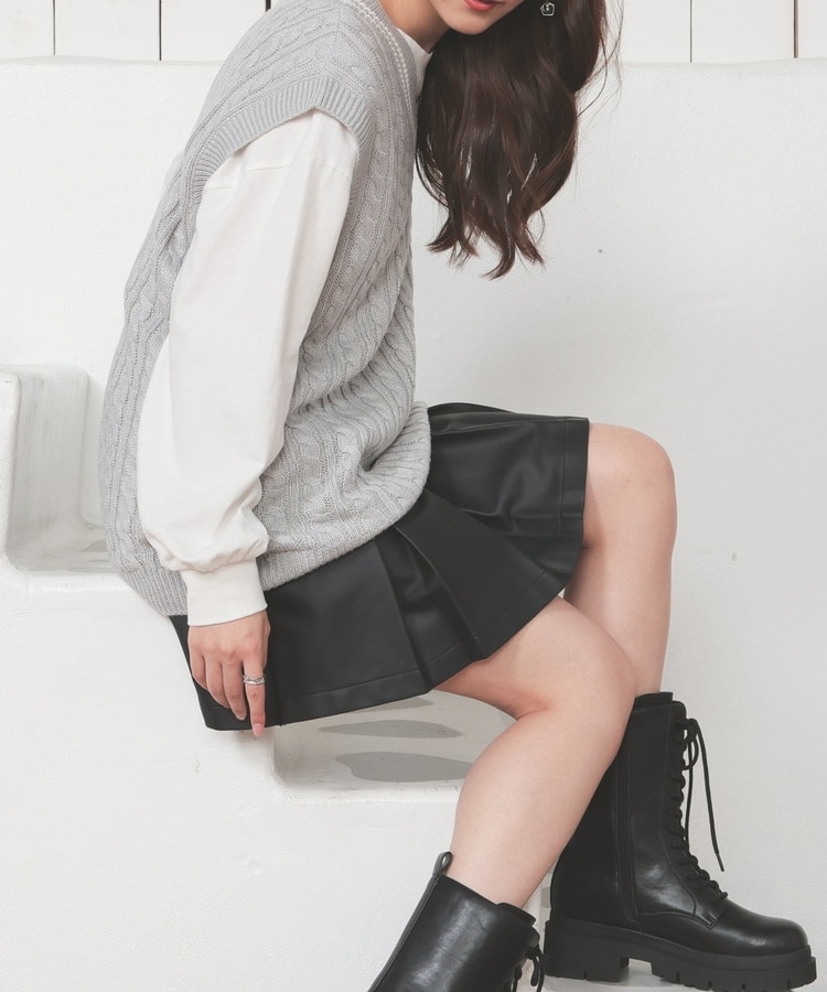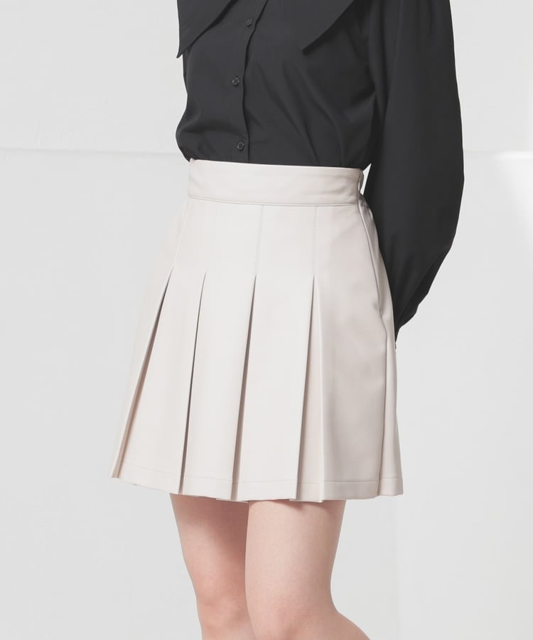 プリーツ上部をステッチで押さえた、広がりすぎないスッキリ見えシルエット。
