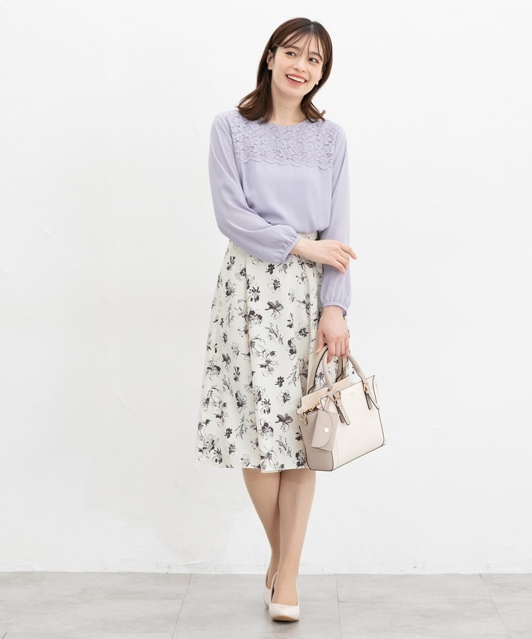アイボリー花柄 / モデル:165cm / 着用サイズM