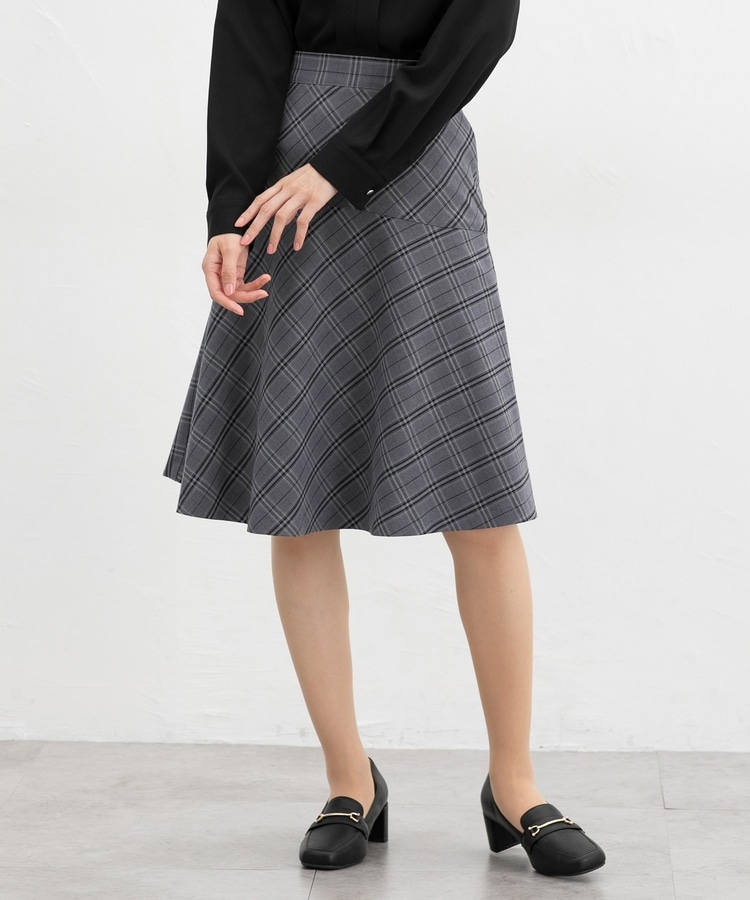 広がりすぎない、程よいフレアシルエットの上品なひざ丈デザイン。