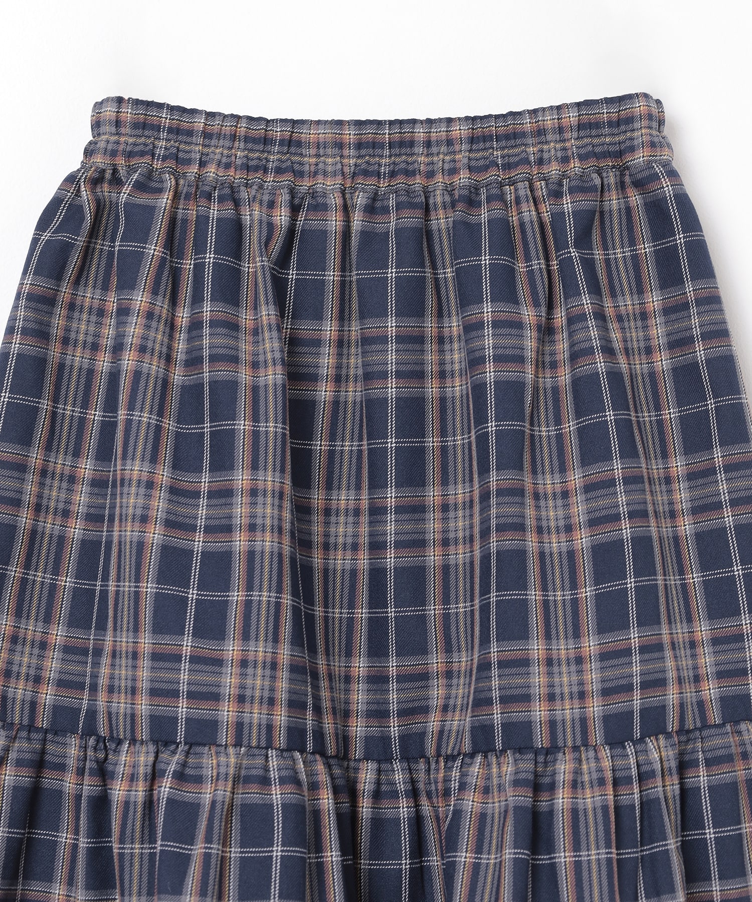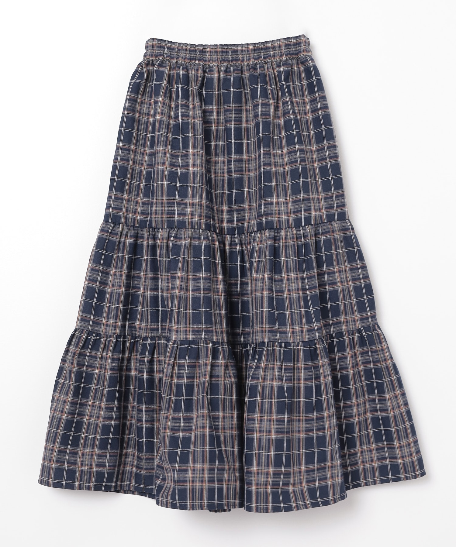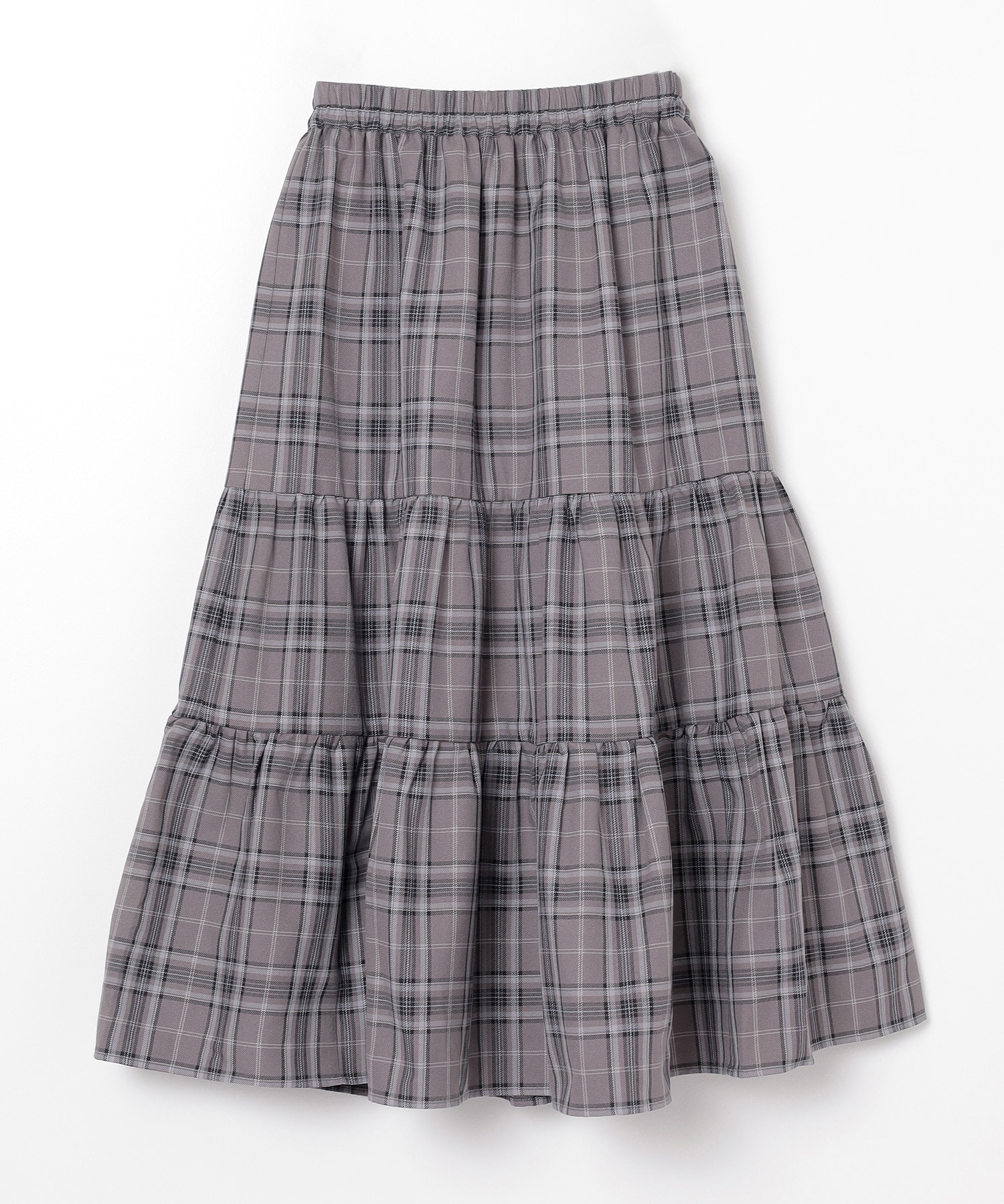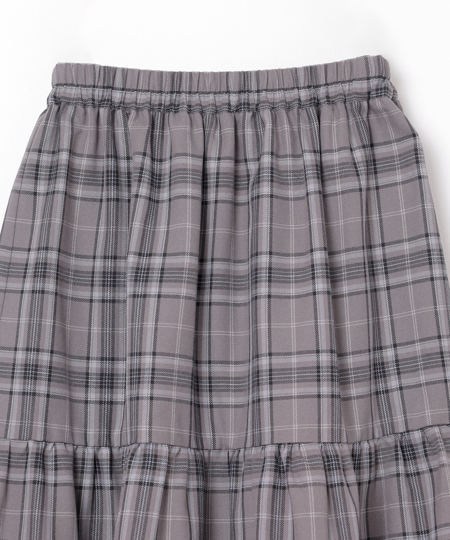 ふんわり広がるボリュームたっぷりのティアードシルエットとチェック柄がコーデの主役になるデザイン。