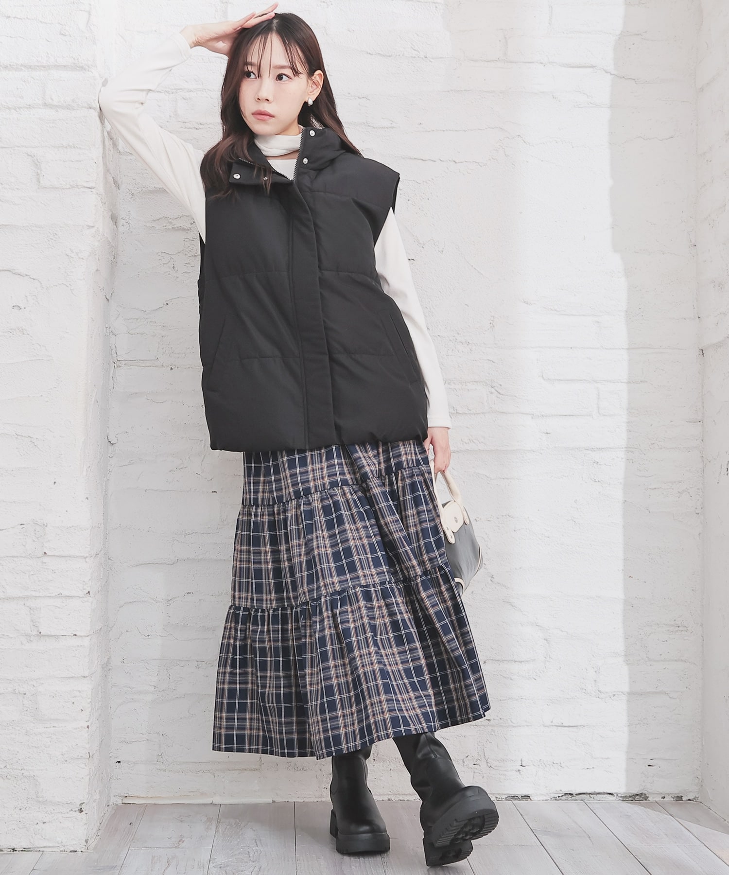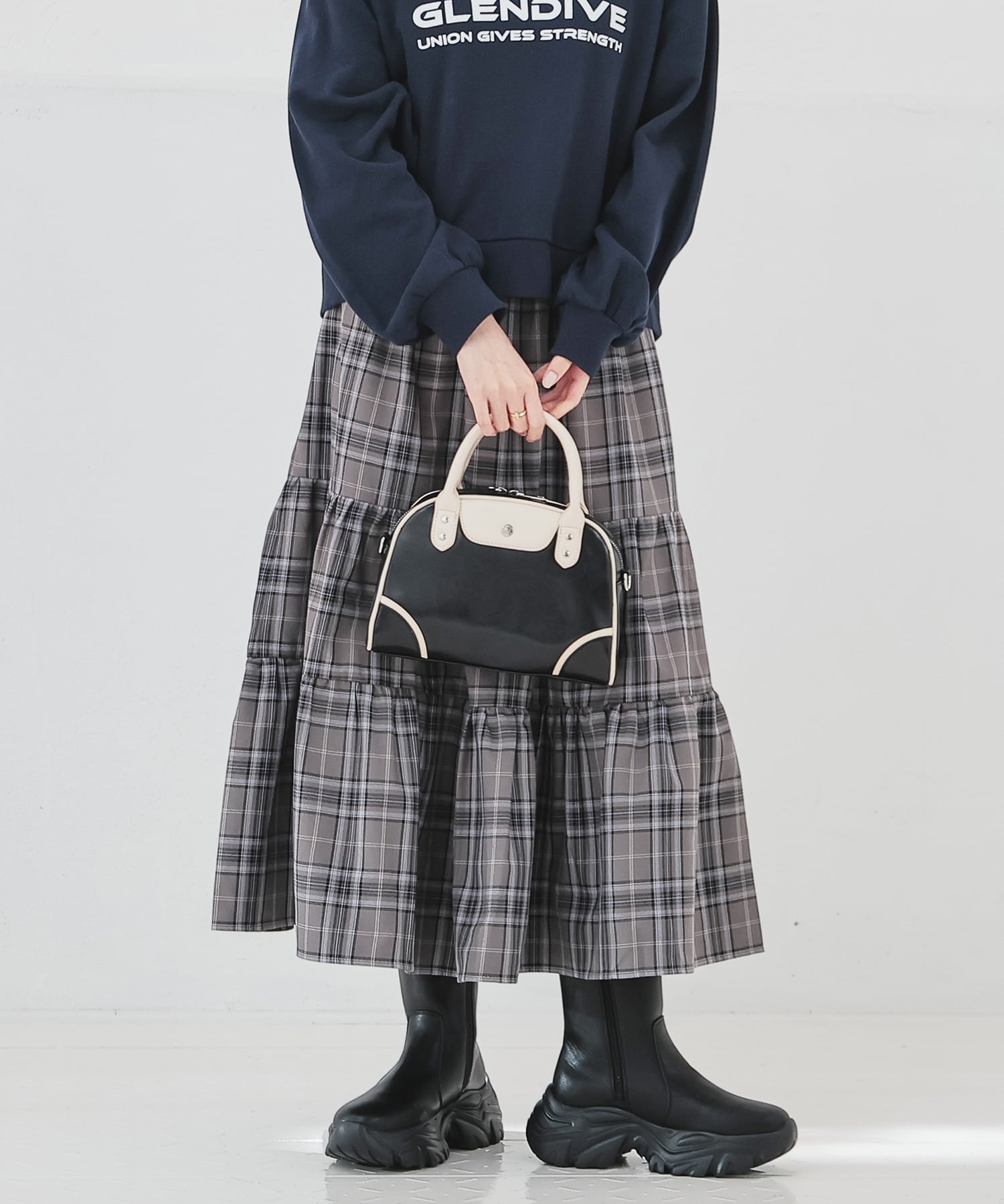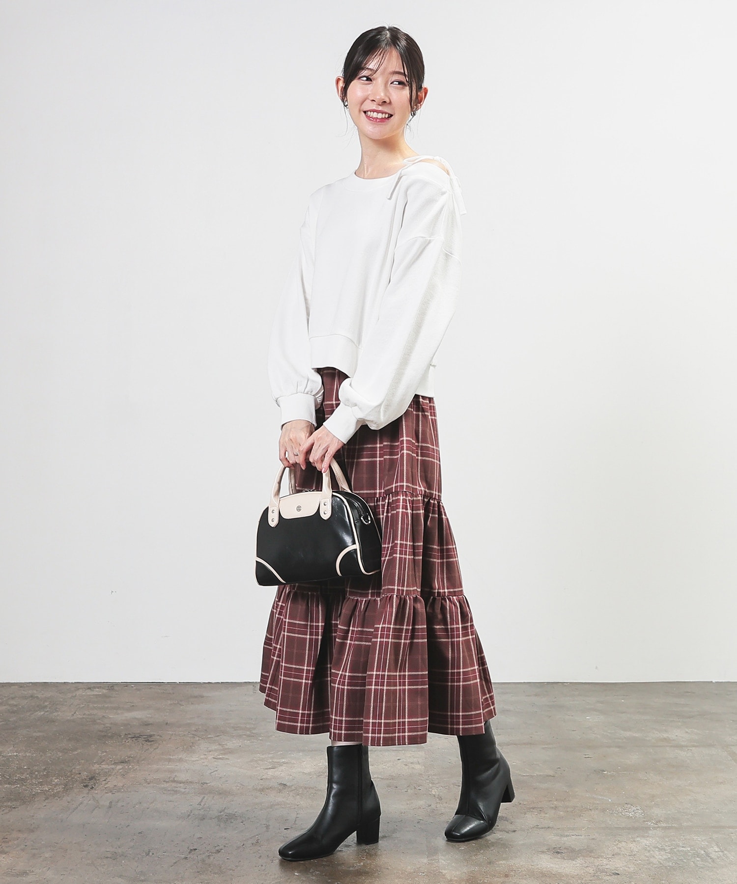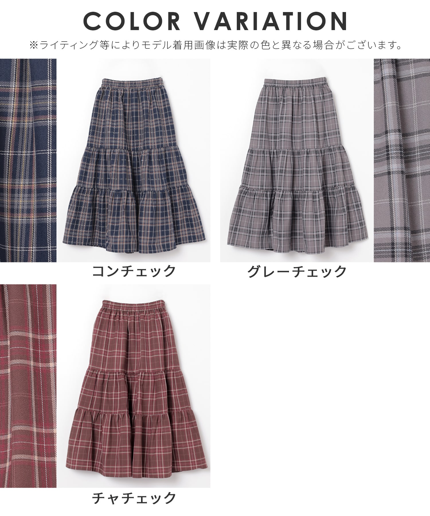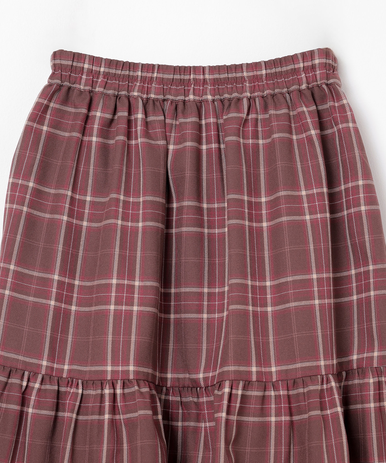 ふんわり広がるボリュームたっぷりのティアードシルエットとチェック柄がコーデの主役になるデザイン。