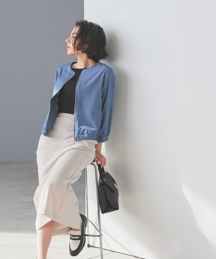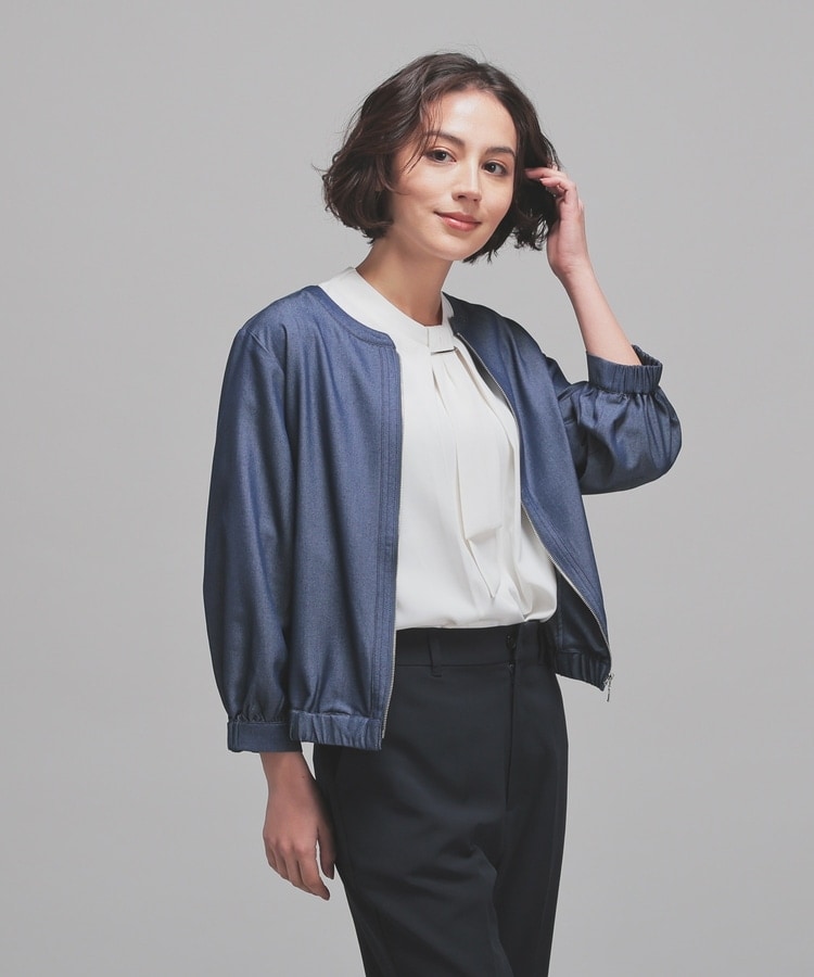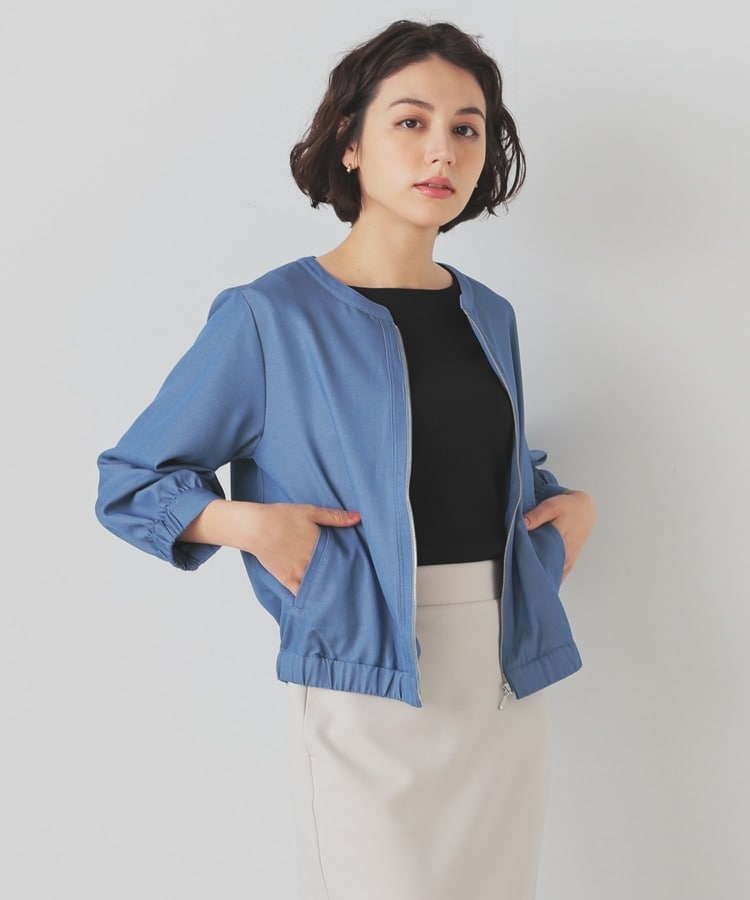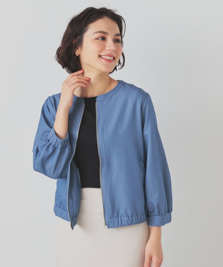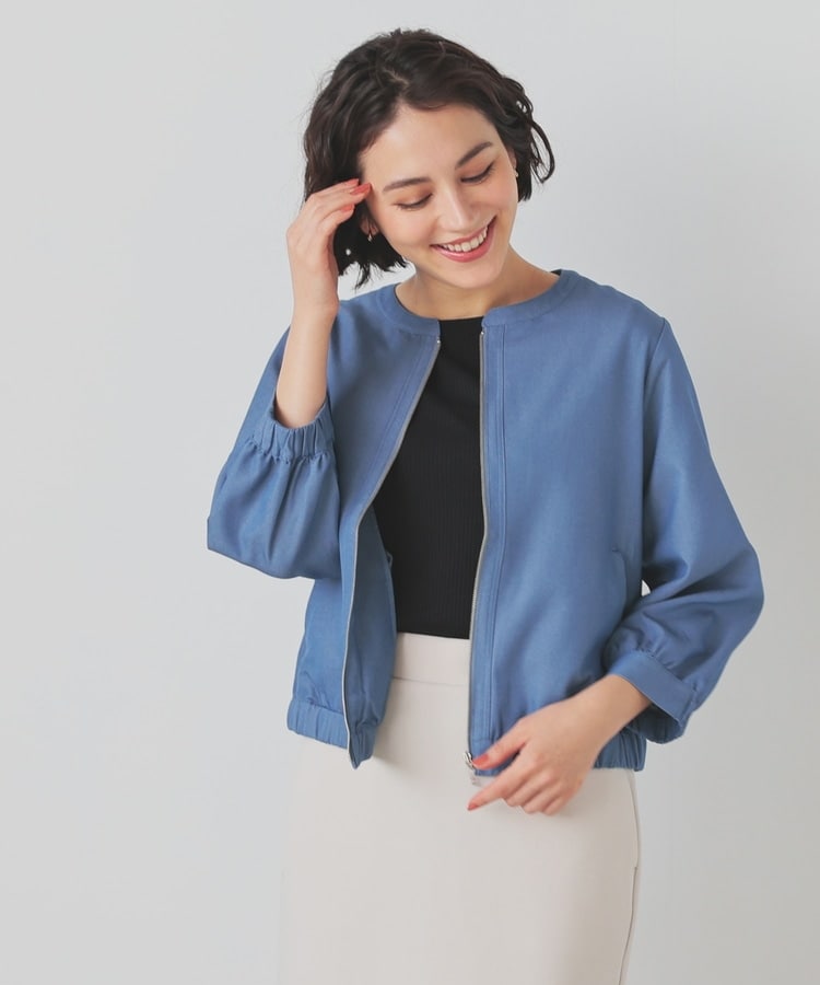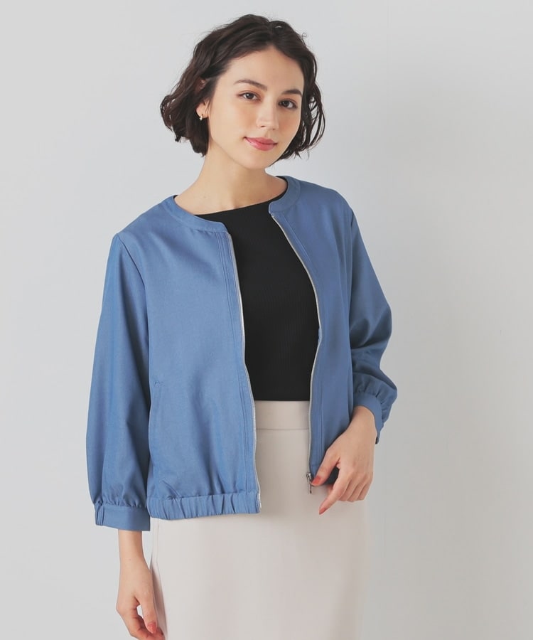 8分袖ノーカラーブルゾン