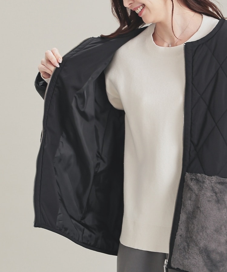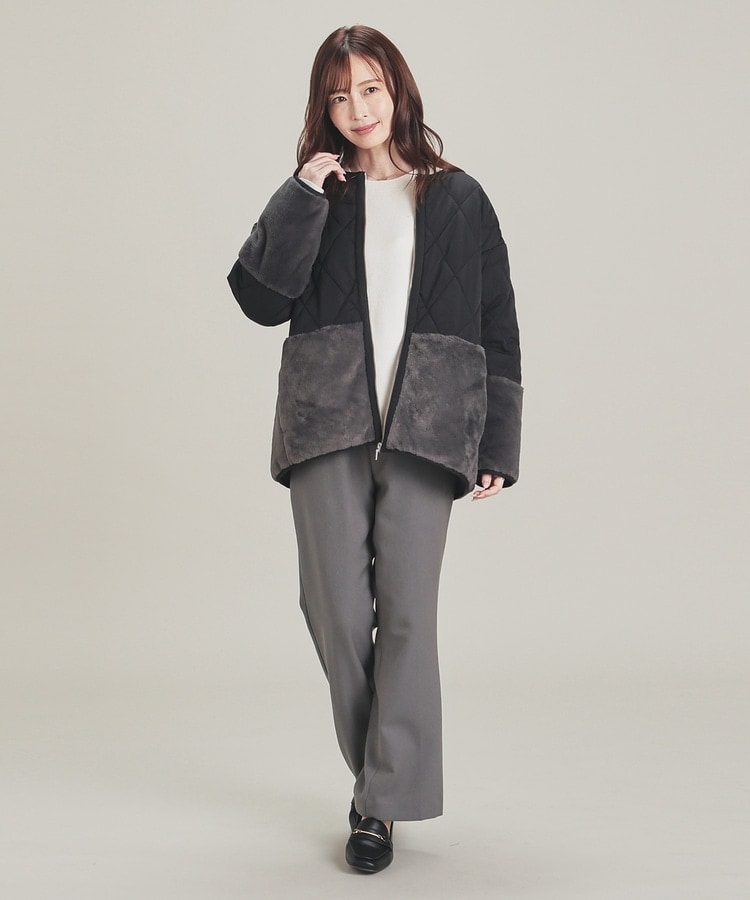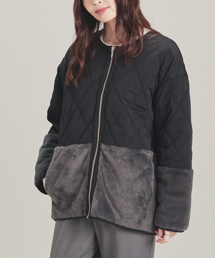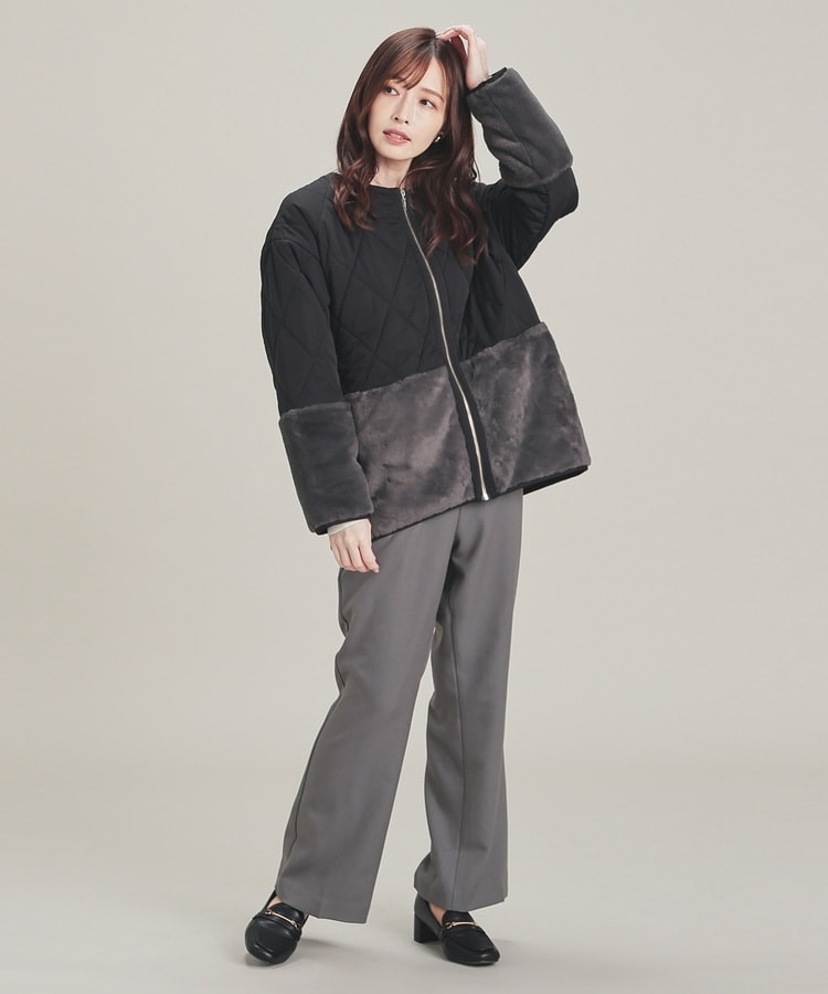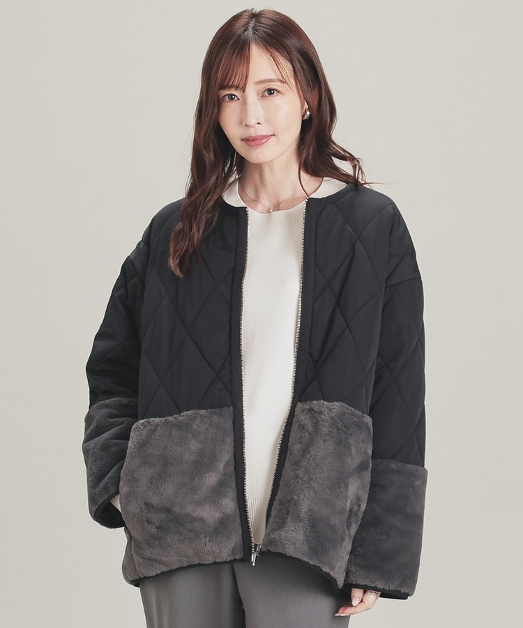 袖口と裾を肌触りの良いフェイクファーで切り替えた、存在感がありながら上品なデザイン。