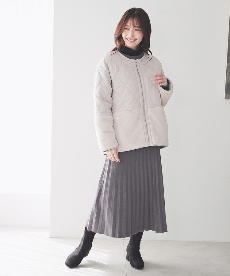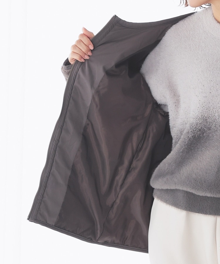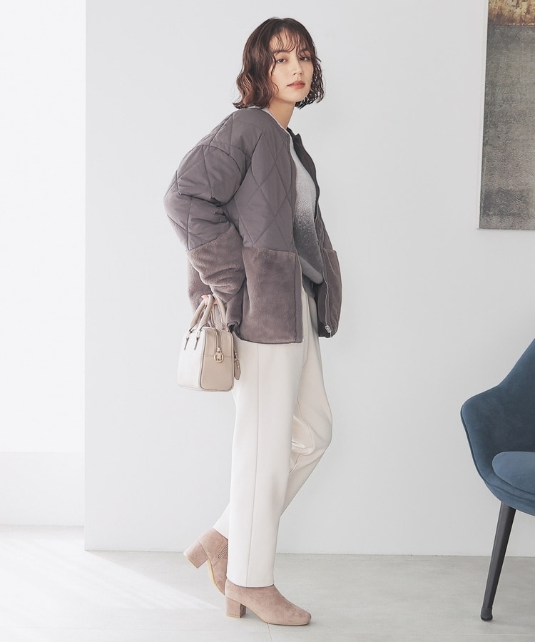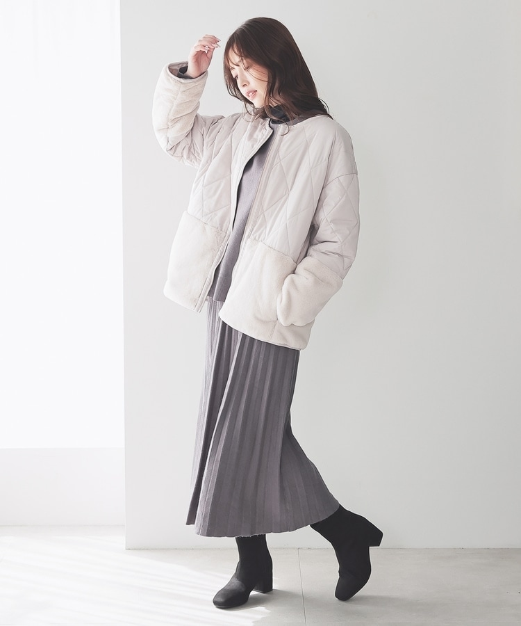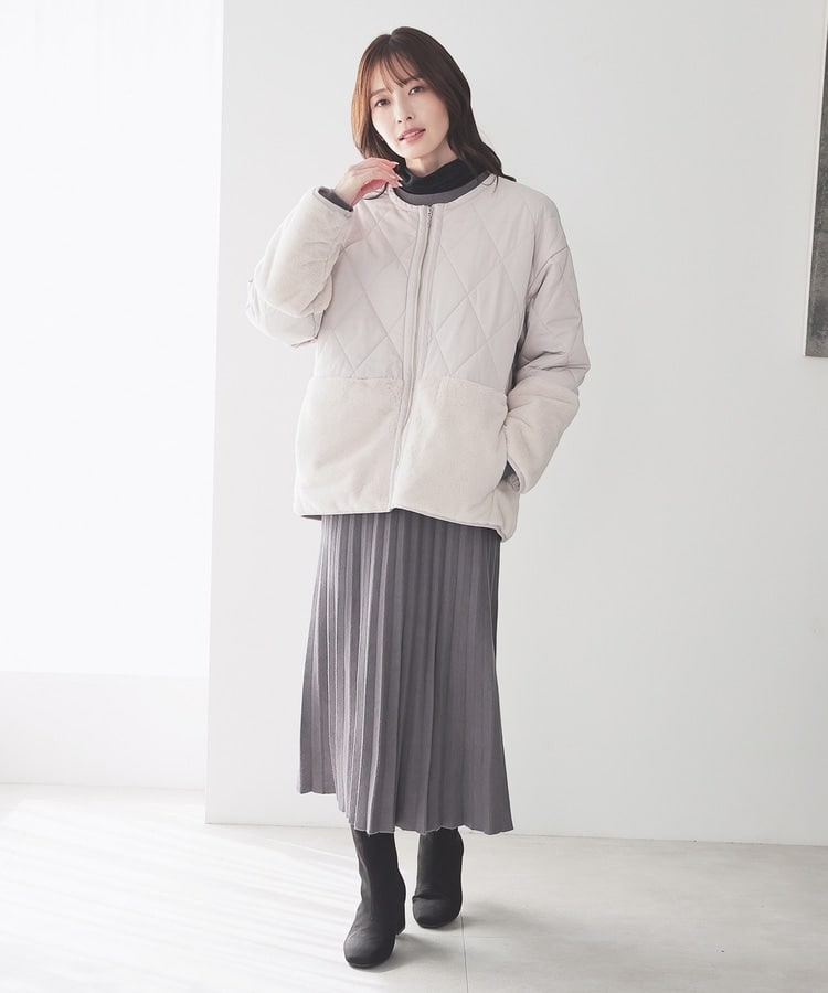 袖口と裾を肌触りの良いフェイクファーで切り替えた、存在感がありながら上品なデザイン。