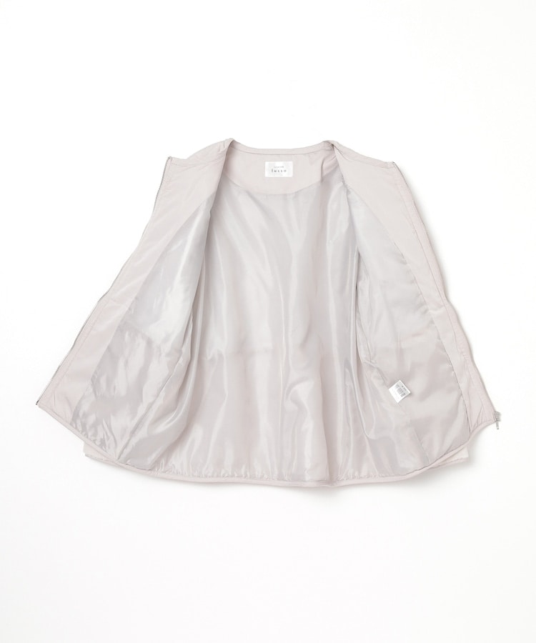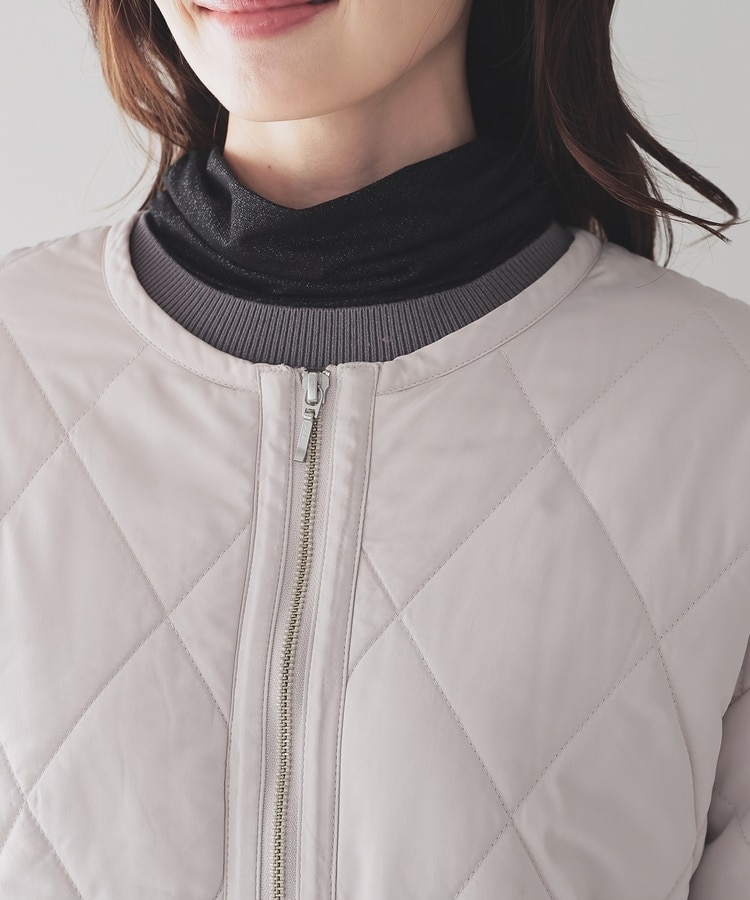 ストールやアクセサリーで首元のアレンジがしやすい、開きすぎないシンプルなノーカラー。