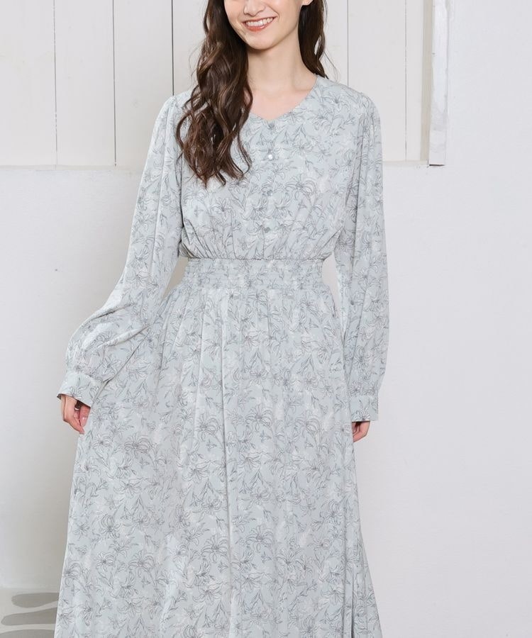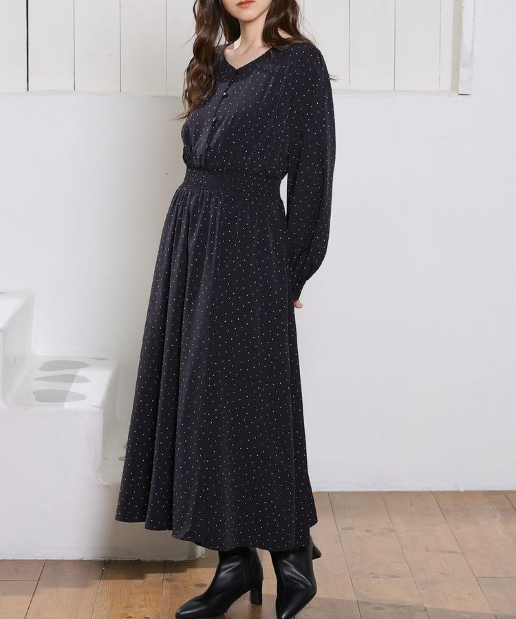 ふんわり広がるフレアラインにウエストのゴムシャーリングで、スタイルアップも叶うメリハリシルエット。