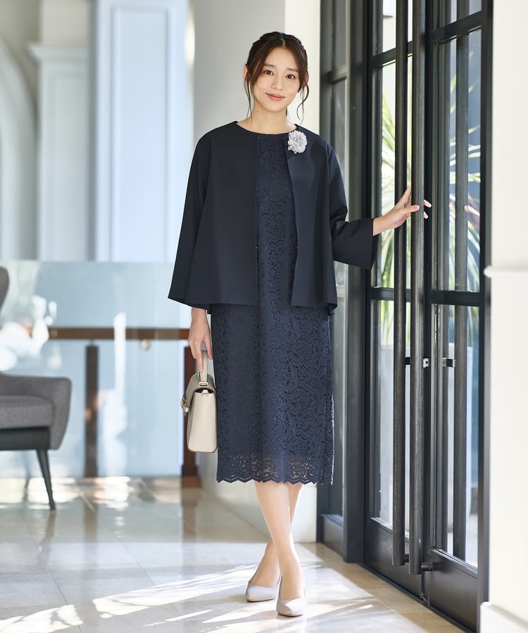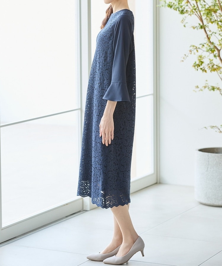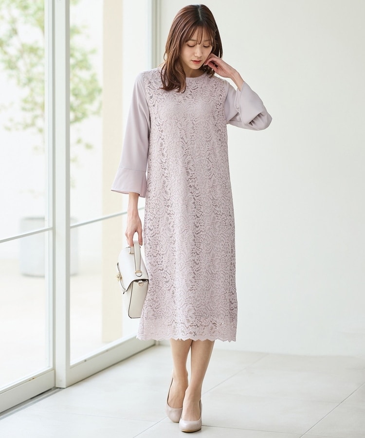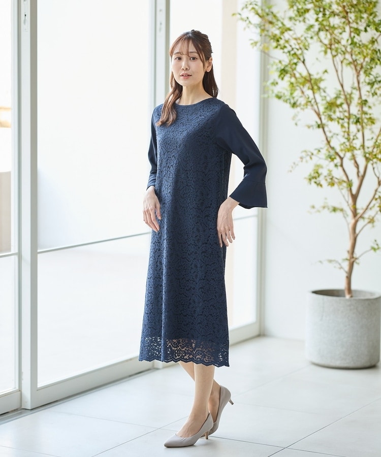 繊細な花柄レースが大人の華やかさを演出するデザイン。