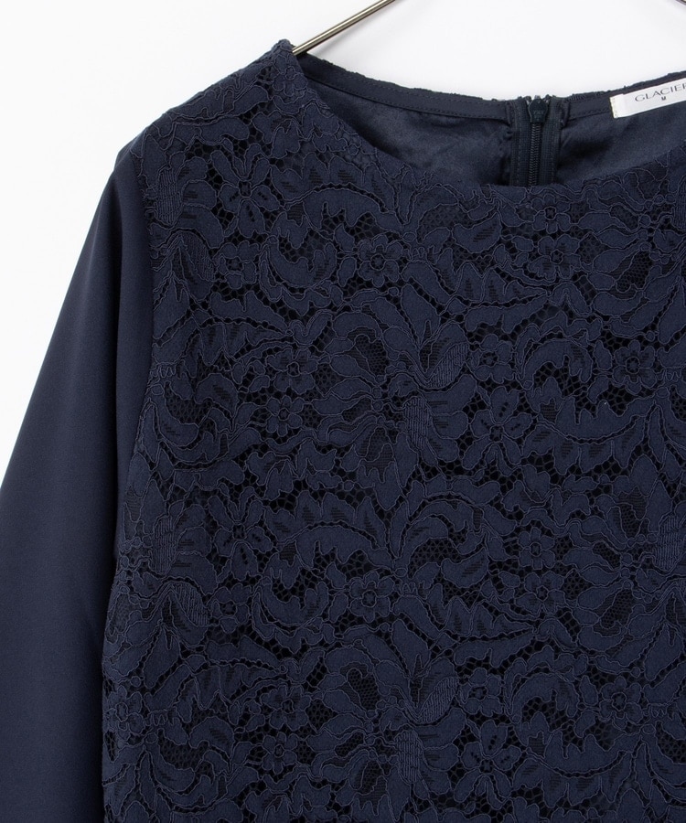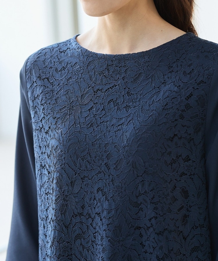 身頃は立体感のある、上品な綿・レーヨン混レース素材。
