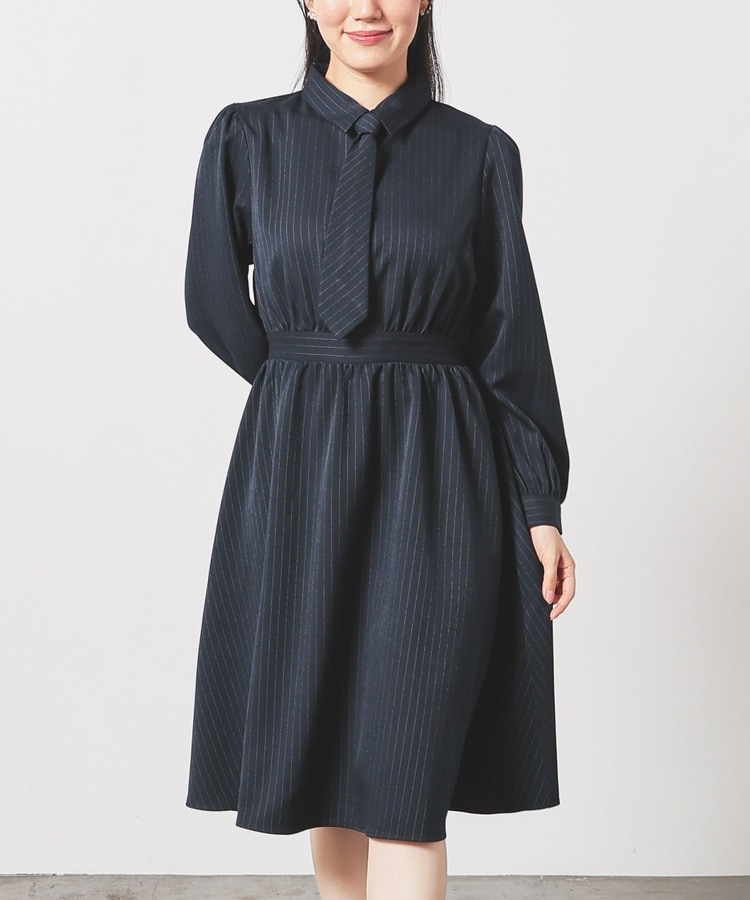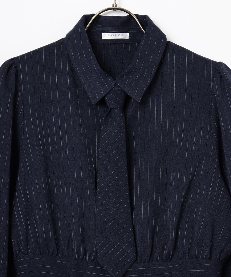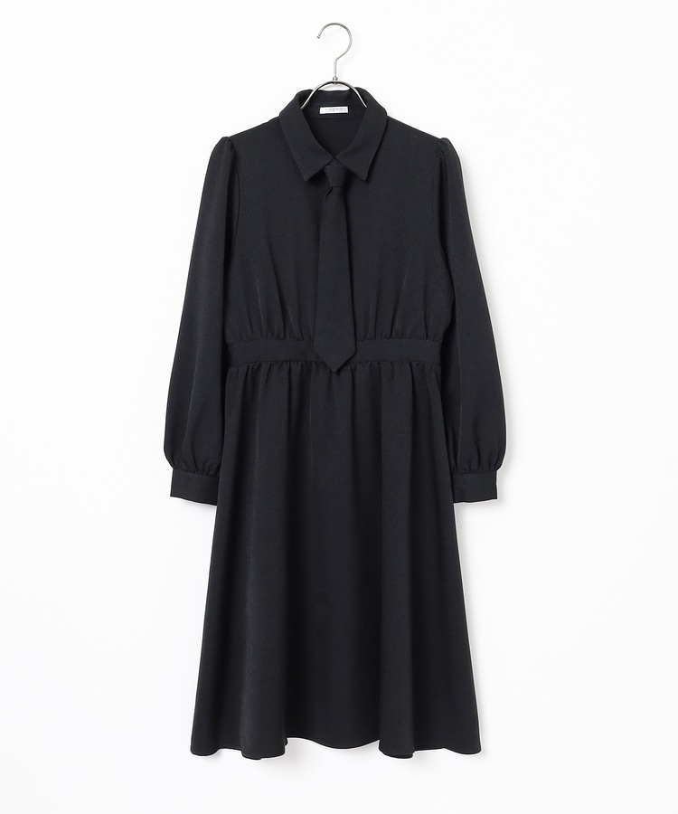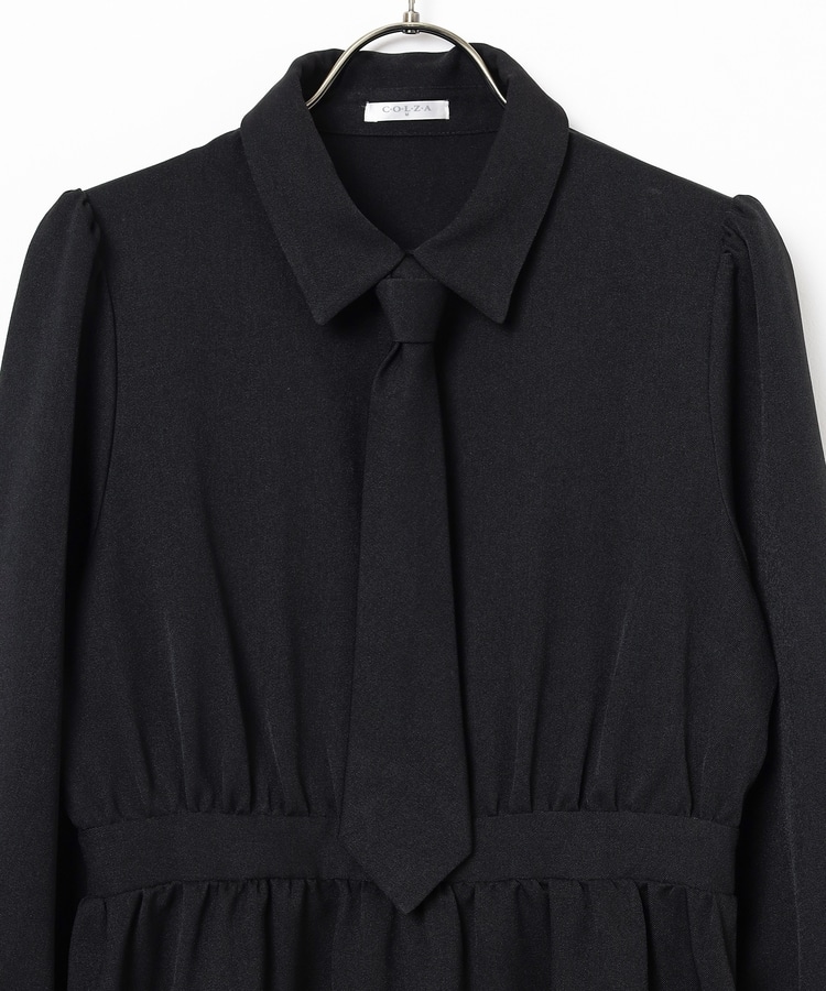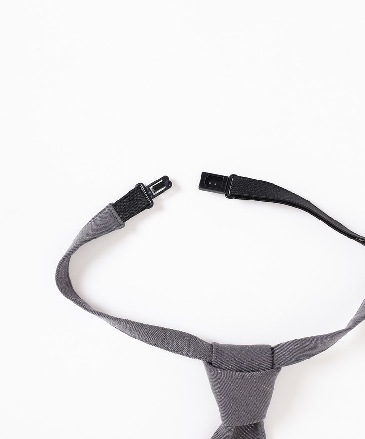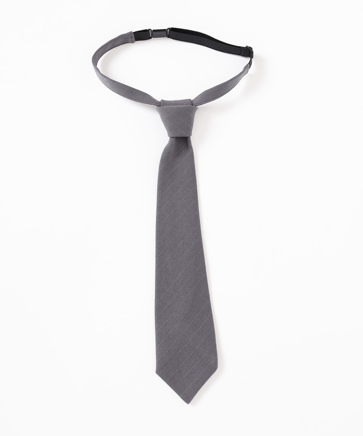ネクタイはワンタッチプラ具で簡単に着け外しできる結び目固定タイプ。