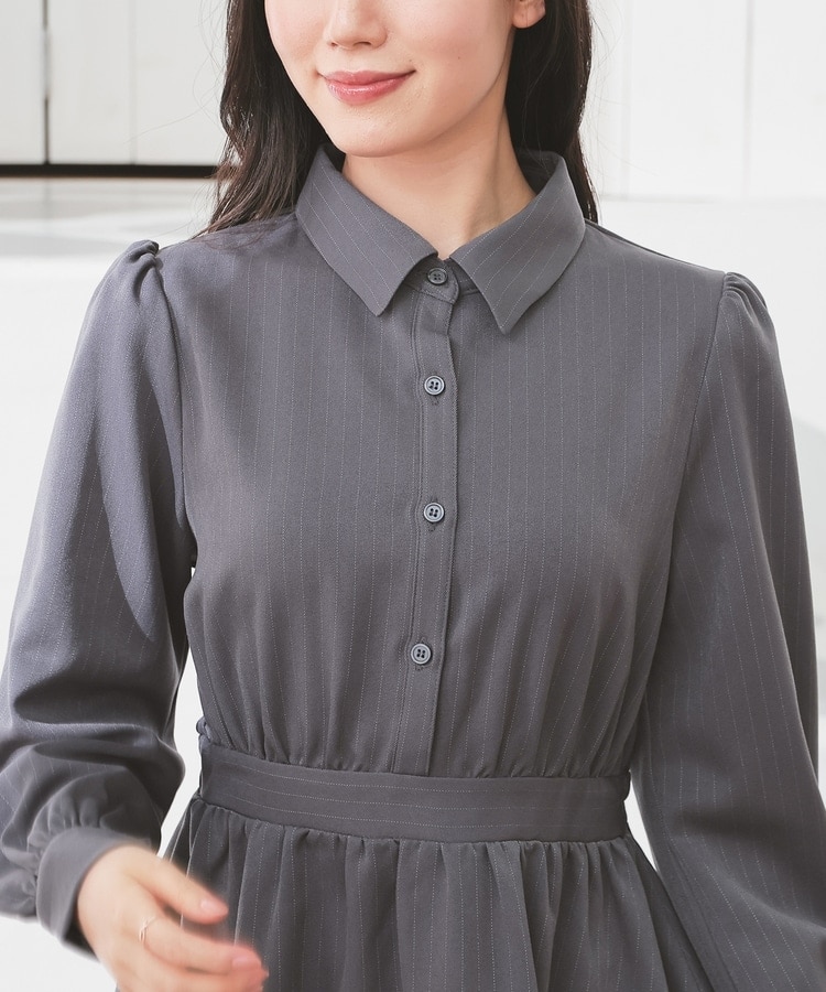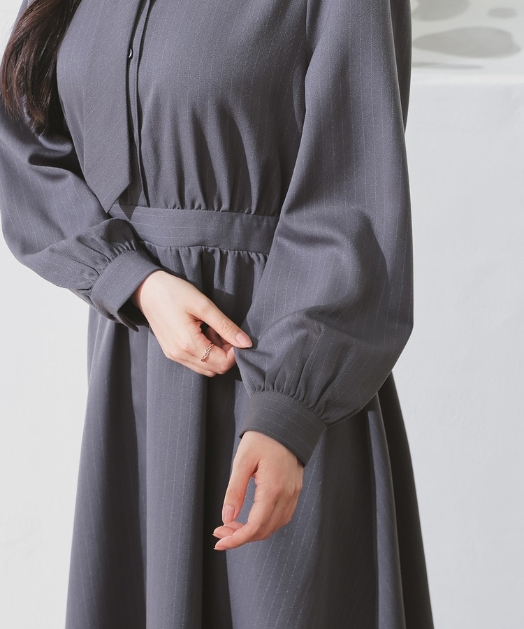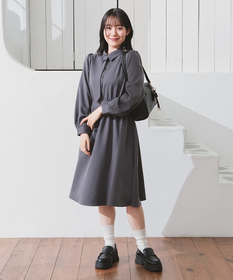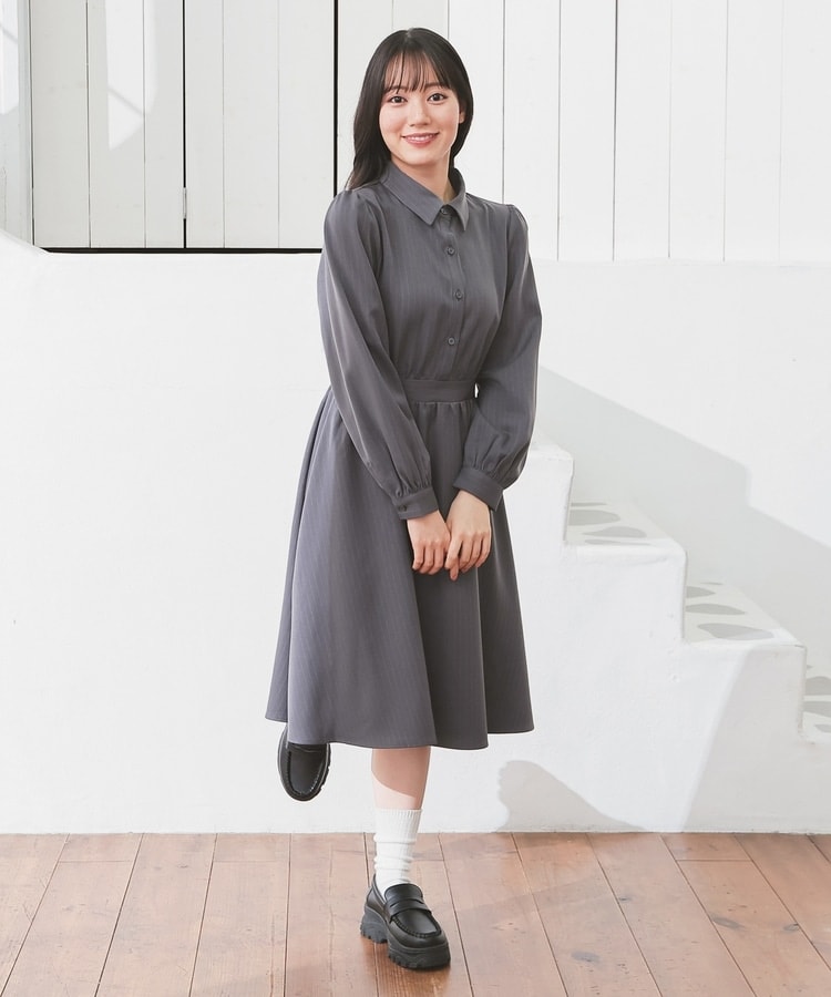 ふんわり広がるフレアシルエットとボリューム袖で、可愛らしさをプラス。