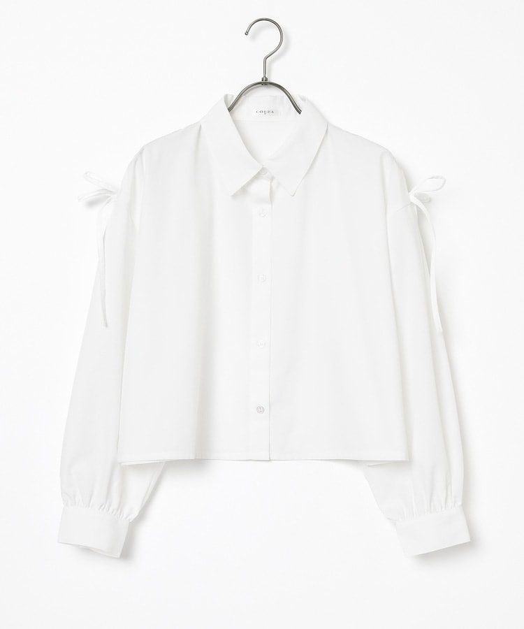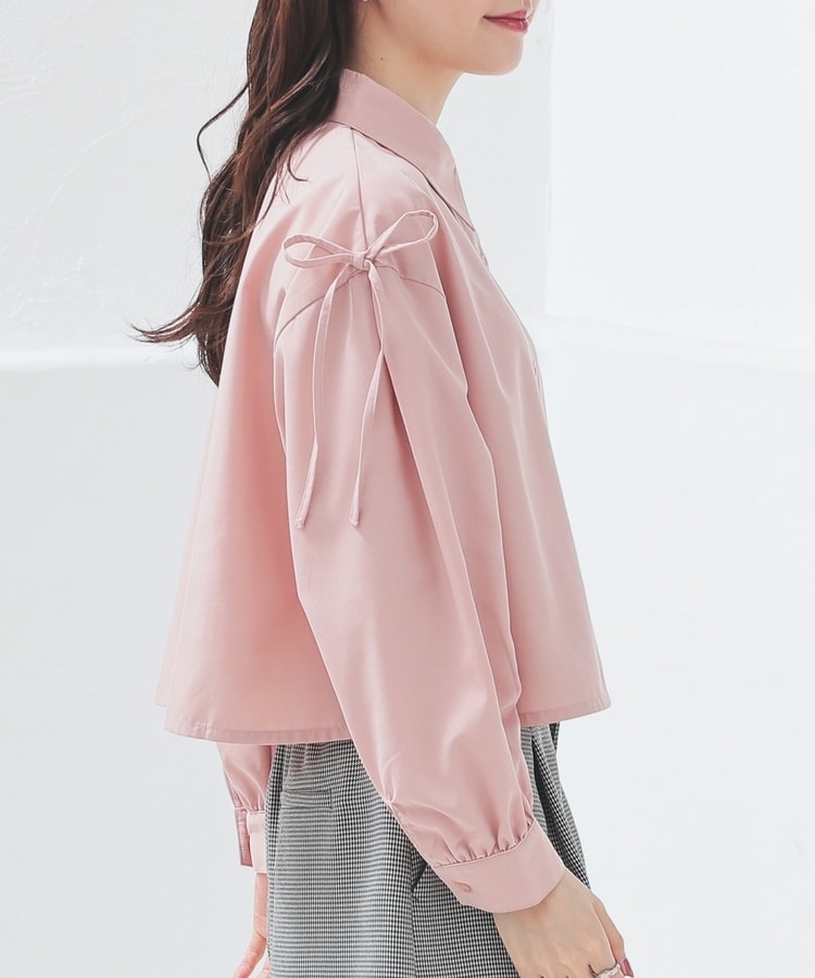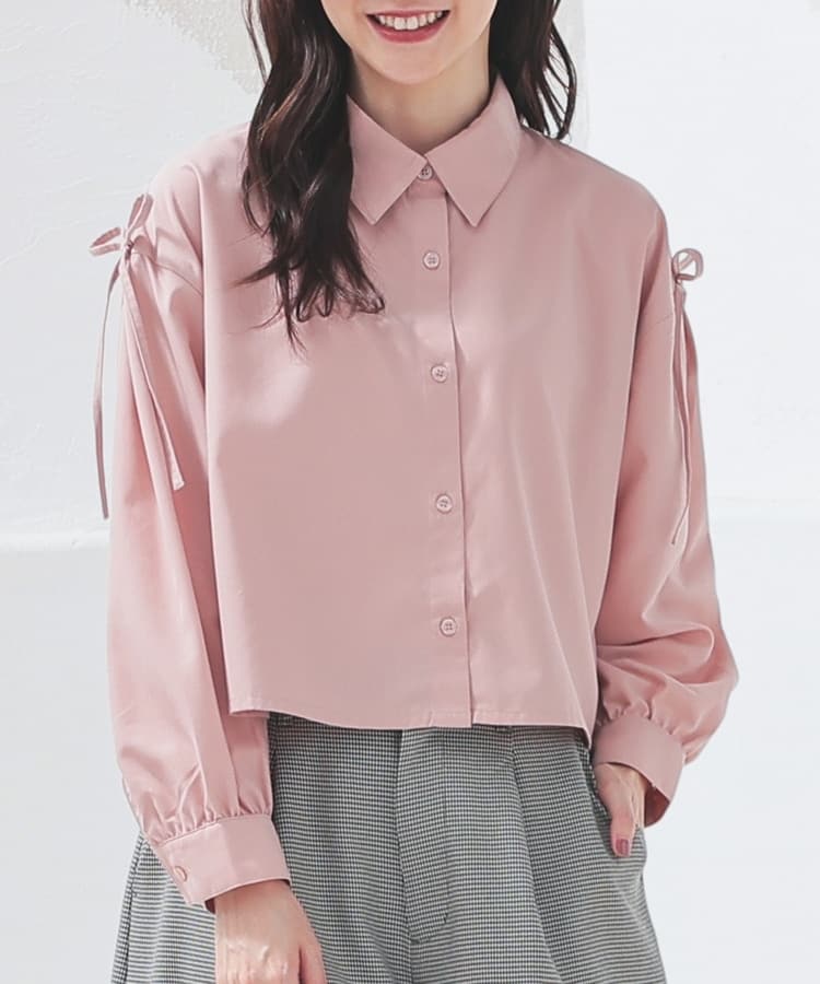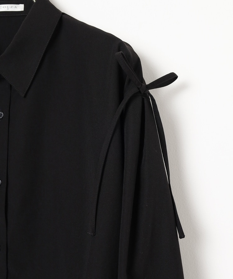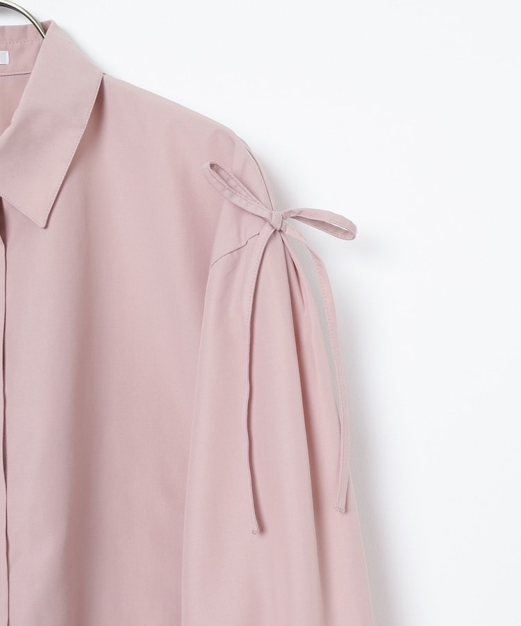 シンプルなレギュラーカラーに肩のリボンがキュートなデザイン。