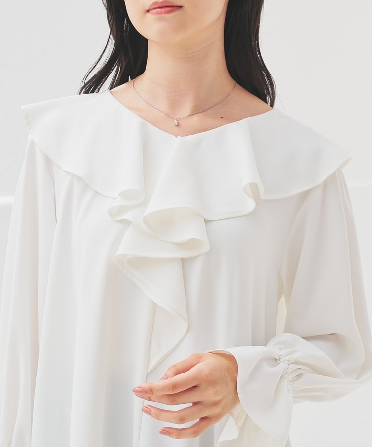 大きめのラッフルフリルがフェミニンで華やかなデザイン。
