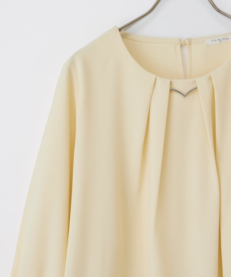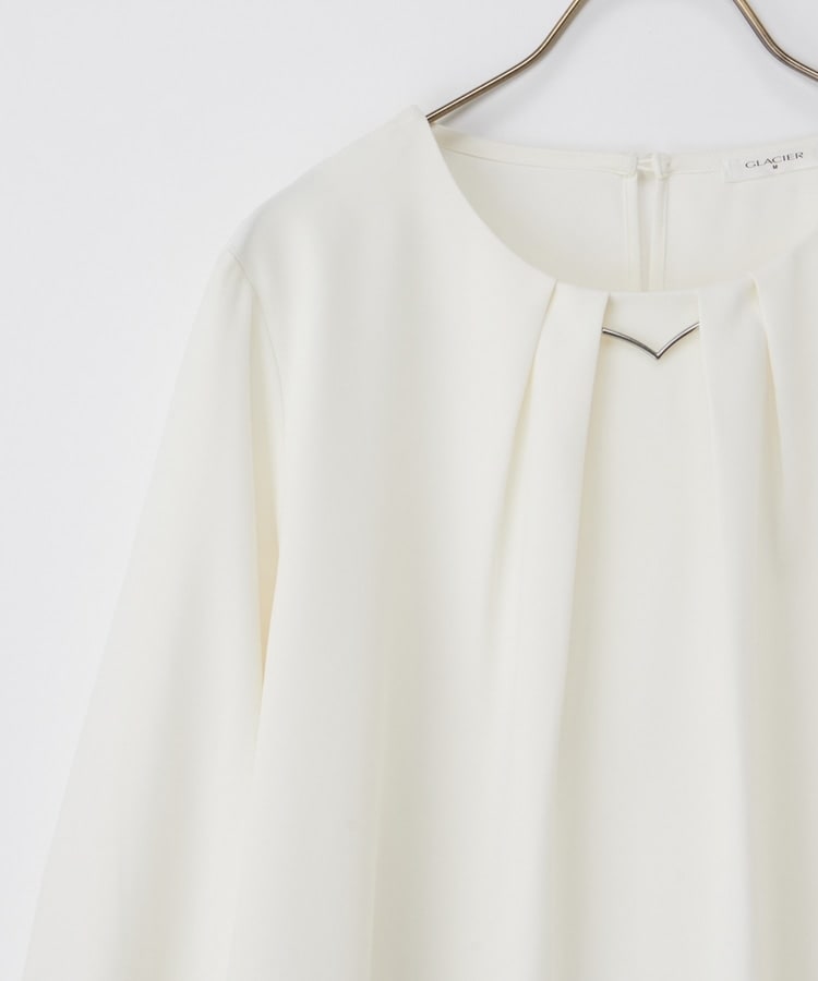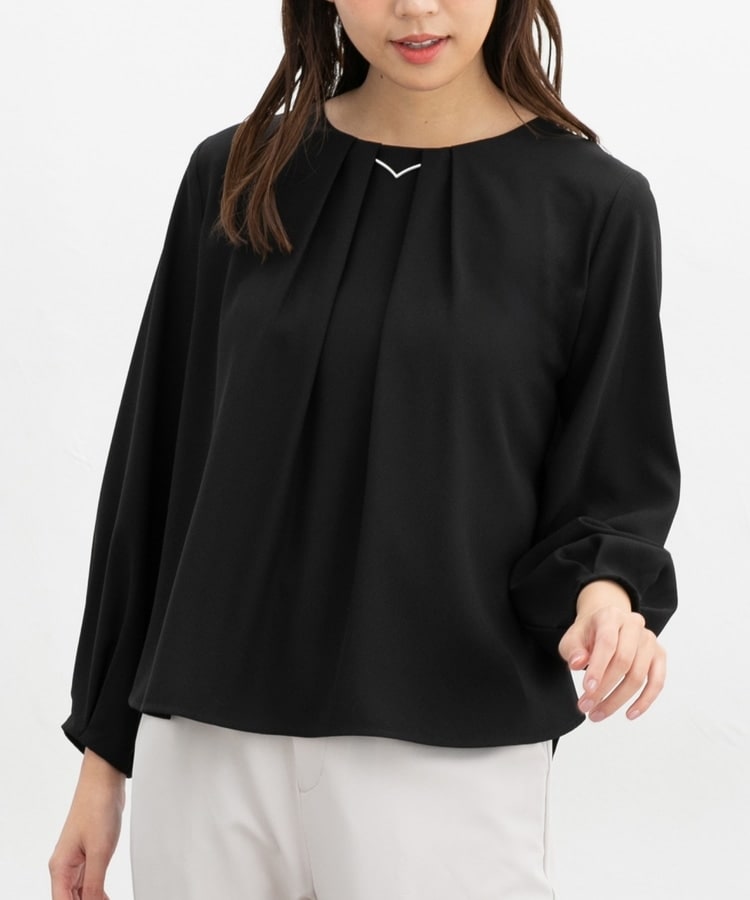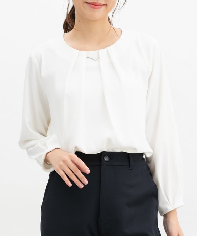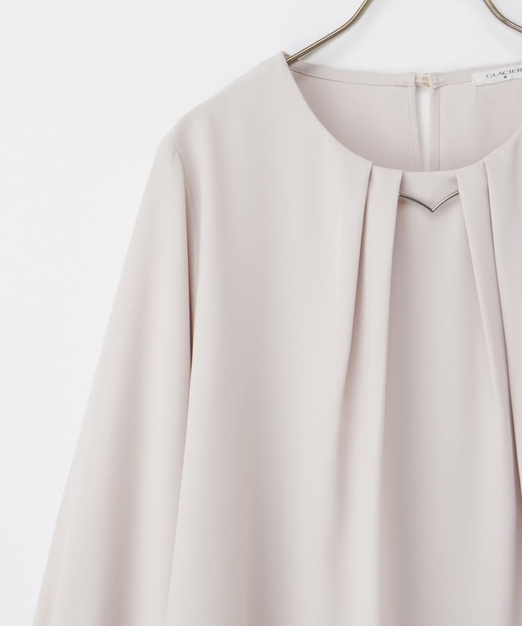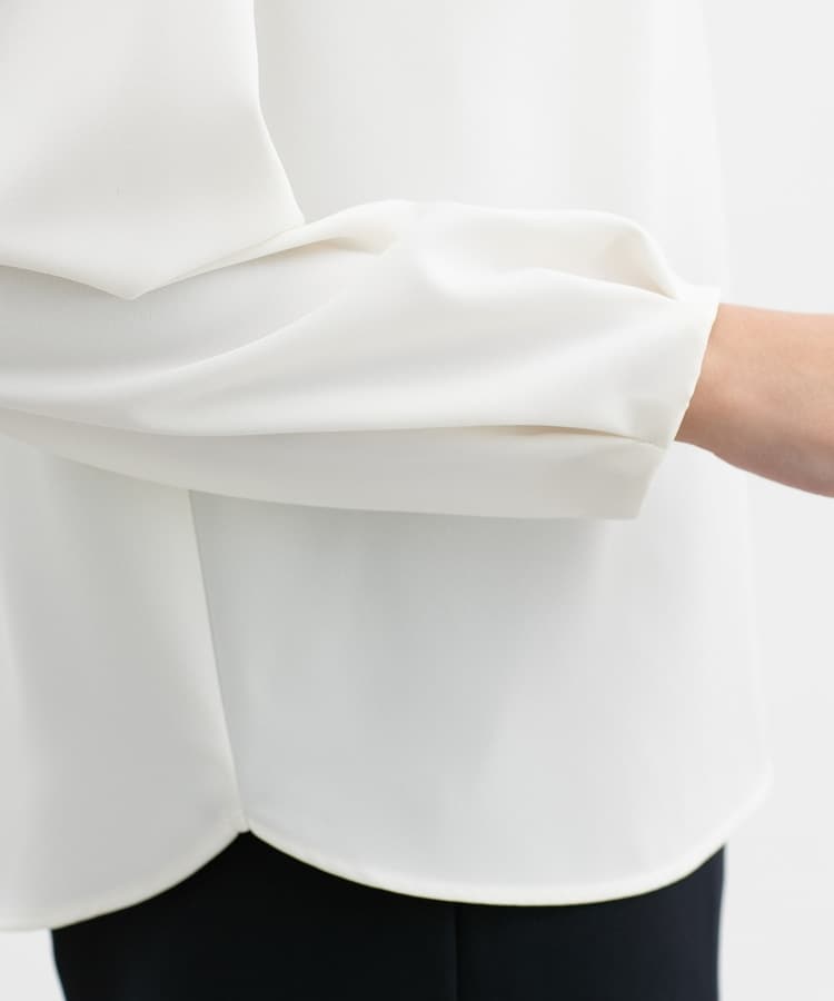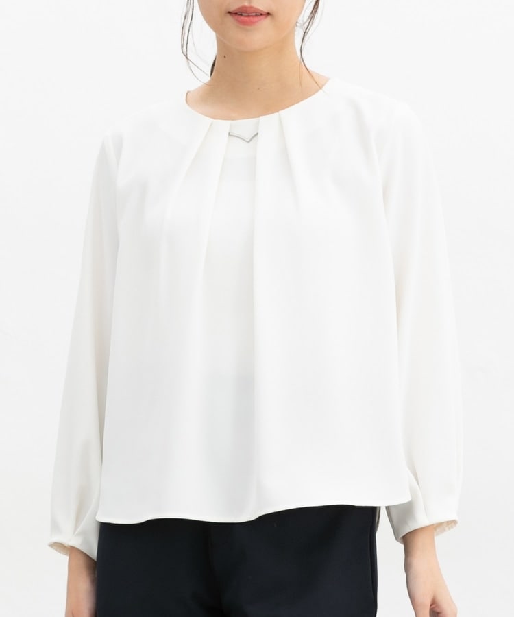 フロントや袖口にタックを入れた、立体的なふんわりフェミニンシルエット。