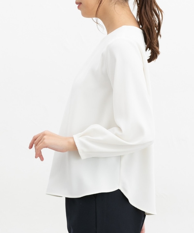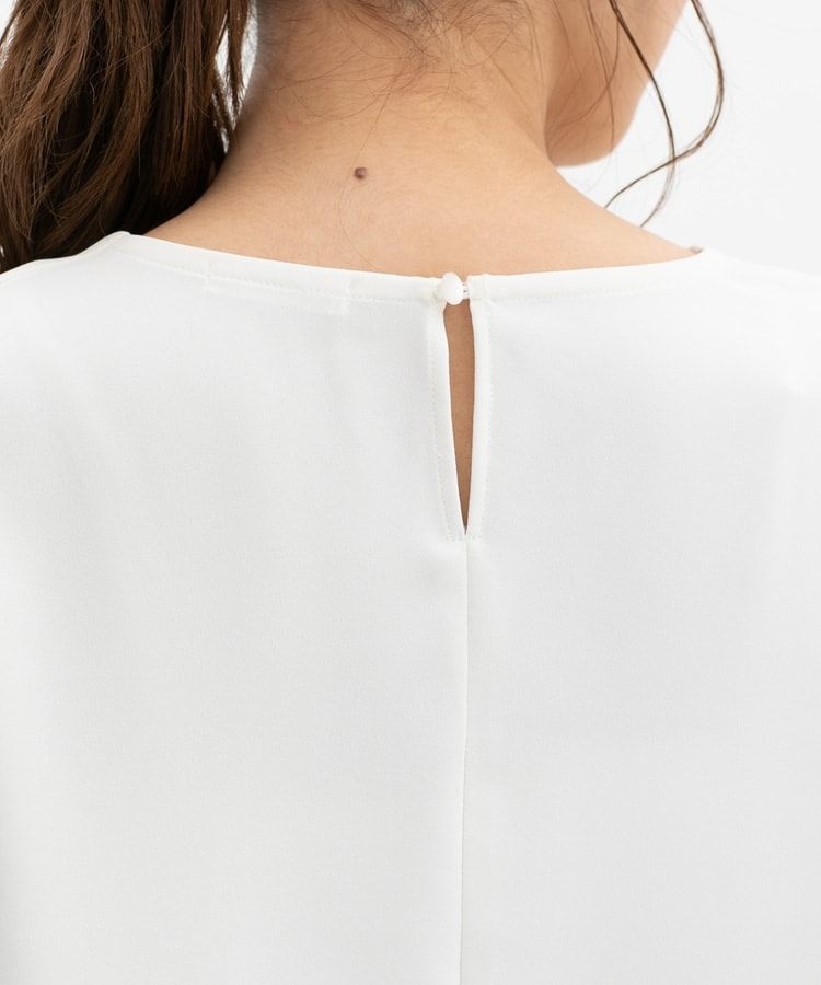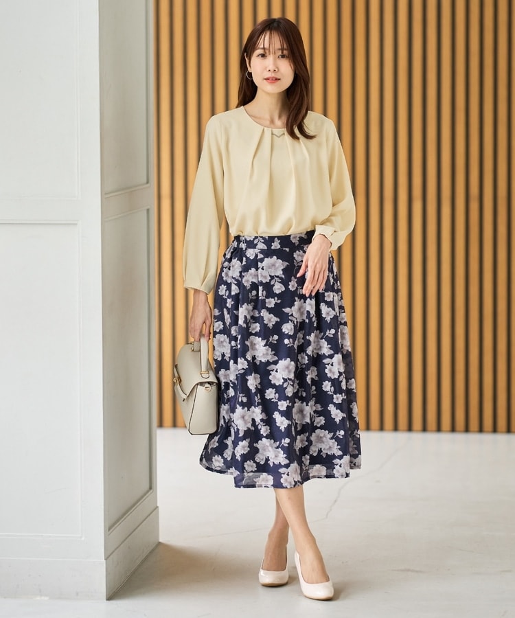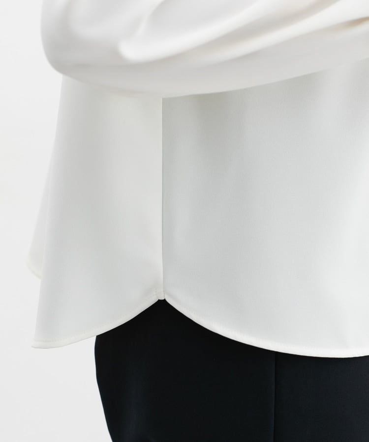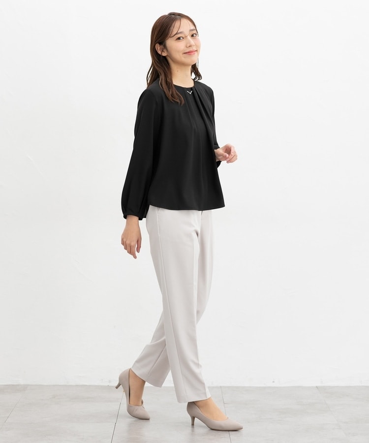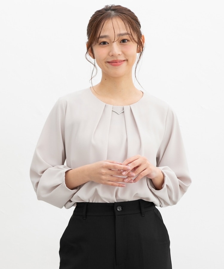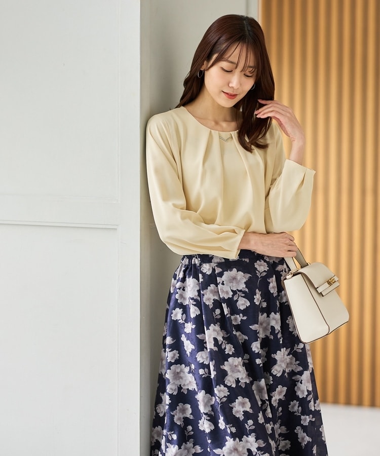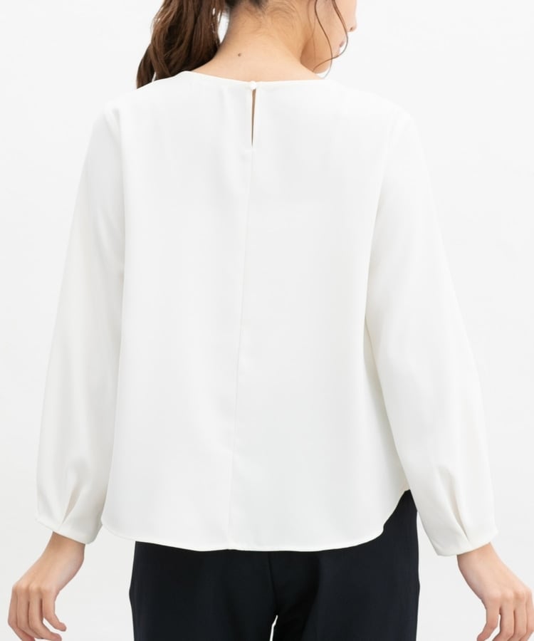 フロントや袖口にタックを入れた、立体的なふんわりフェミニンシルエット。