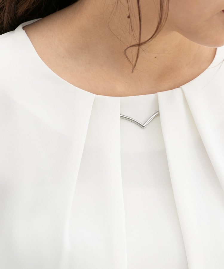 衿元をさりげなく華やかにするメタルパーツのアクセサリーは、シーンやコーデに合わせて取り外し可能。