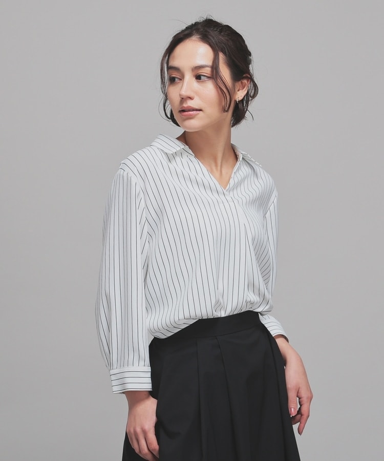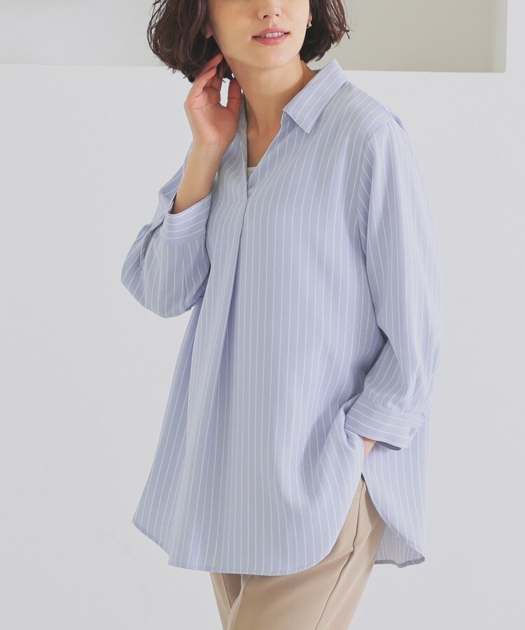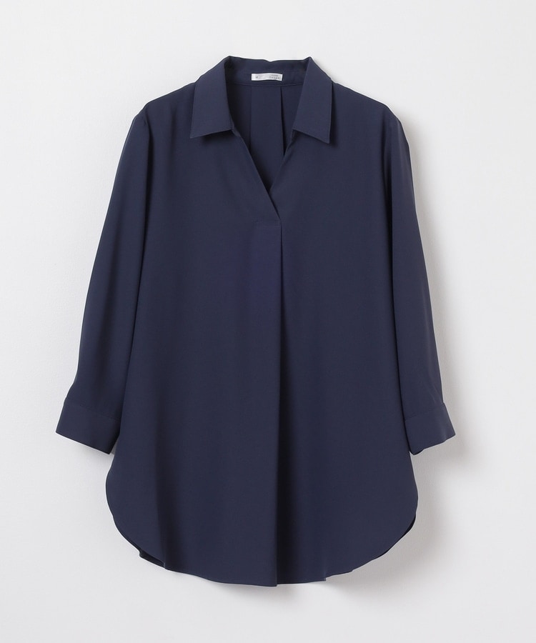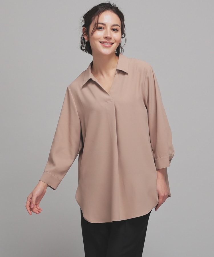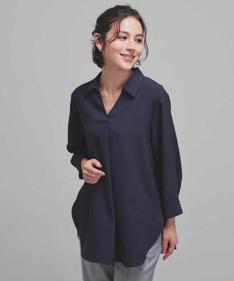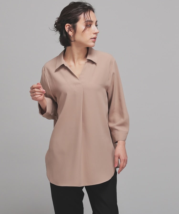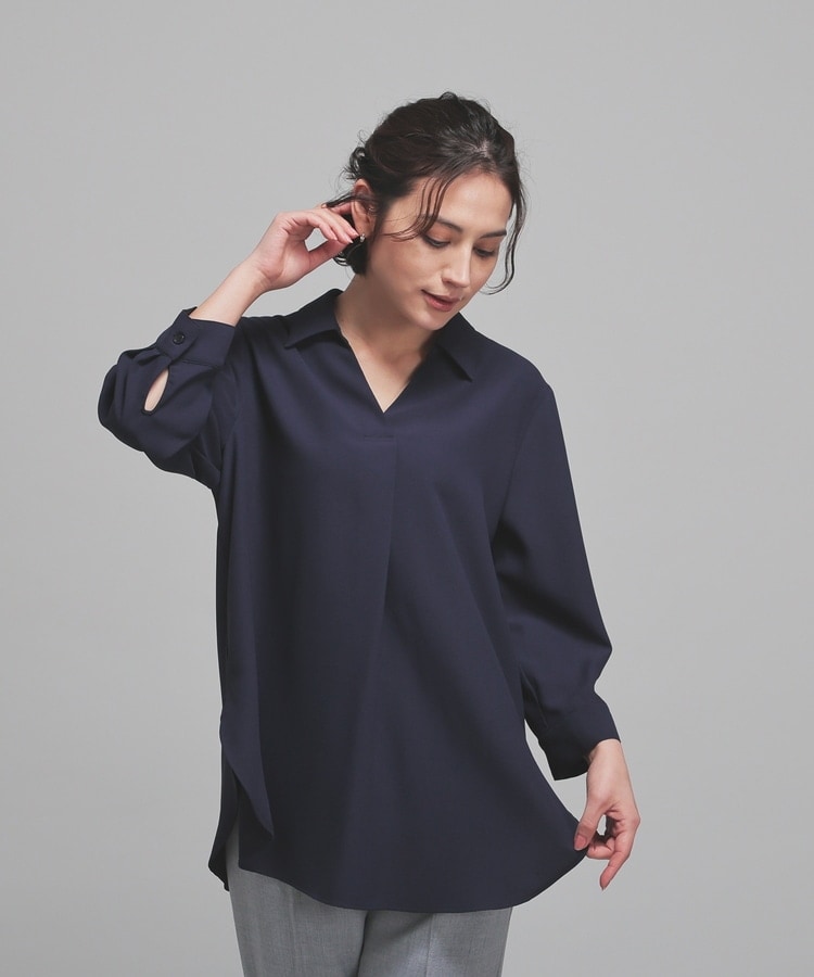 首元をすっきり見せるスキッパーで、シンプルながらさらっと着るだけでコーデ映えする、大人な抜け感のあるデザイン。