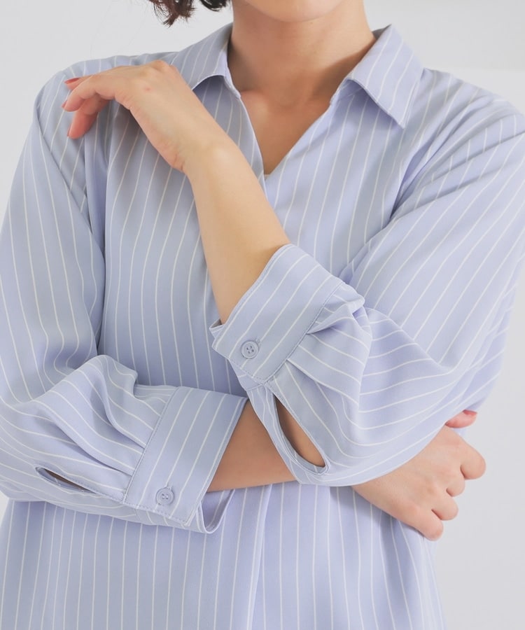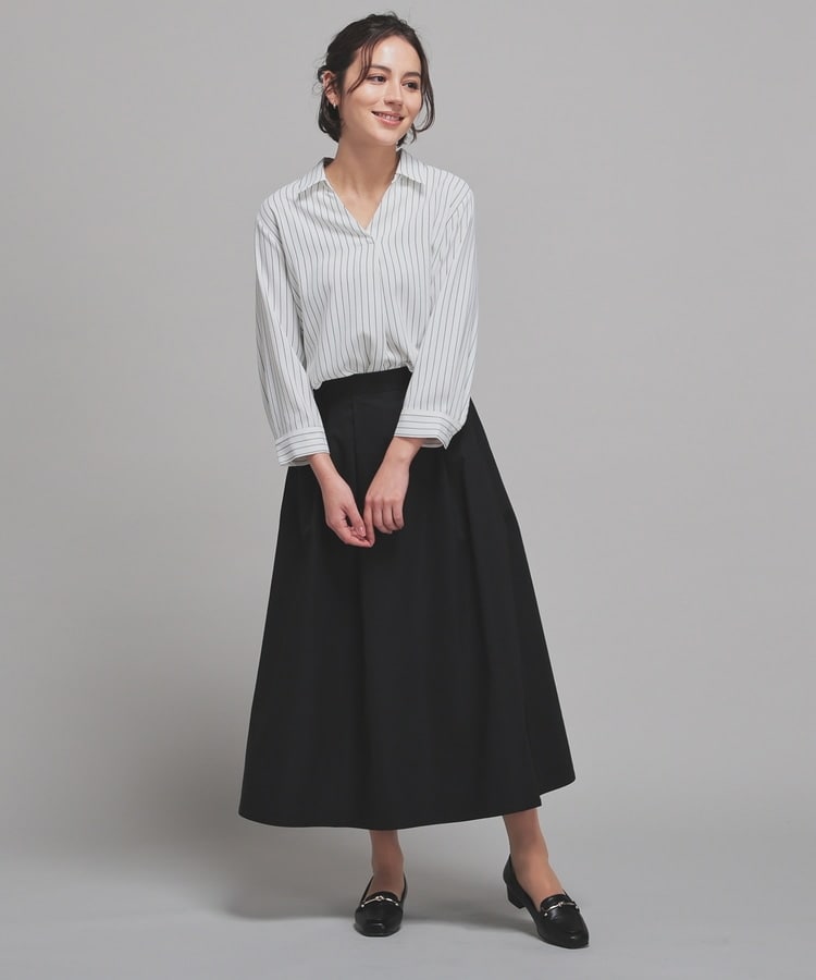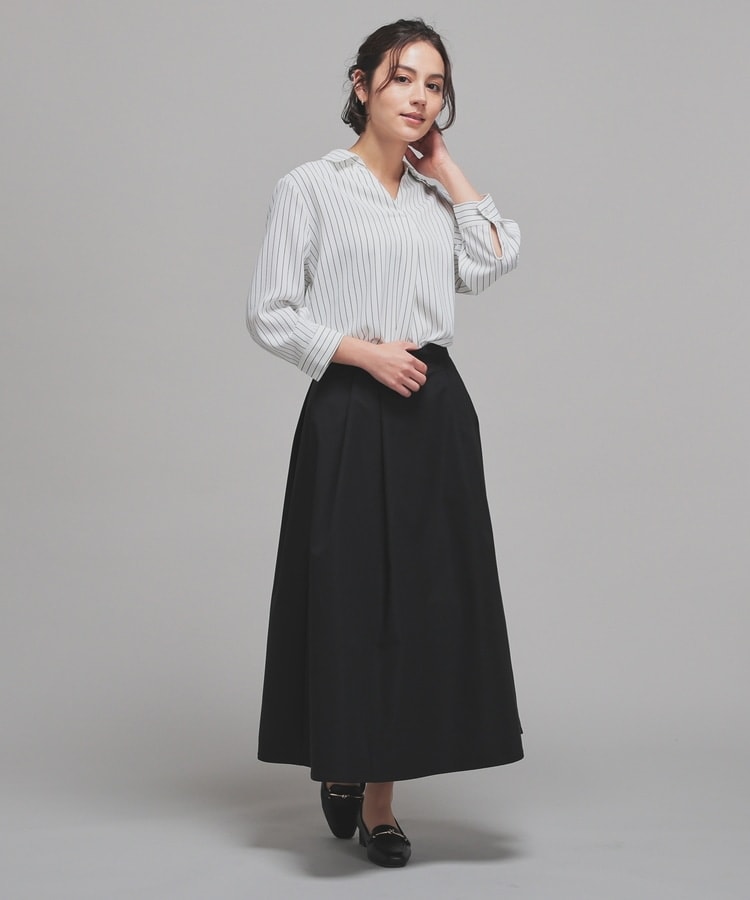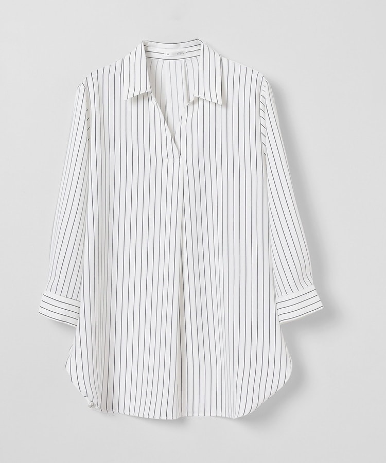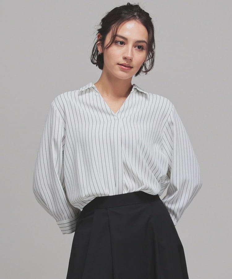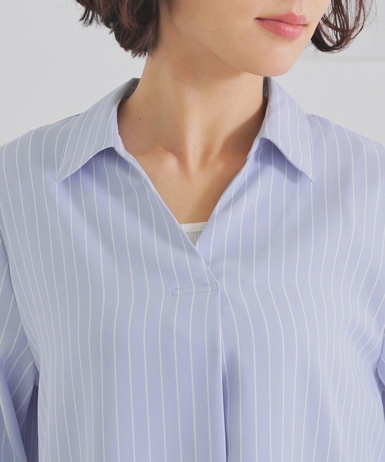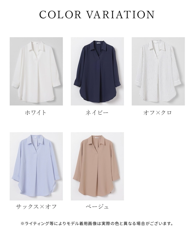 首元をすっきり見せるスキッパーで、シンプルながらさらっと着るだけでコーデ映えする、大人な抜け感のあるデザイン。
