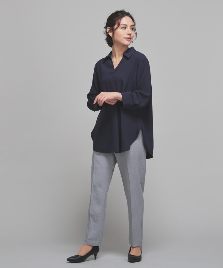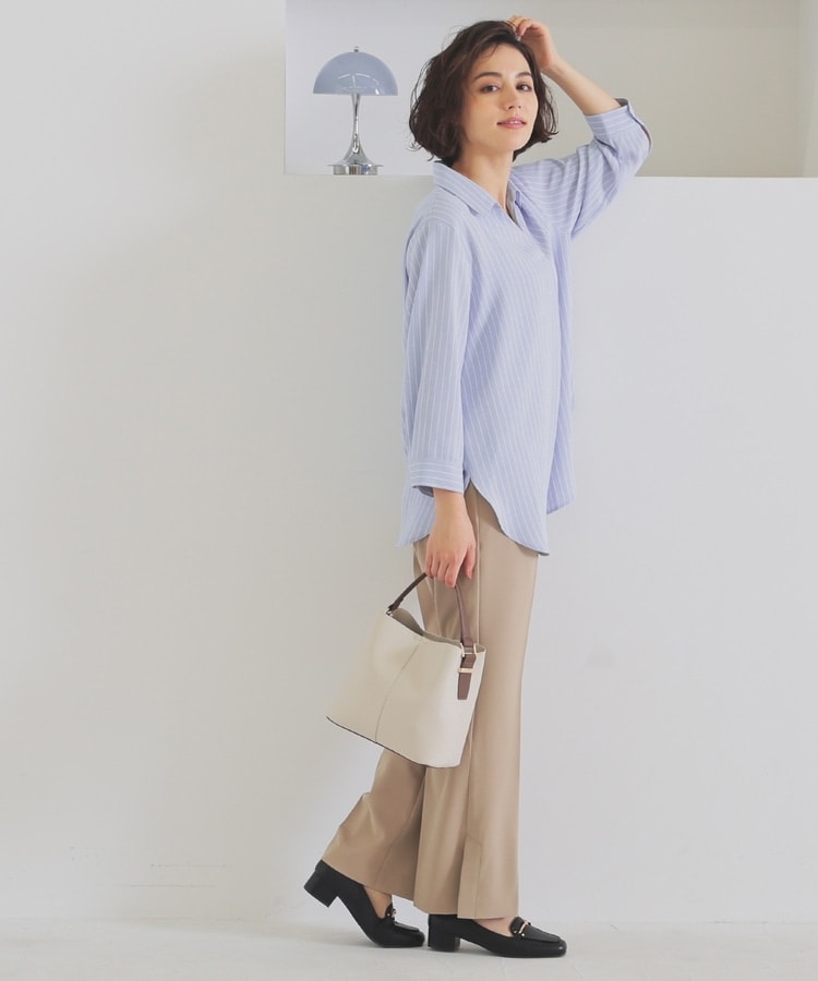 テーパードパンツやIラインスカートなど、すっきりとしたボトムスと好相性。