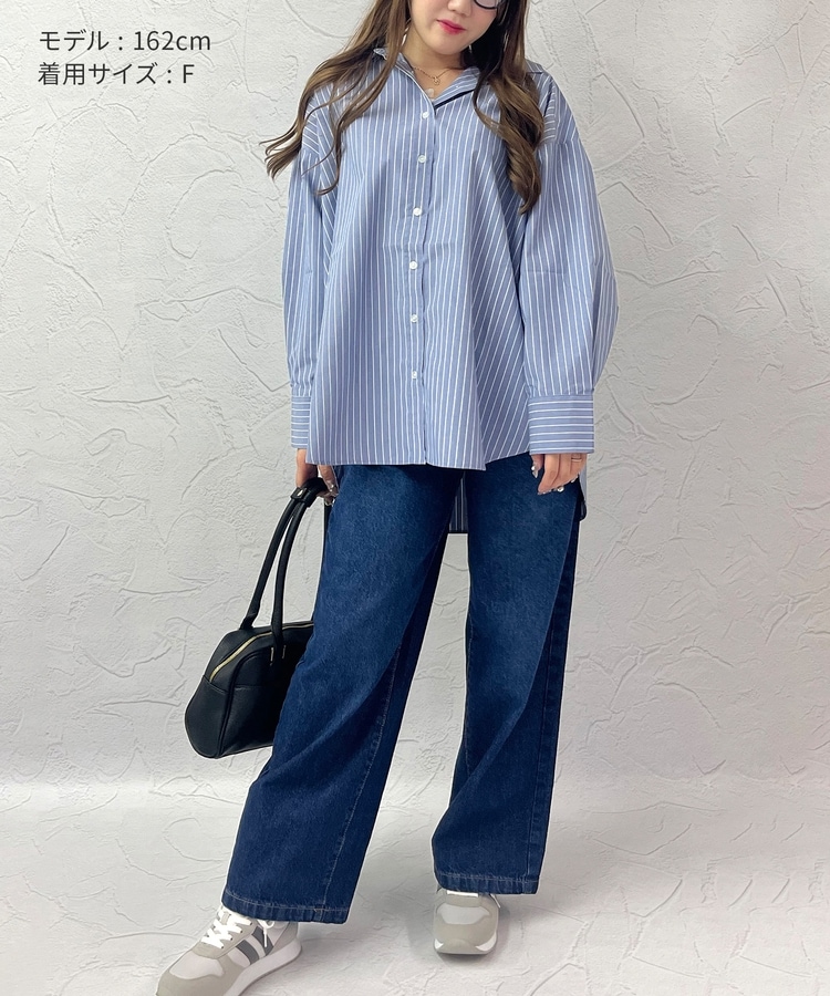 ブルーストライプ / モデル:166cm / 着用サイズF