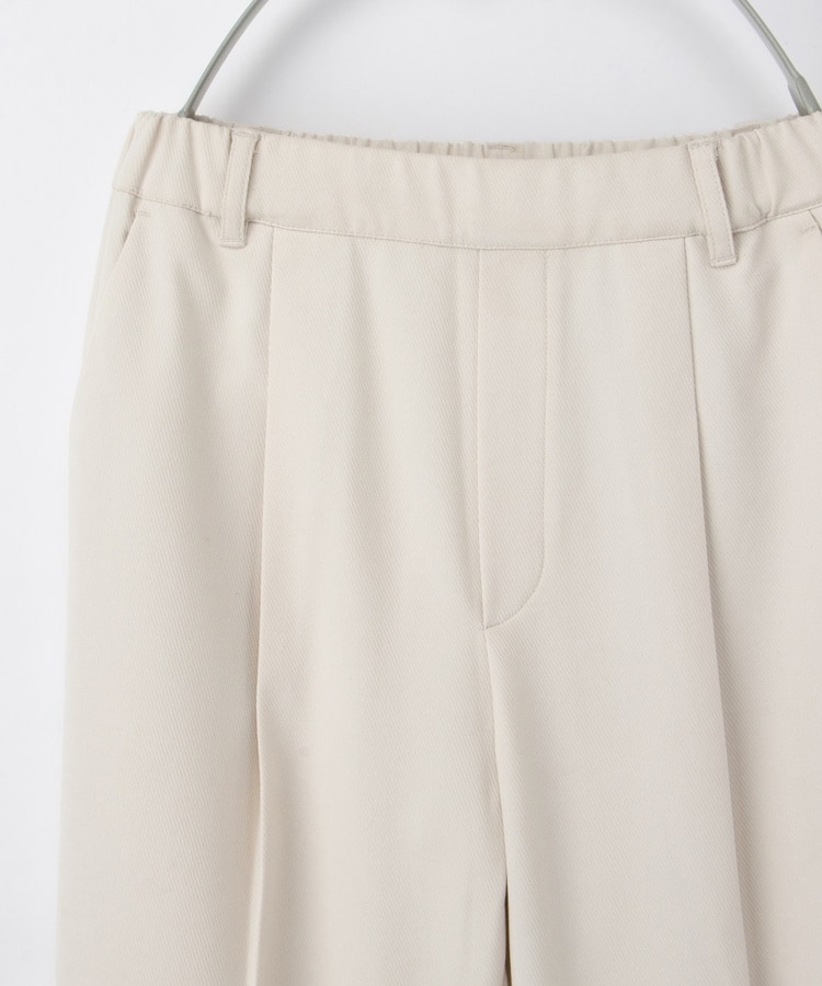 フロントのタックで作る、程よいゆる感が気になる腰回りをカバー。