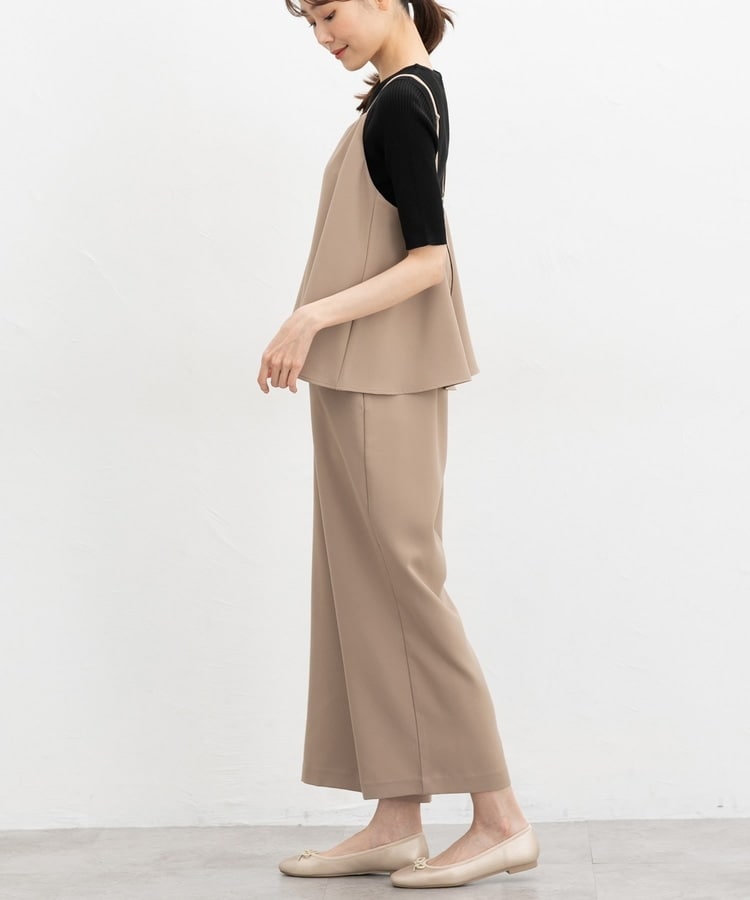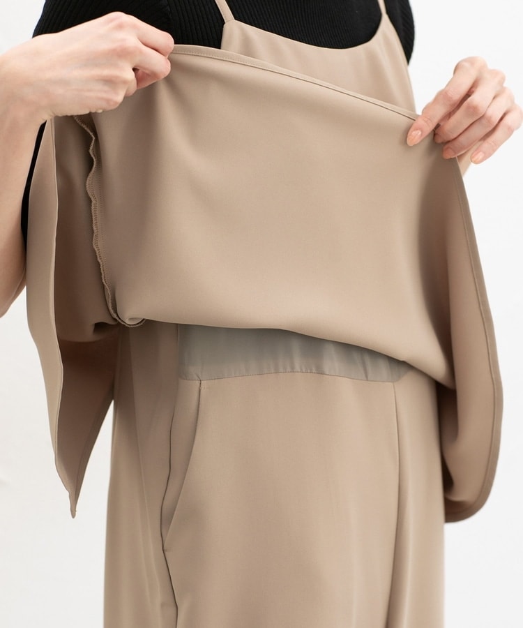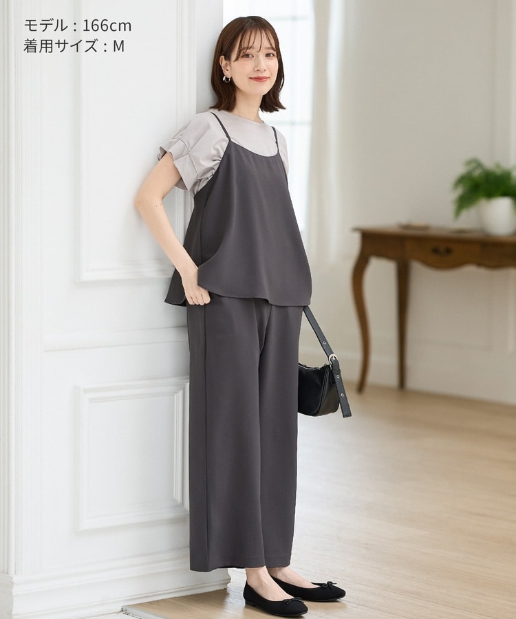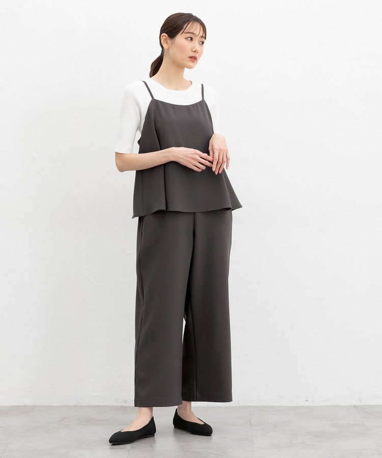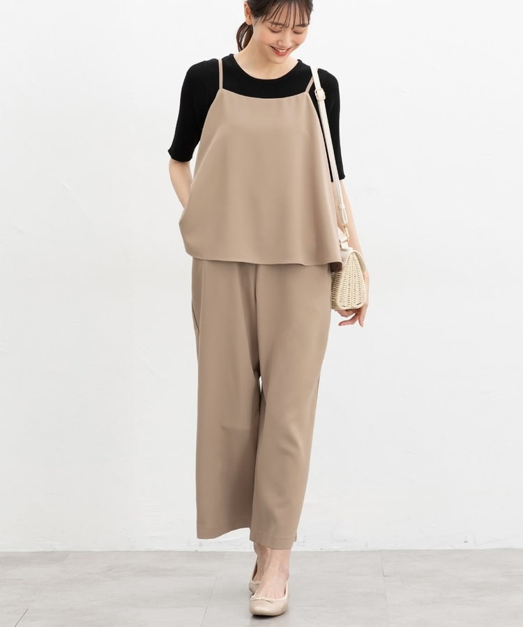 トップスとボトムスの合わせに悩まず、1枚でセットアップ風スタイルが決まるデザイン。
