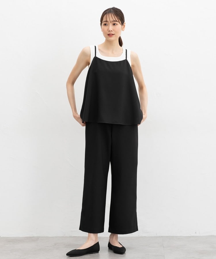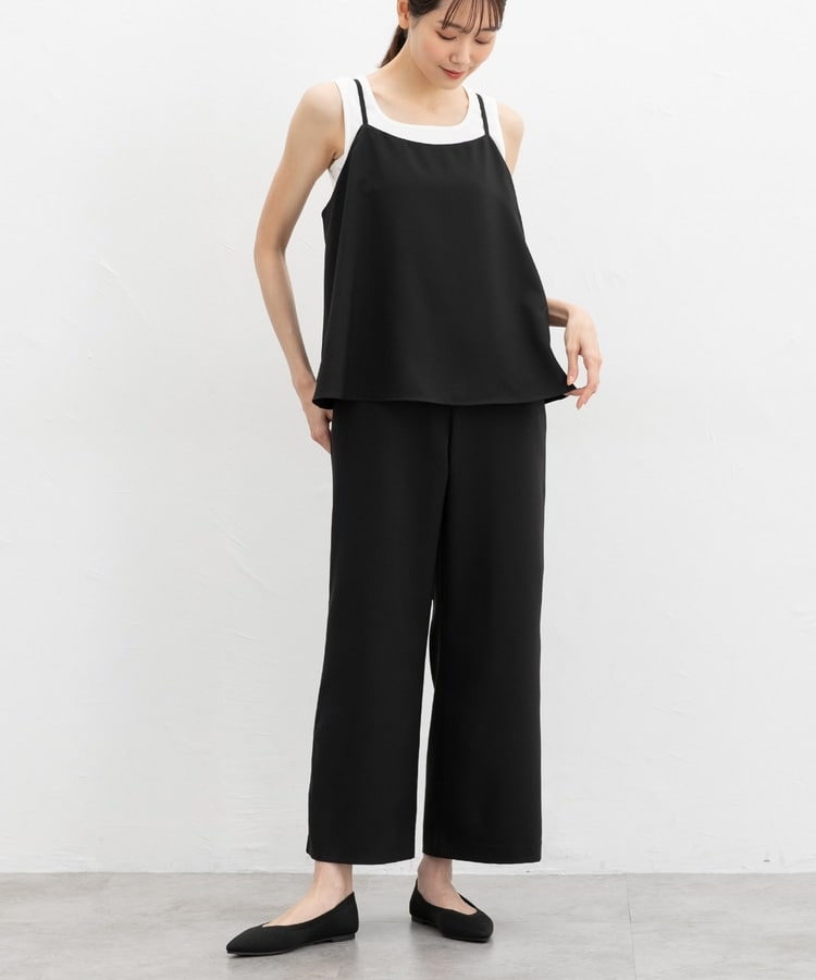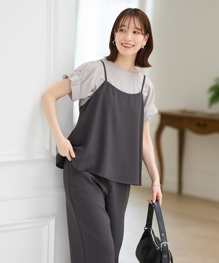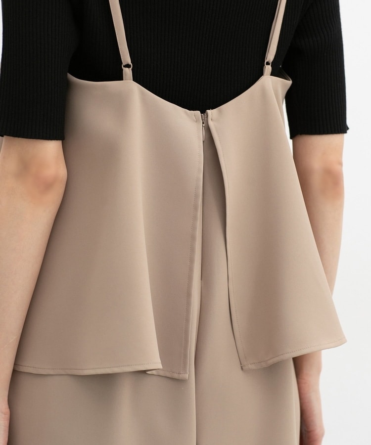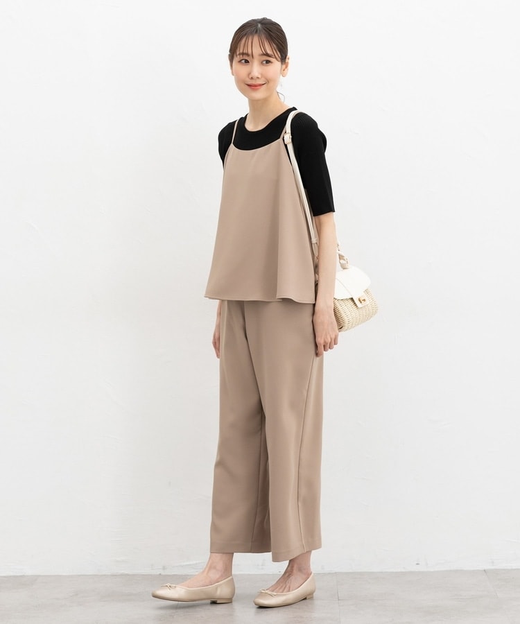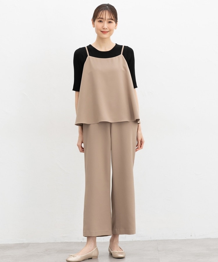トップスとボトムスの合わせに悩まず、1枚でセットアップ風スタイルが決まるデザイン。